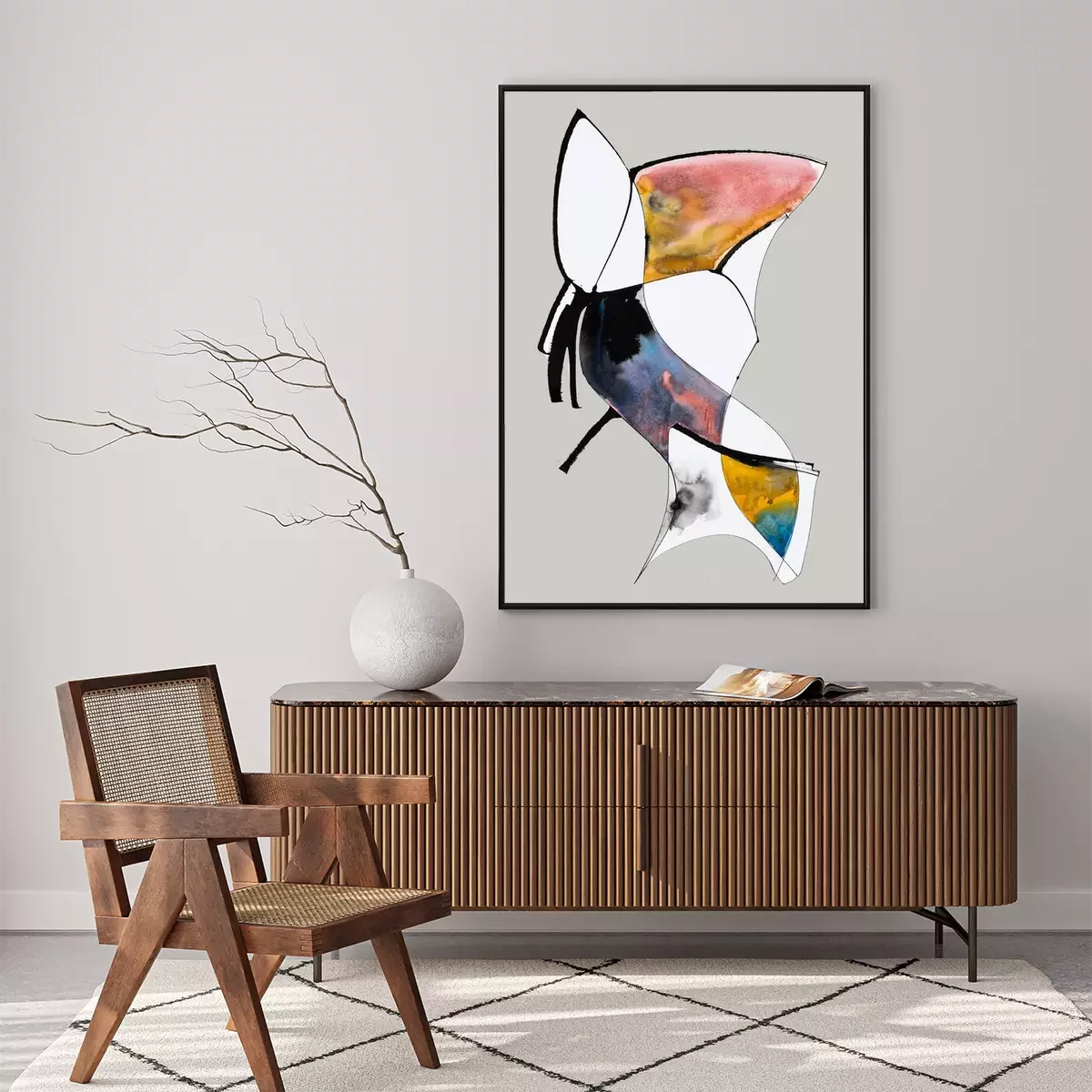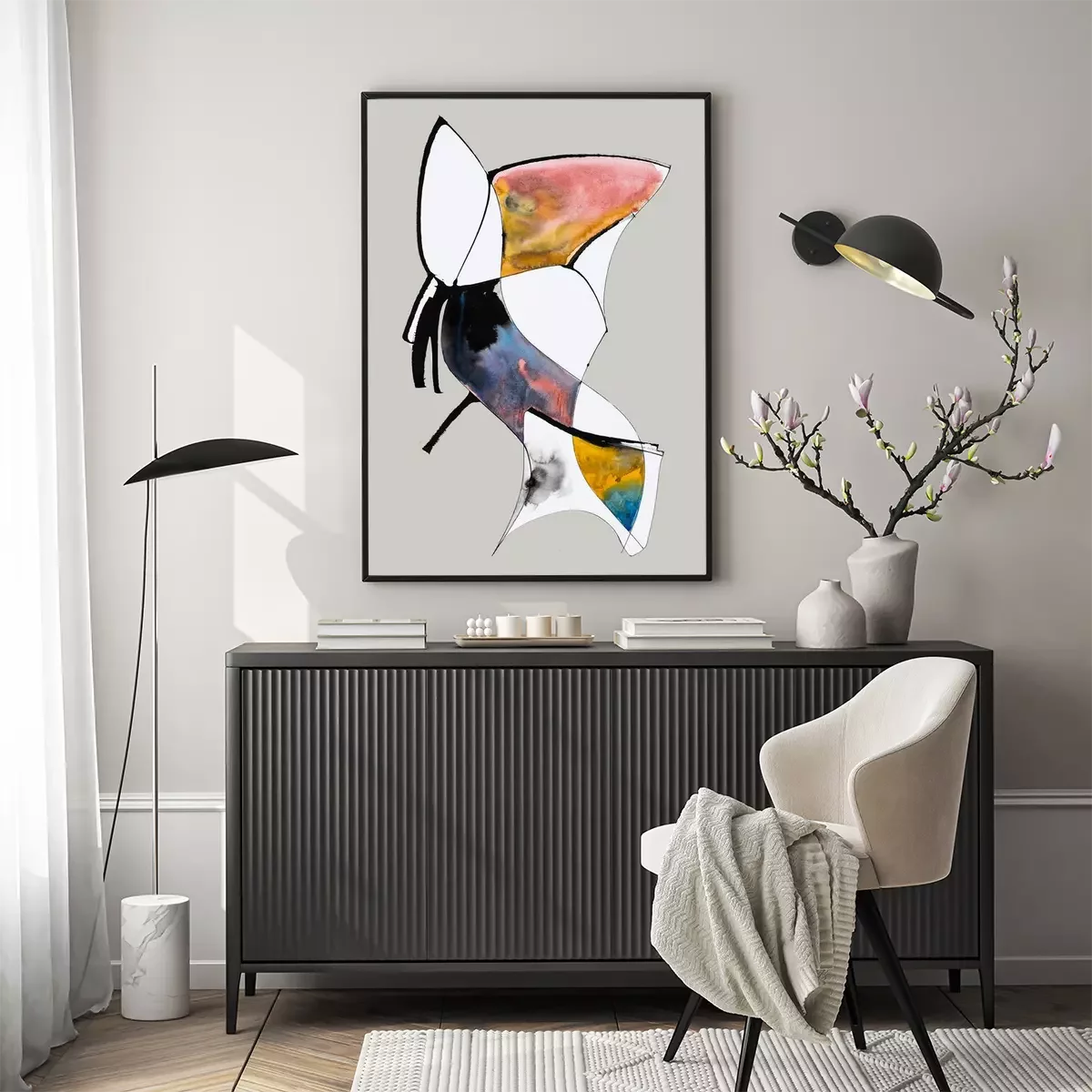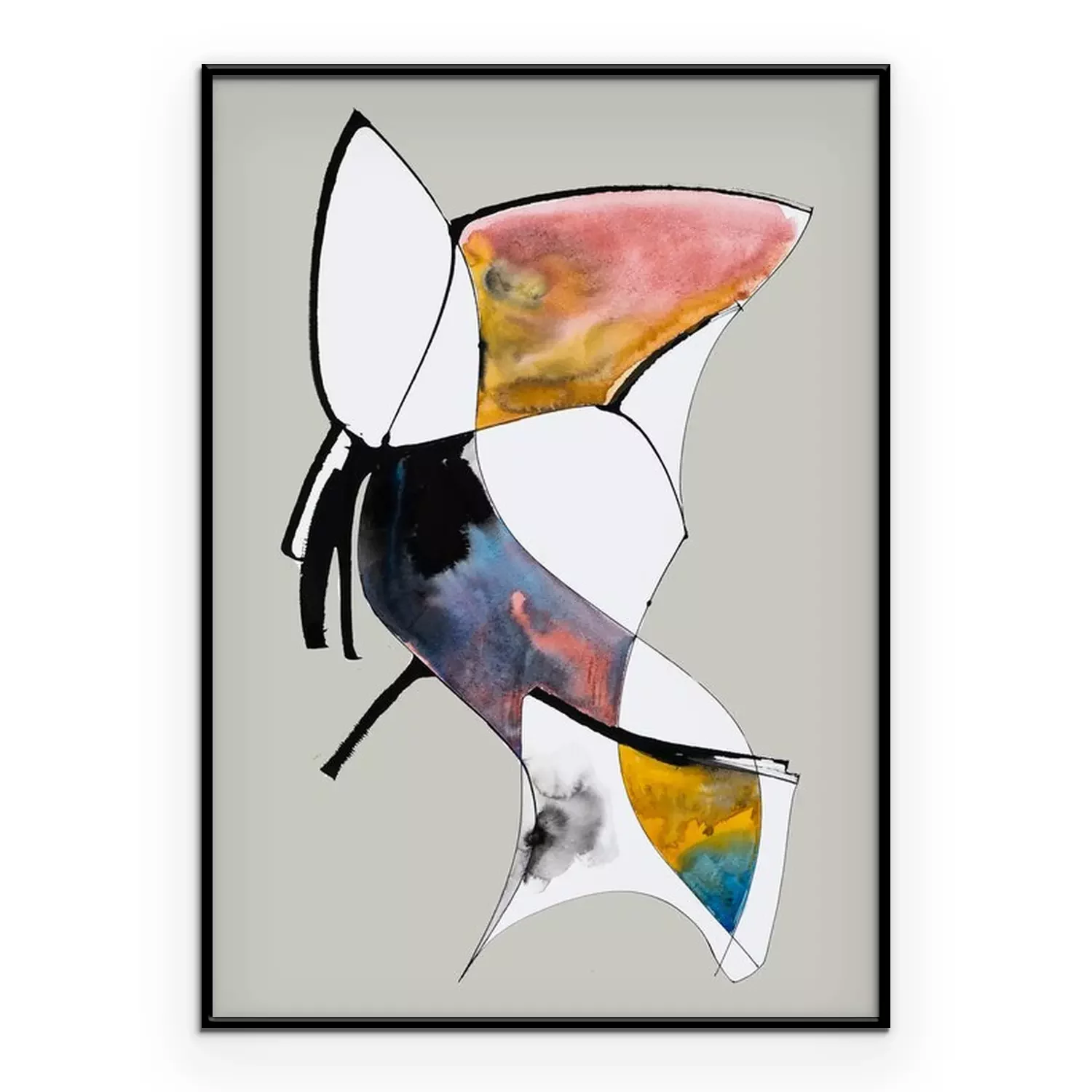 Poster An abstract calligraphic cola pen painting; indian ink and wet-in-wet watercolor wash.