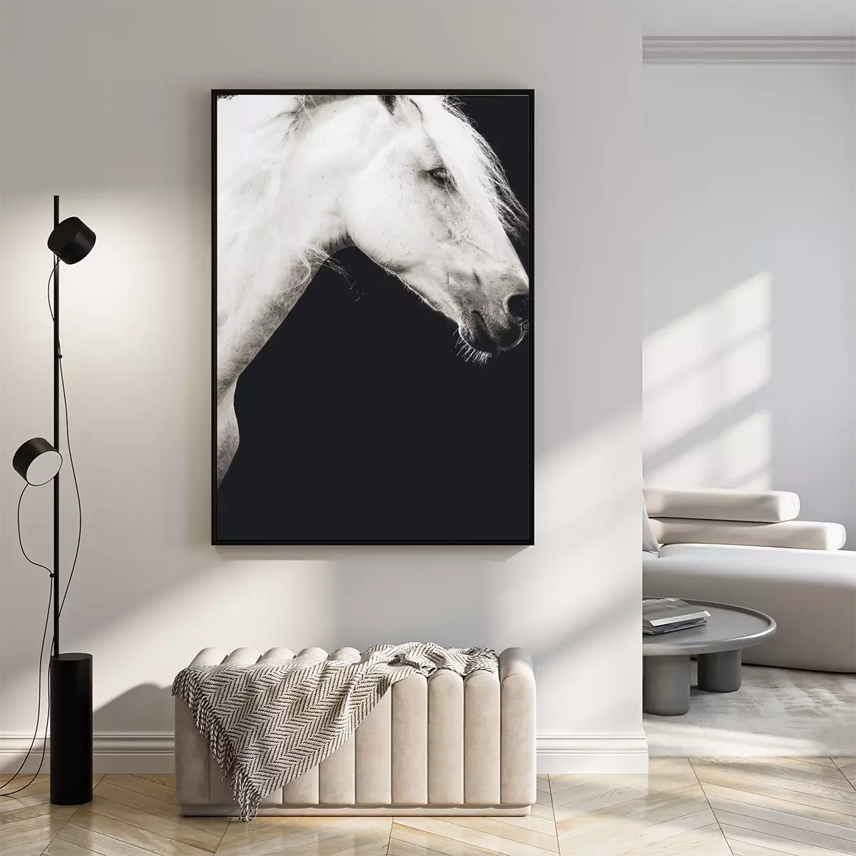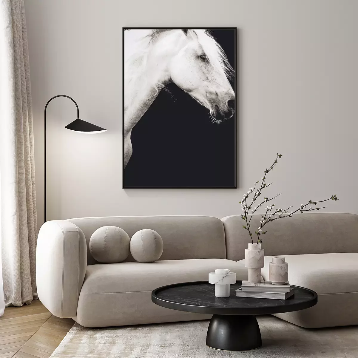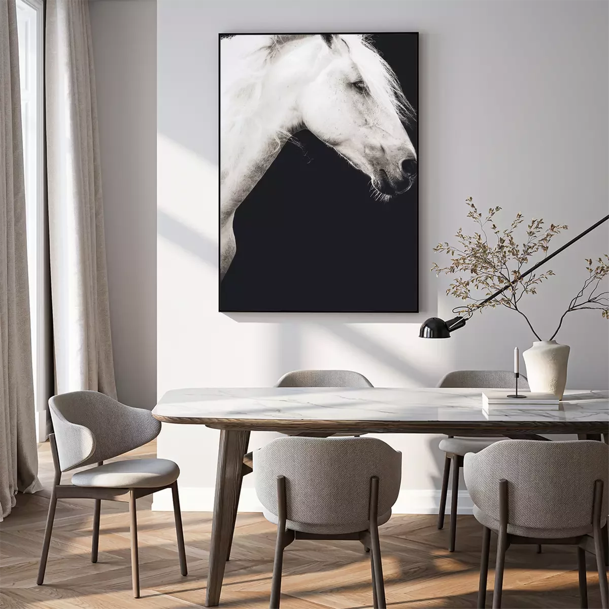 Poster: Andalusische hengst met zwarte achtergrond