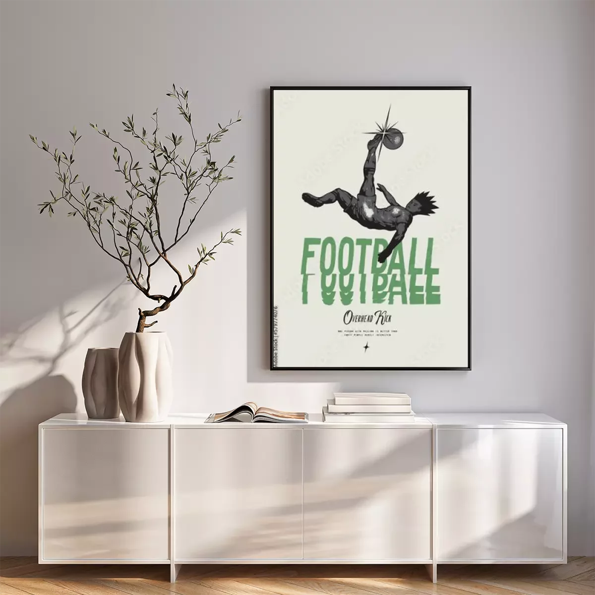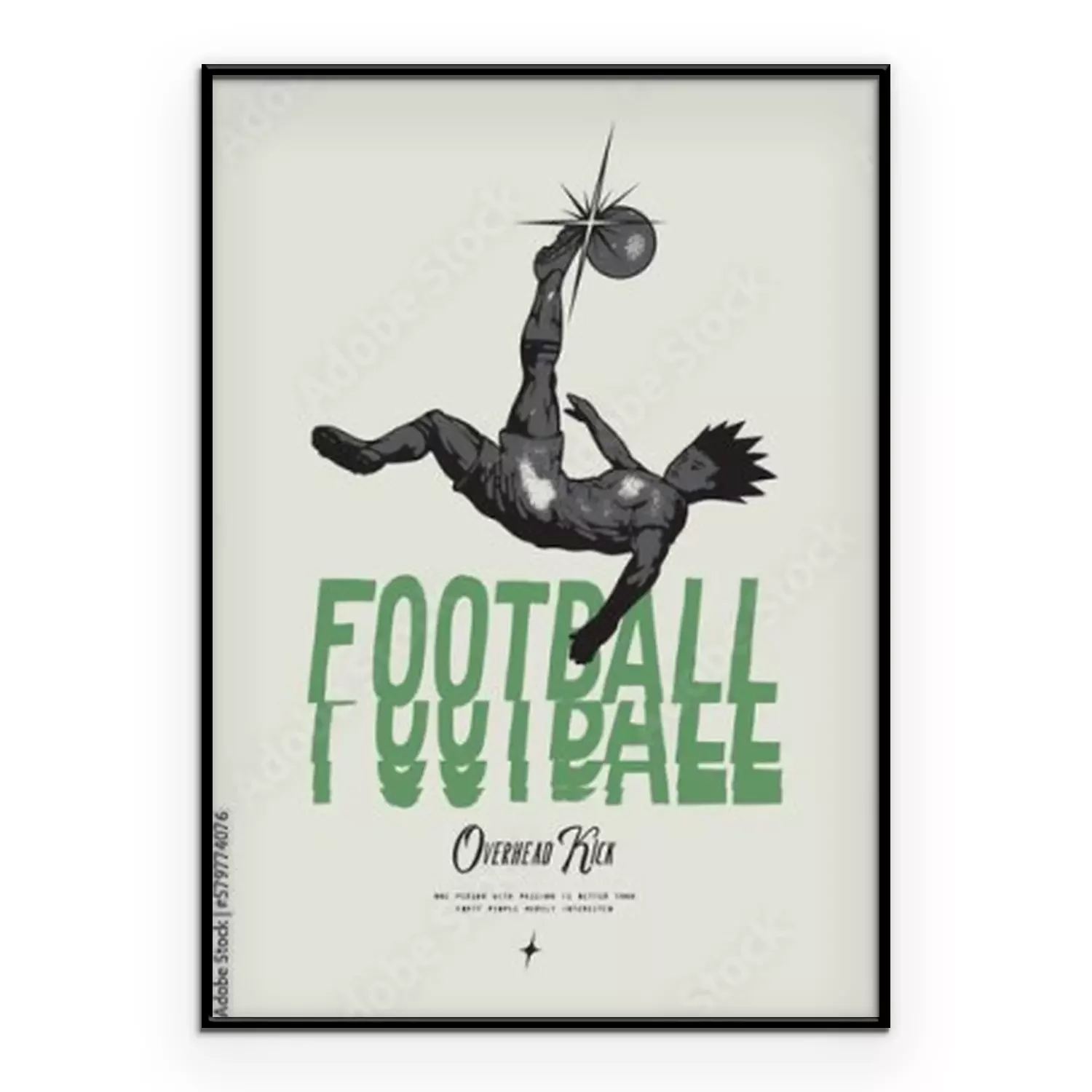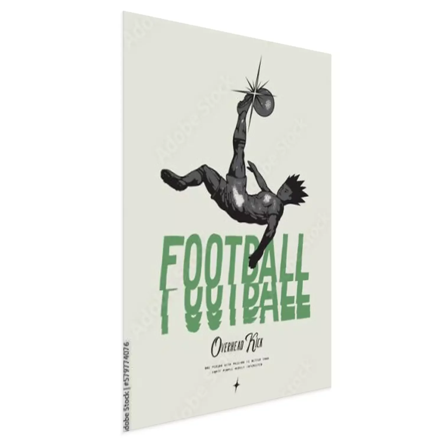 Poster Anime Football. Soccer player kicking ball overhead. Football vintage typography silkscreen t-shirt print vector illustration