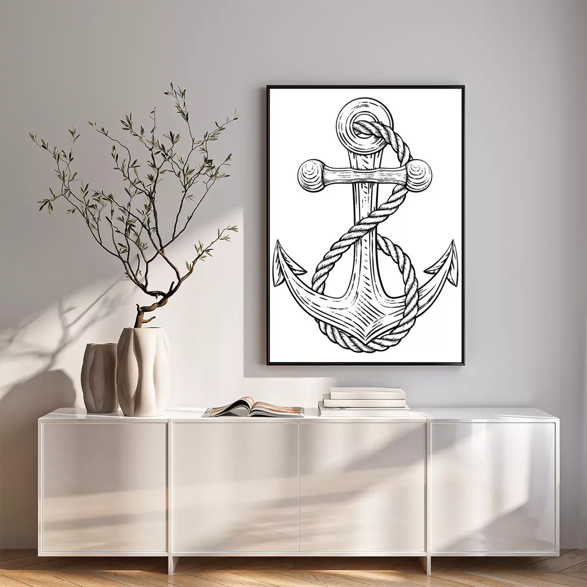 Poster: Anker met een touw nautisch thema