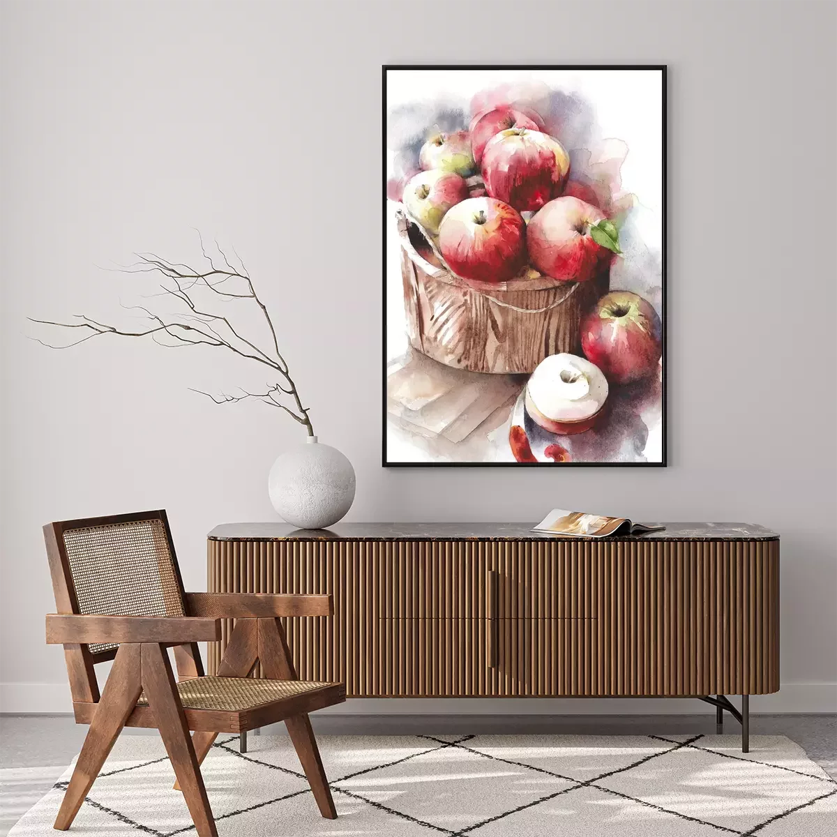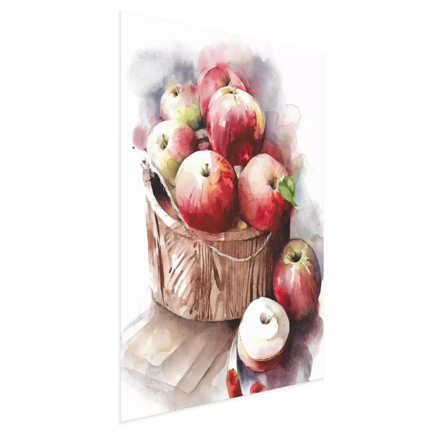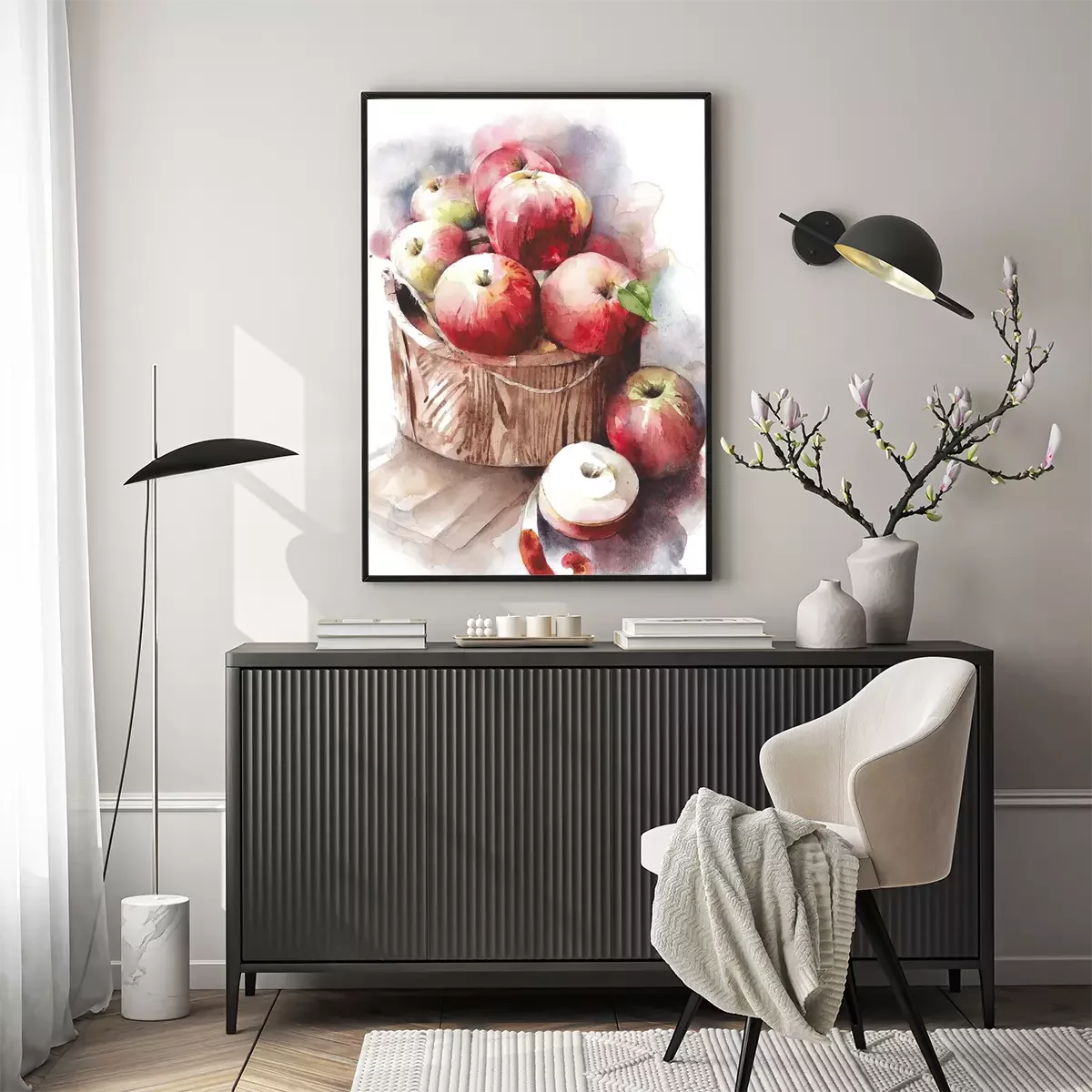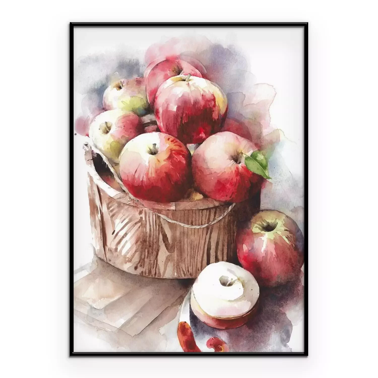 Poster: Appelen rode vruchten in een mand waterverf het schilderen illustratie die op witte achtergrond wordt geïsoleerd