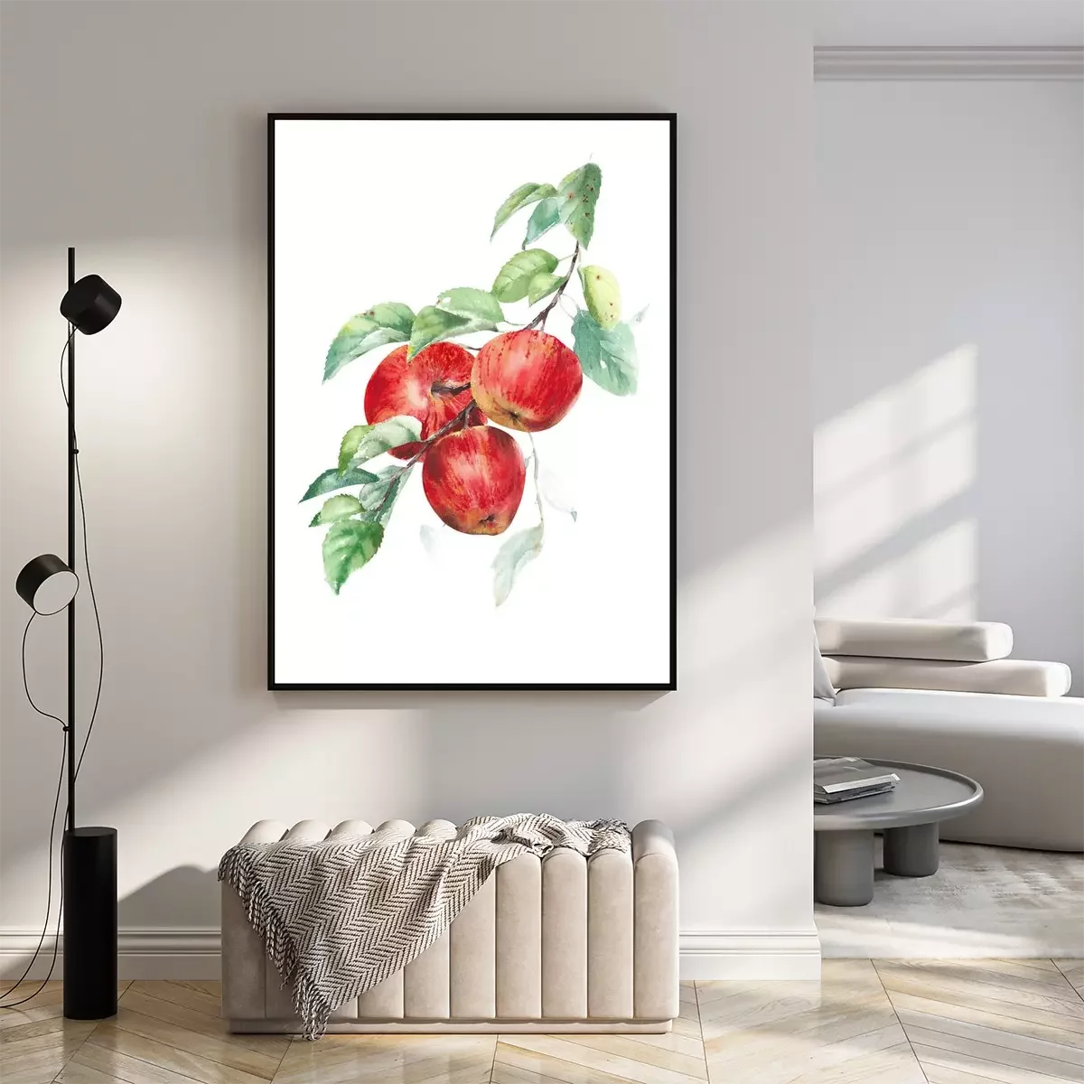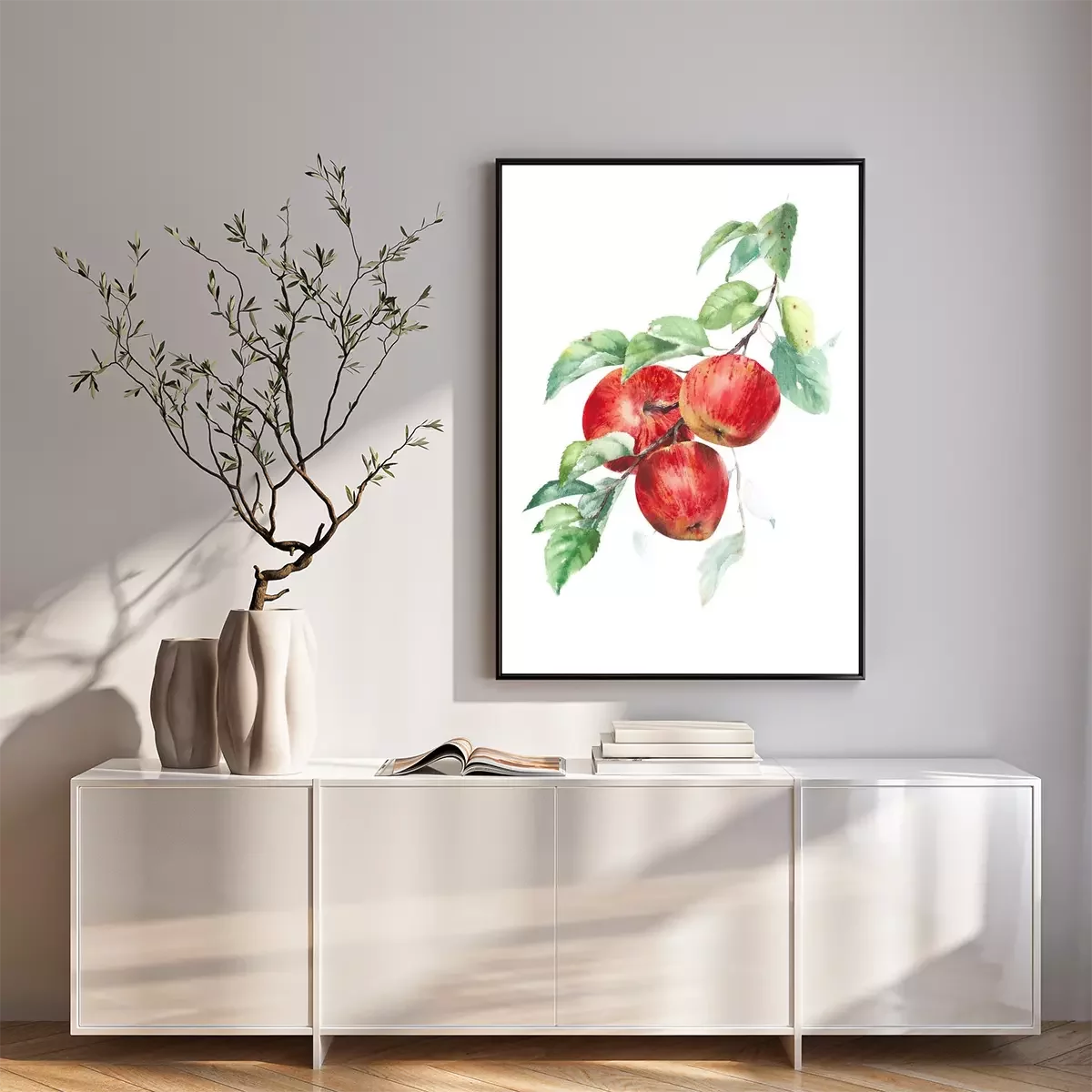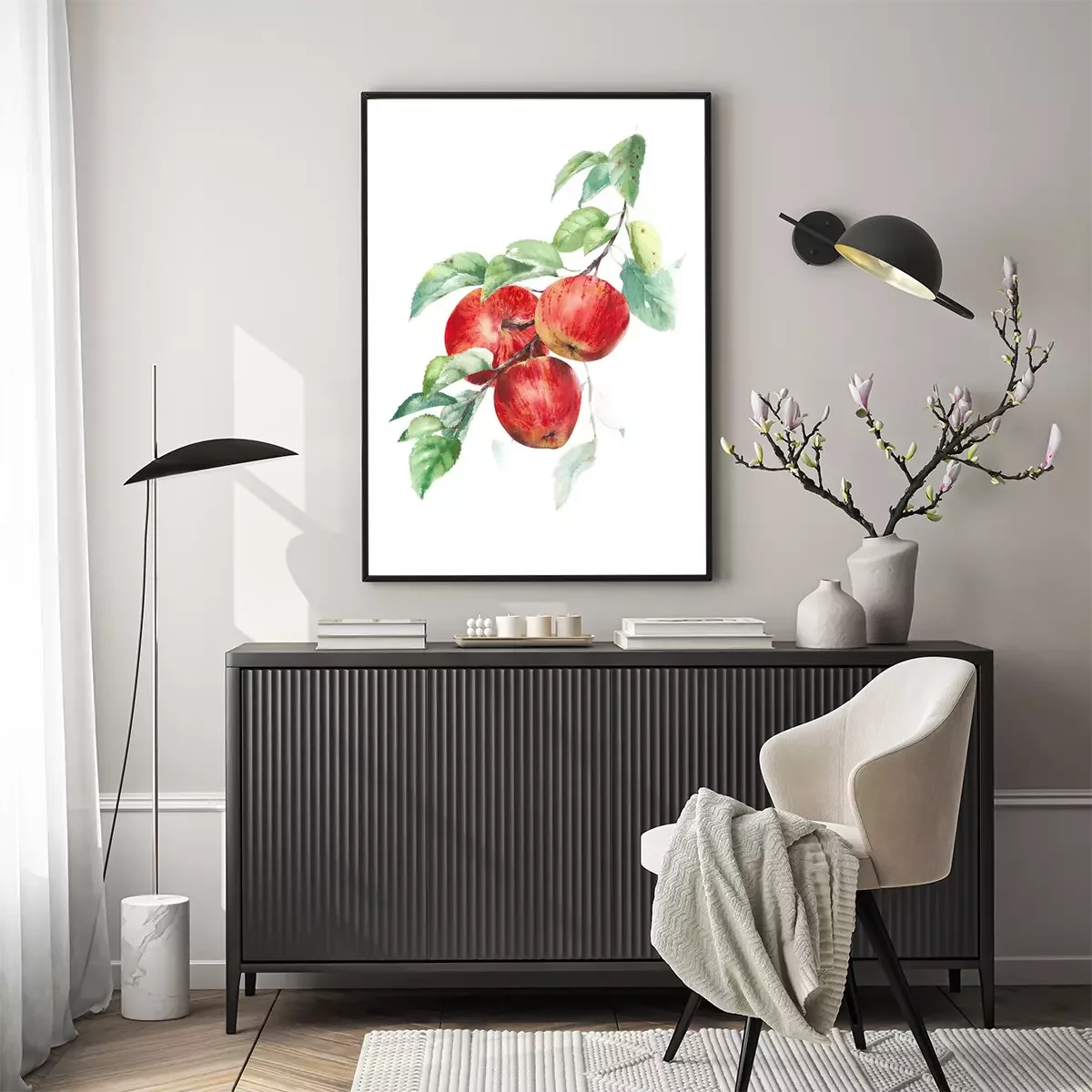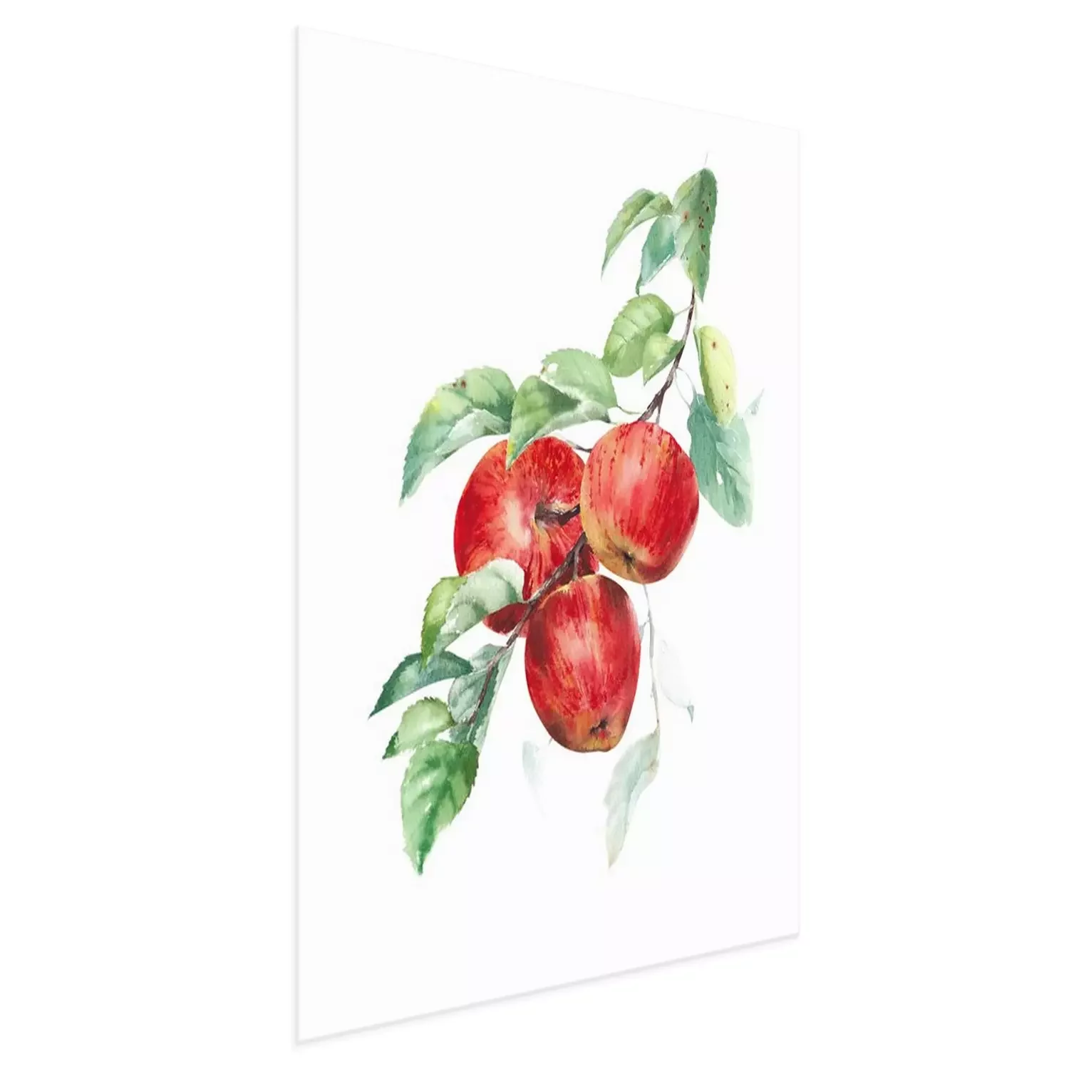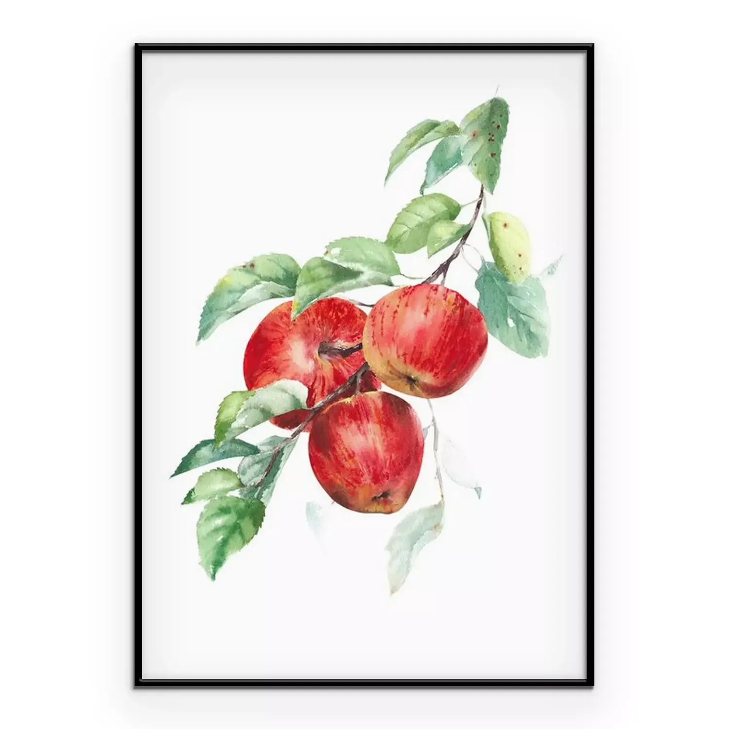 Poster: Apples red fruits tree on the branch vegetariab healthy food watercolor painting illustration isolated on white background