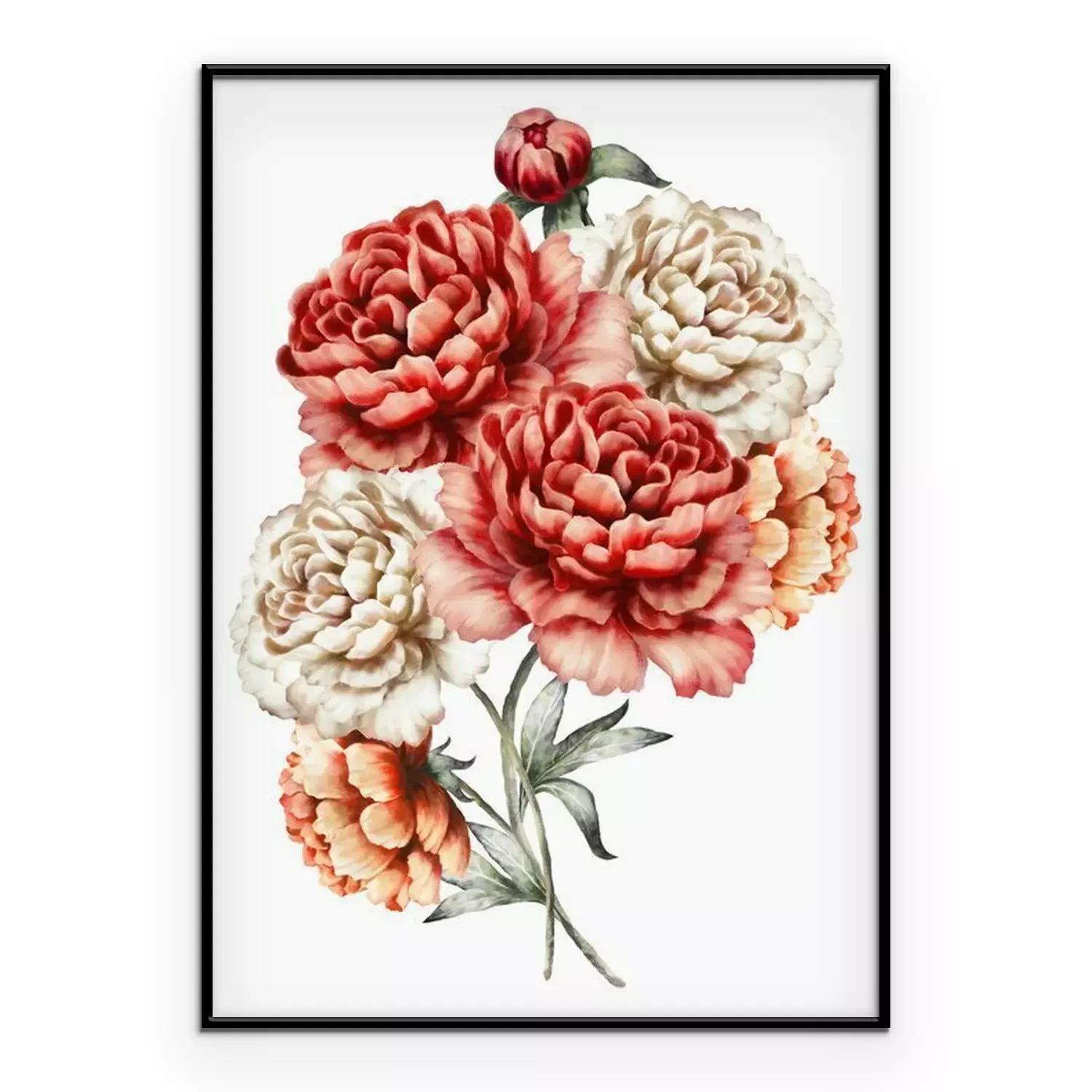 Poster: aquarel bloemen. bloemen illustratie in pastelkleuren. boeket bloemen op een witte achtergrond. Romantische samenstelling voor huwelijk of wenskaart.