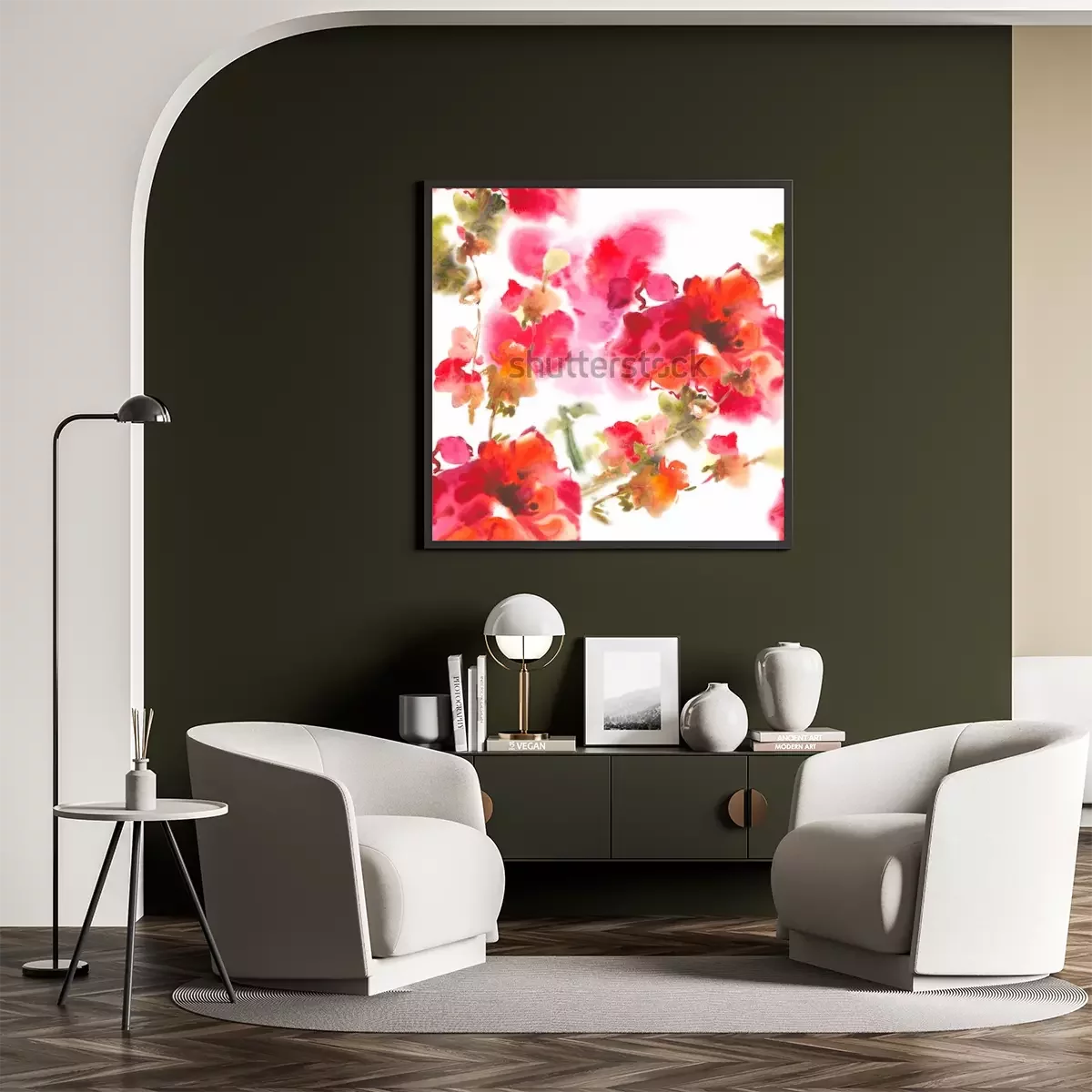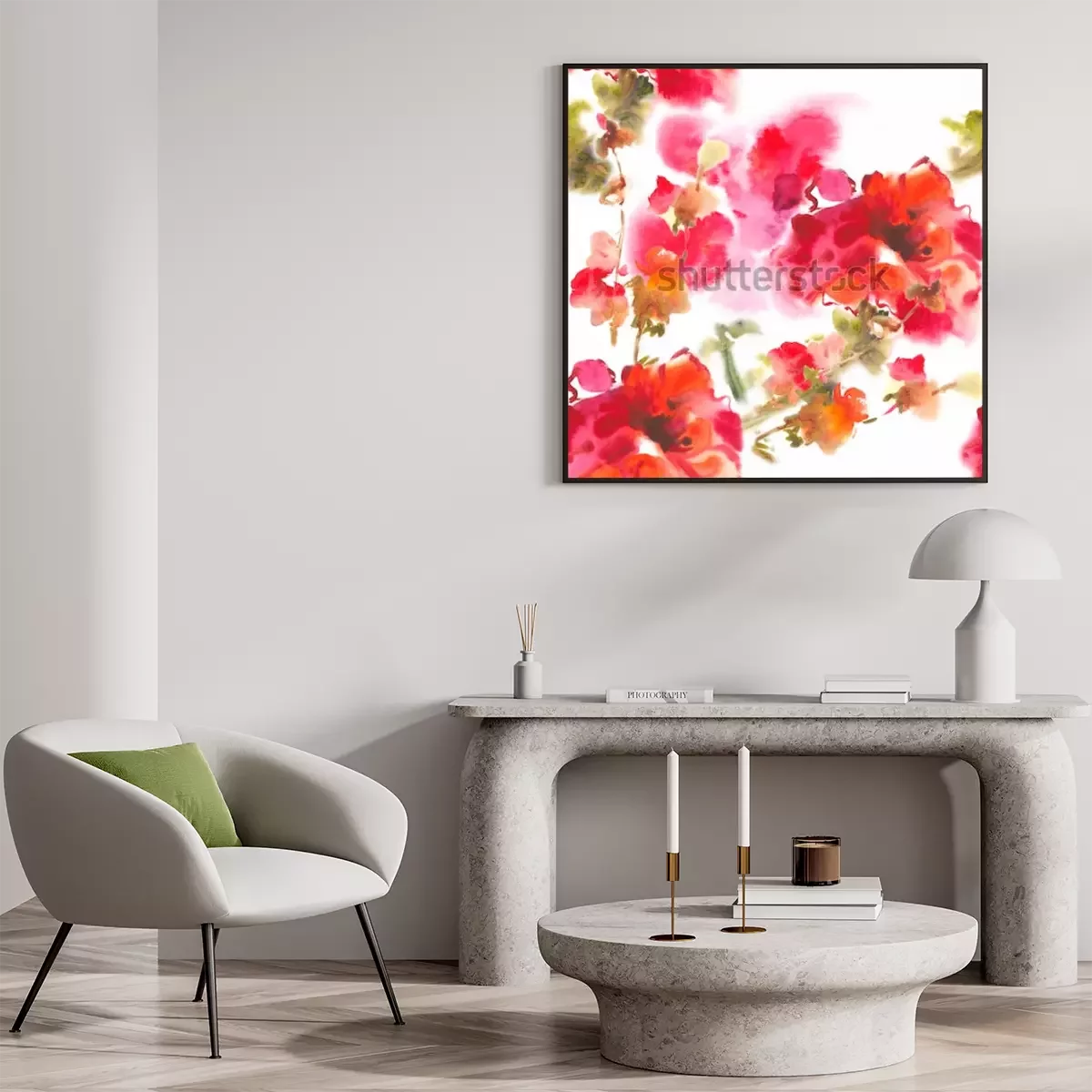 Poster: Aquarel bloemen in rode en roze kleuren