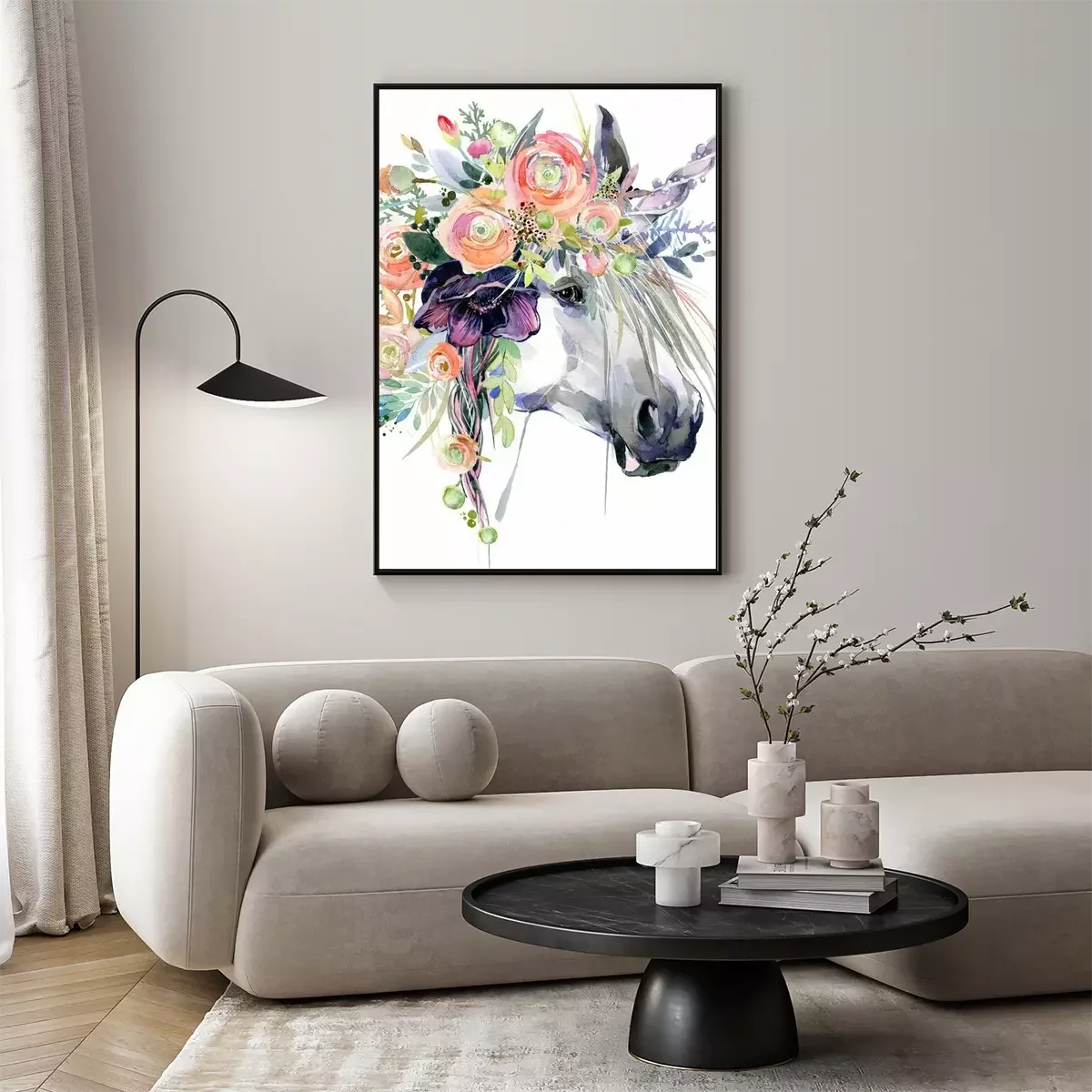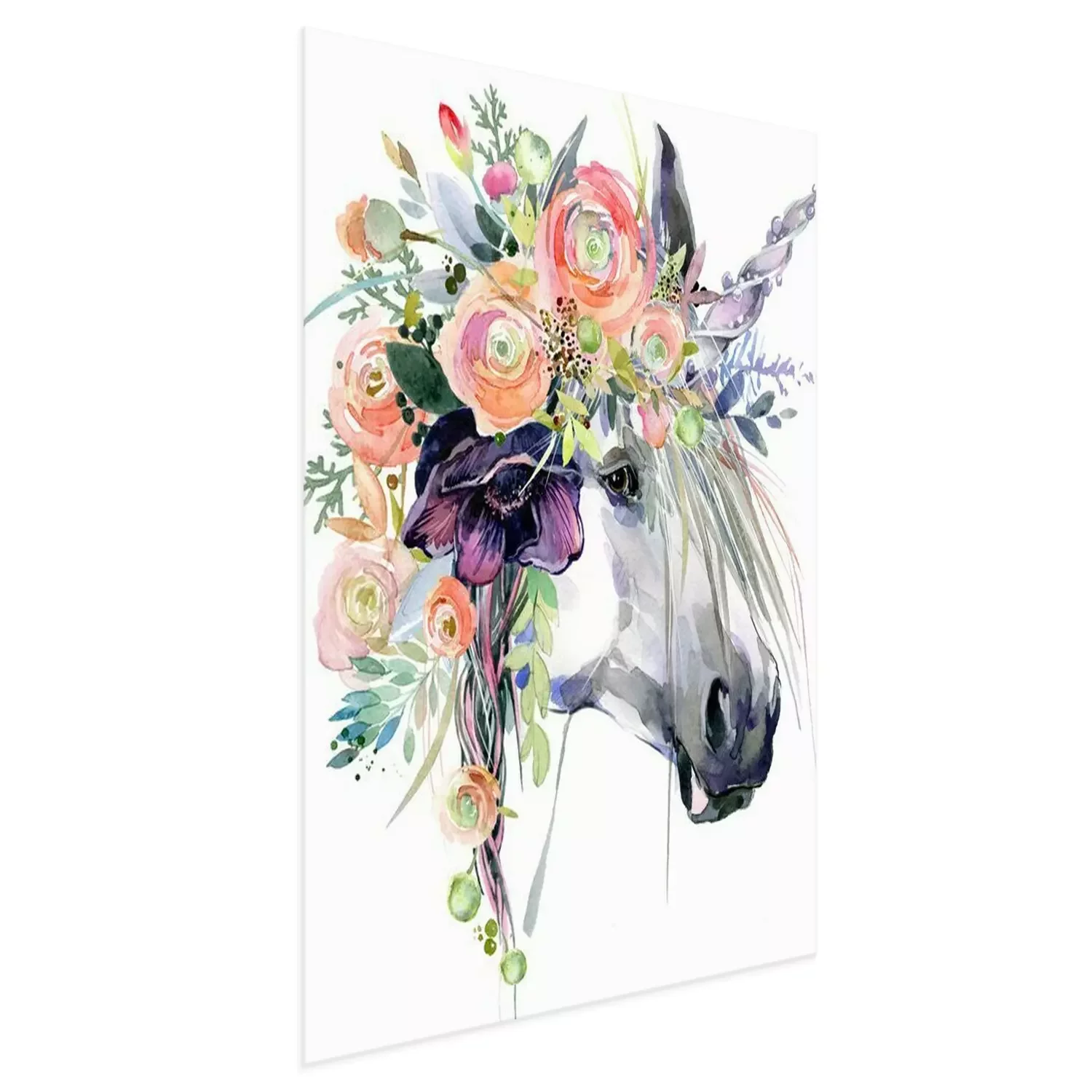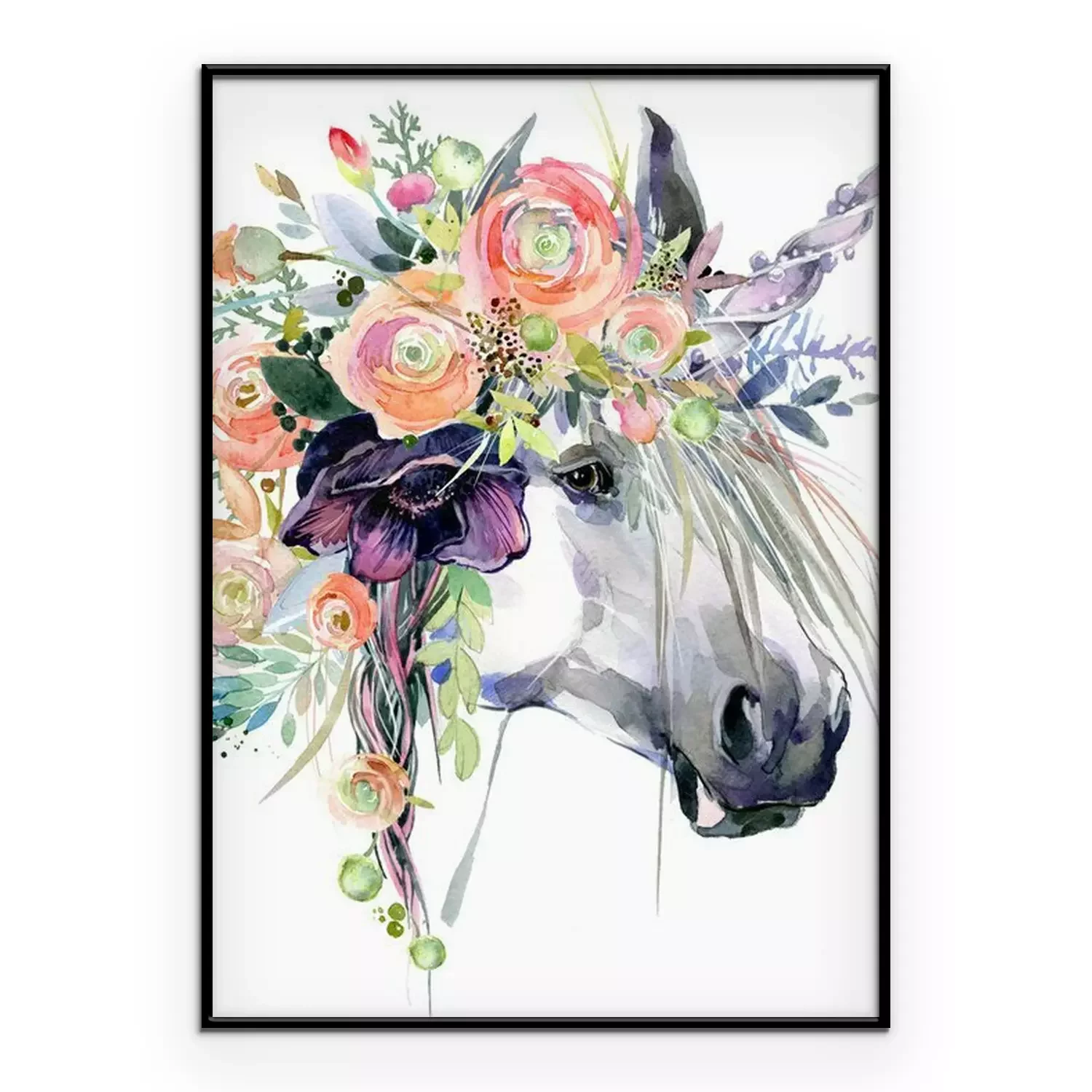 Poster: Aquarel eenhoorn met bloemen in de manen