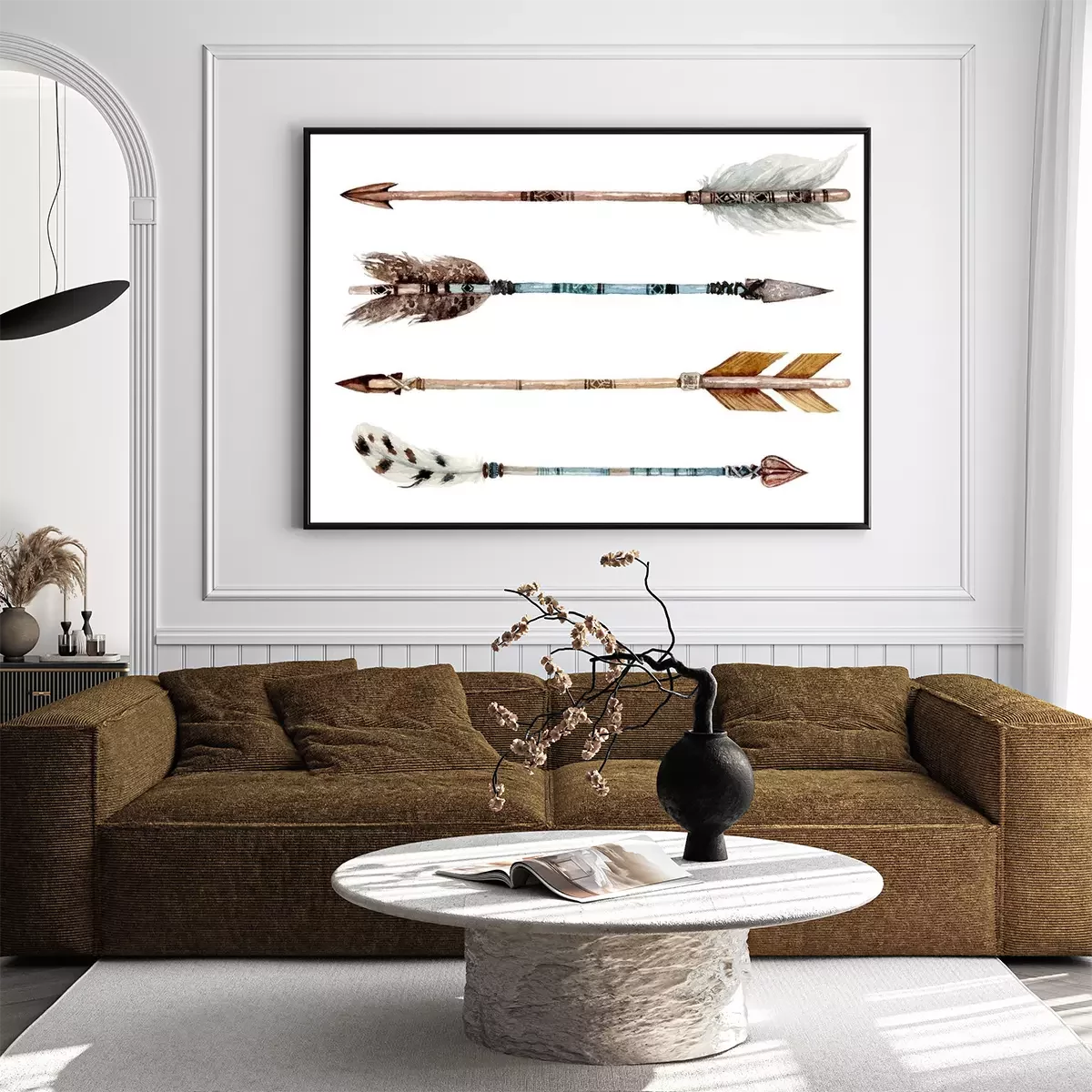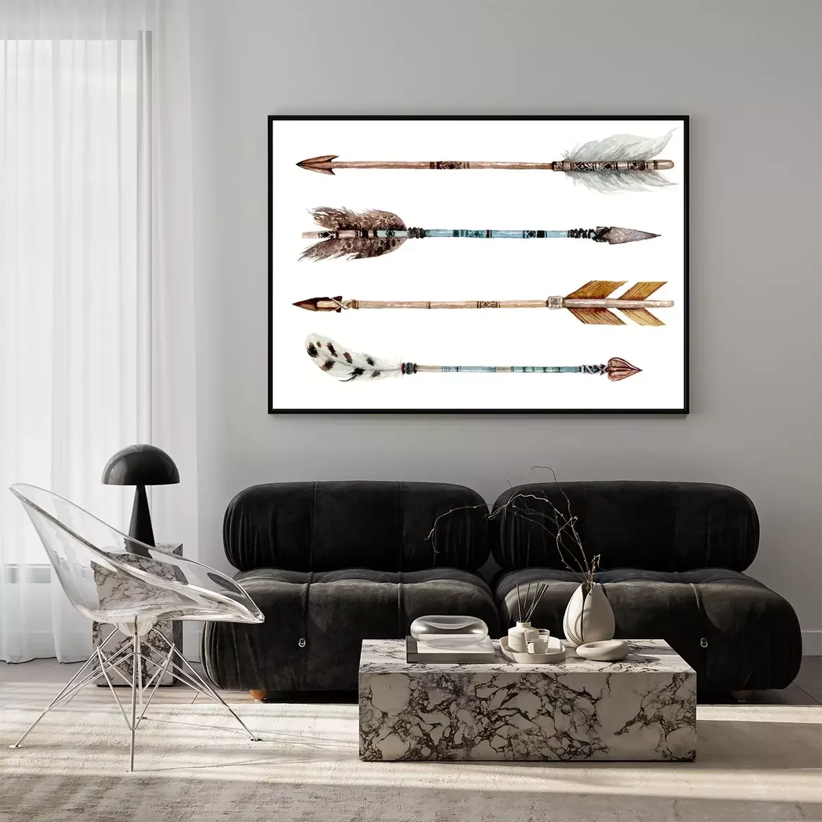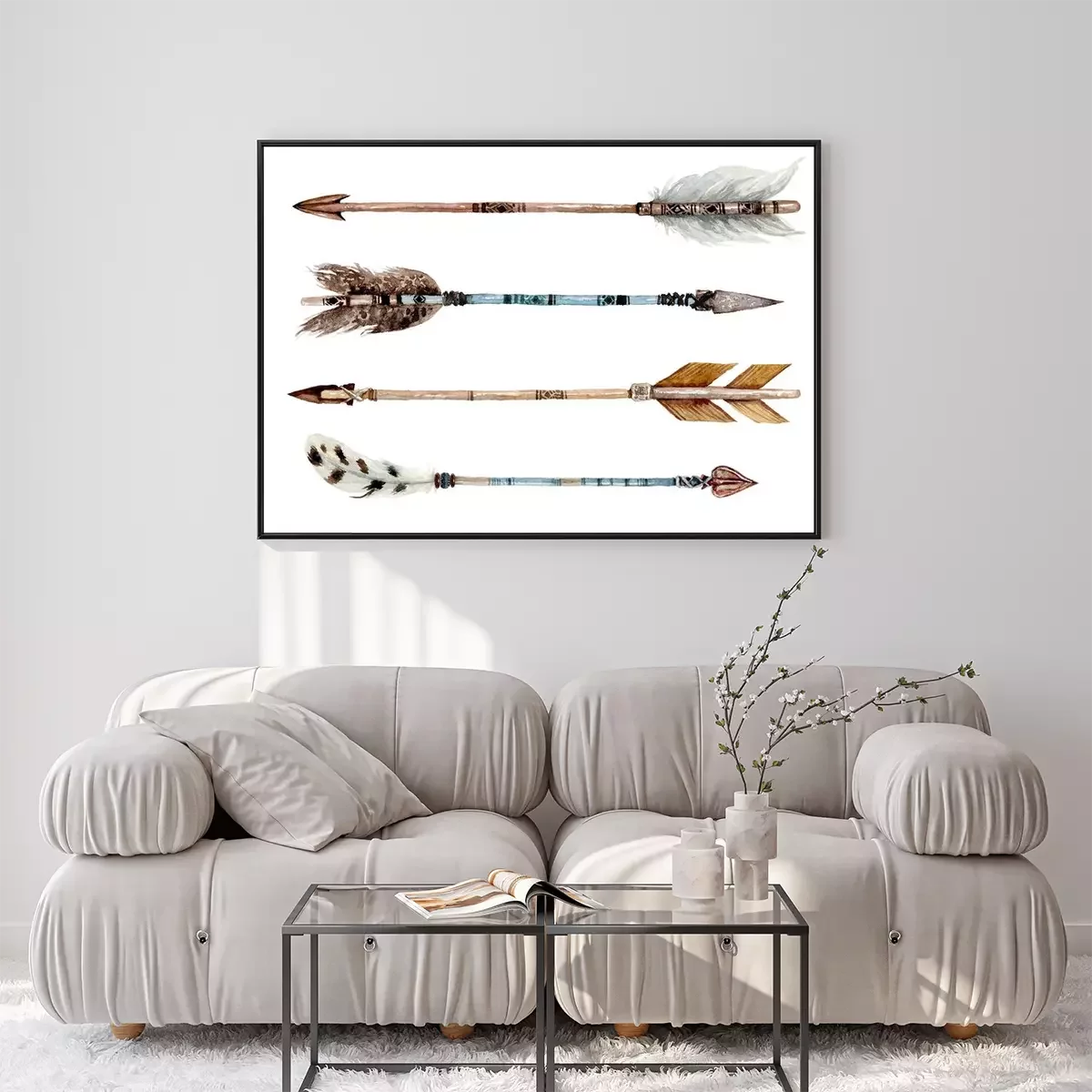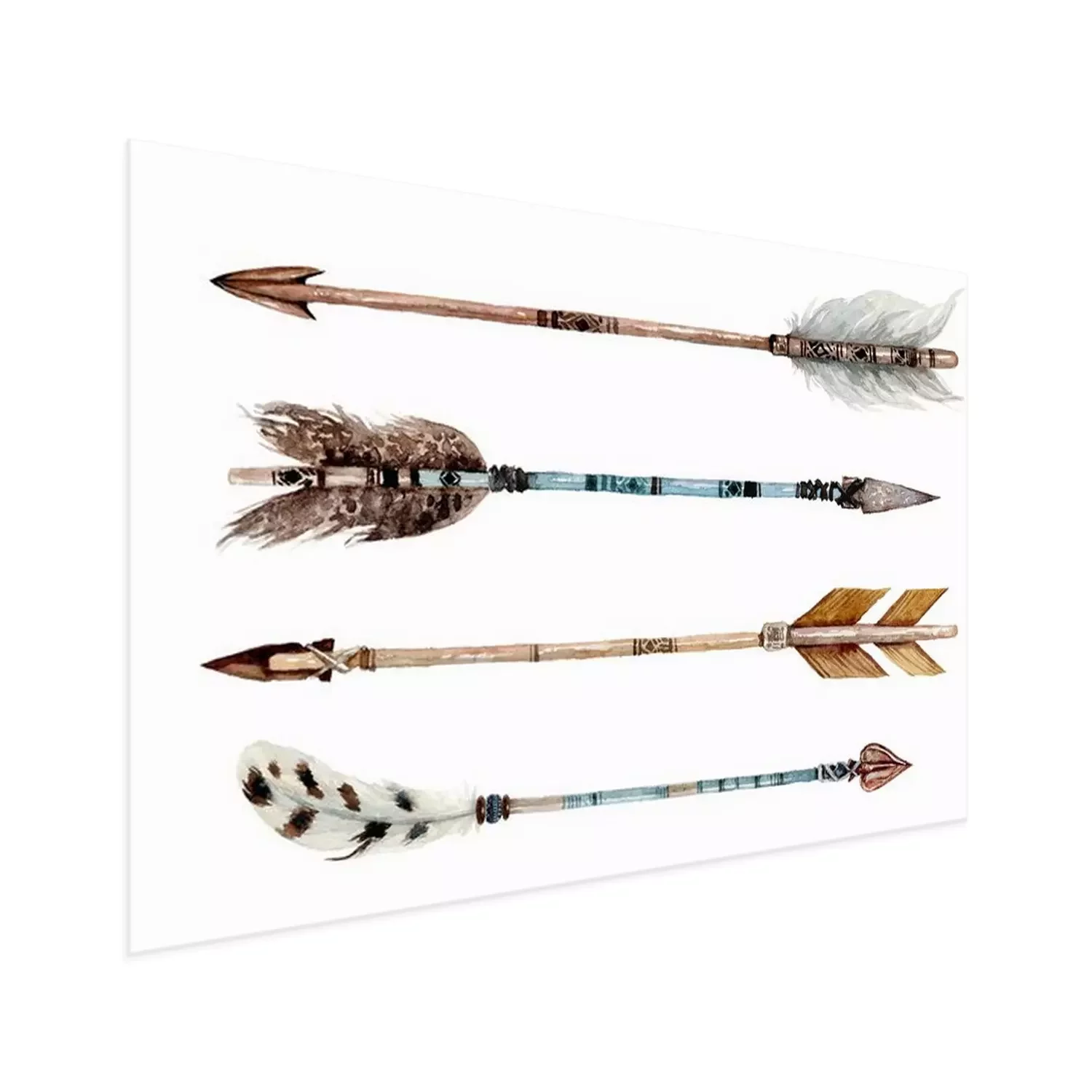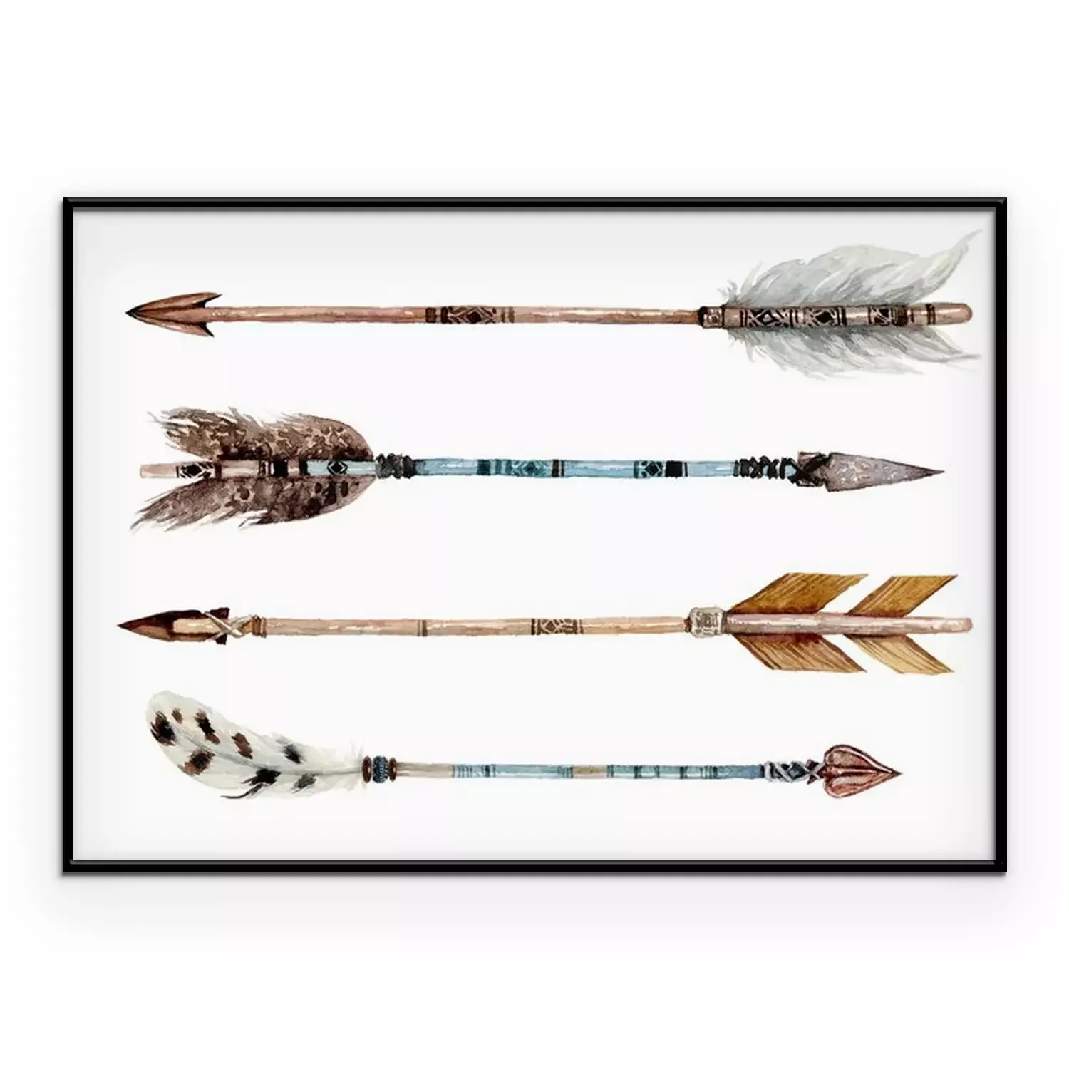 Poster: Aquarel etnische boho set pijlen, native american stam decoratie print element, tribale Navajo geïsoleerde illustratie Boheemse ornament, Indian, Peru, Azteekse verpakking.