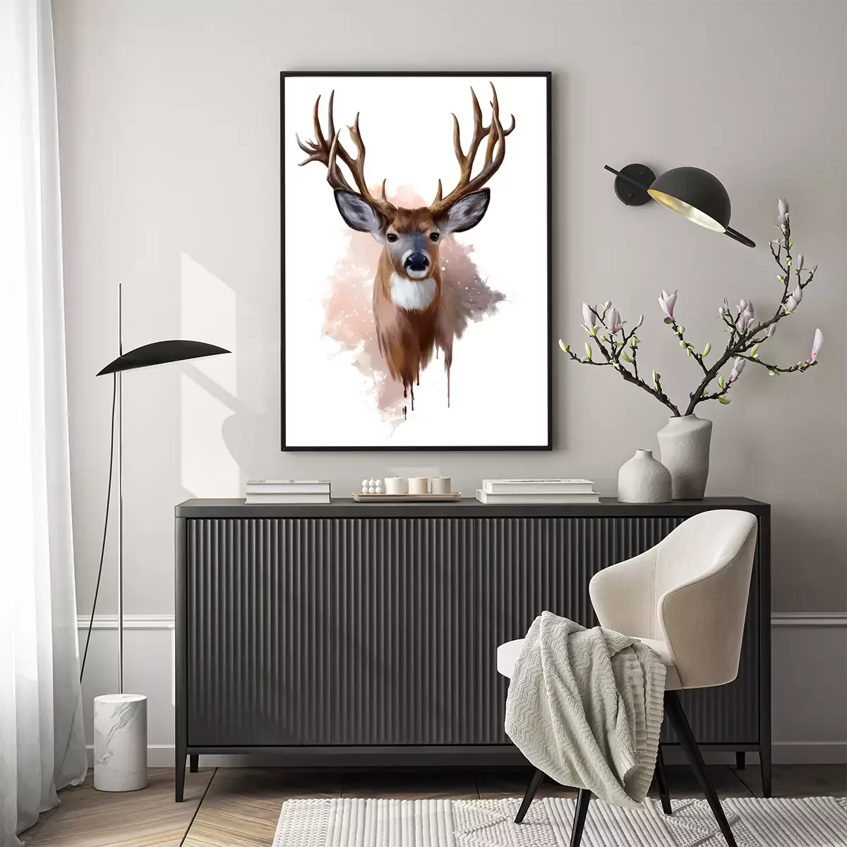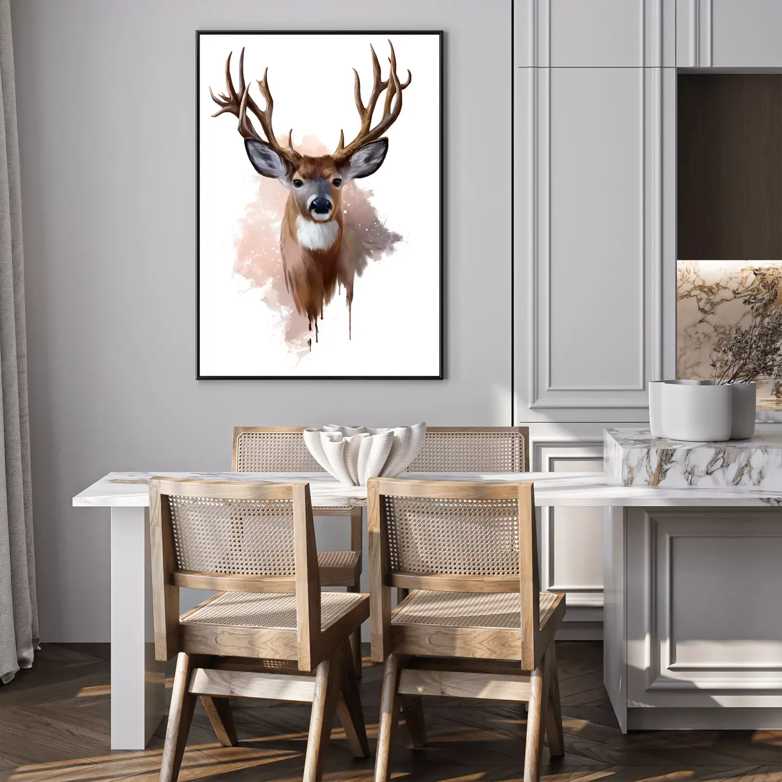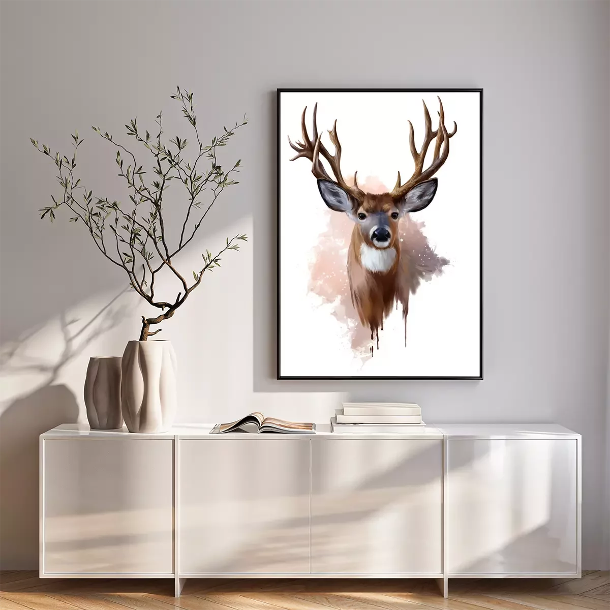 Poster: Aquarel hertje op witte achtergrond