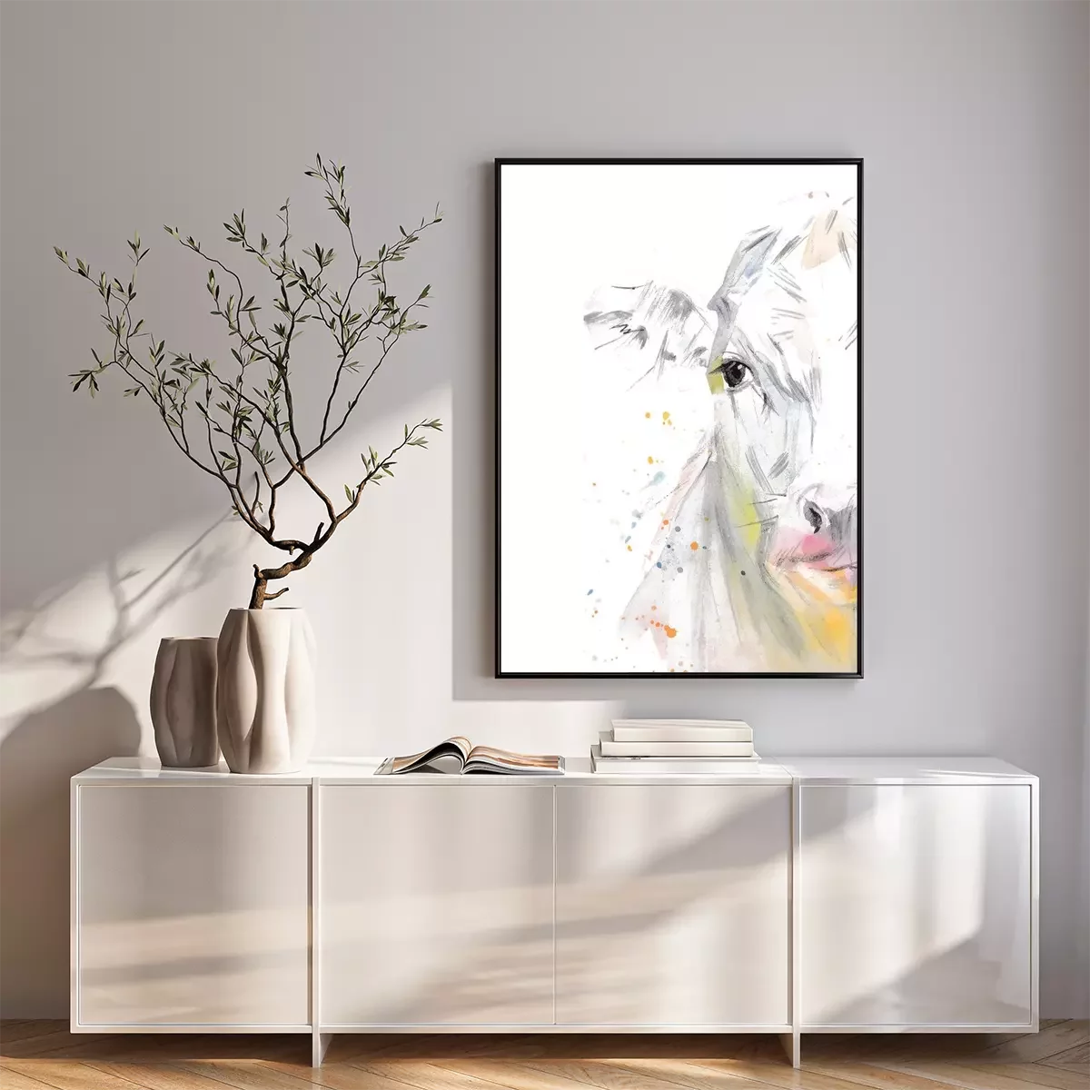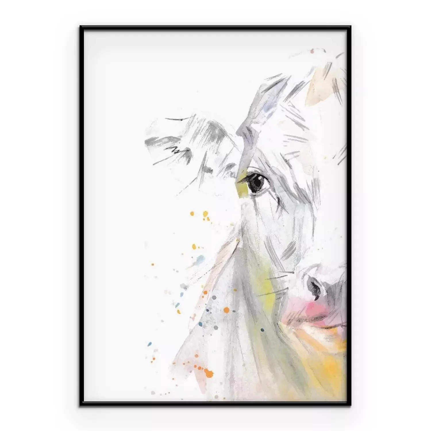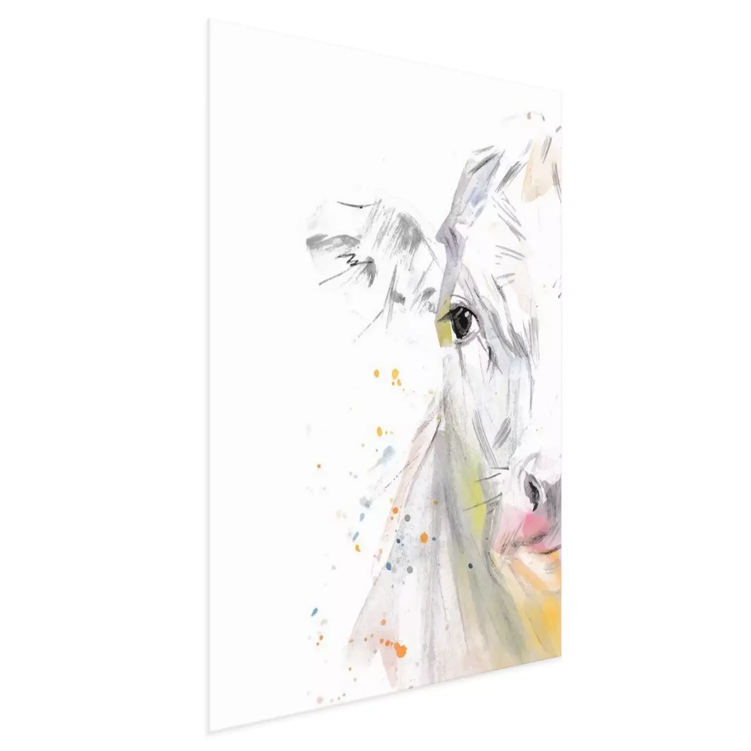 Poster: Aquarel koetje op witte achtergrond