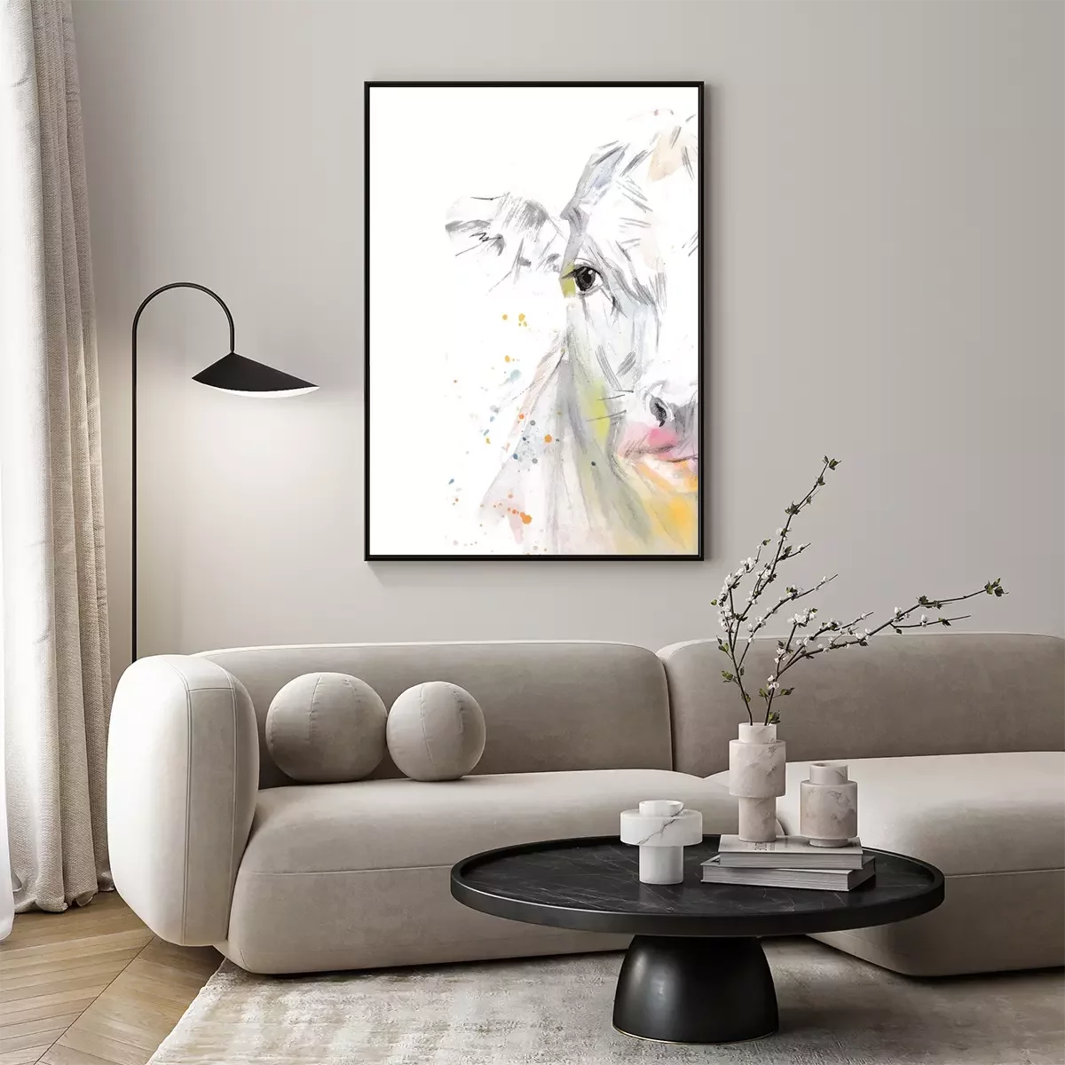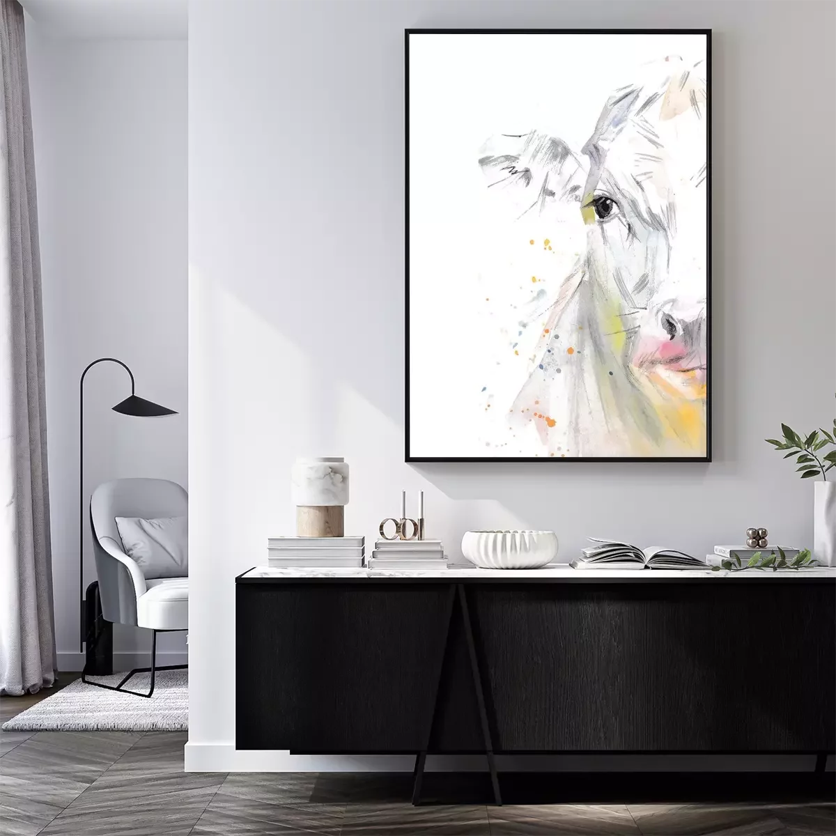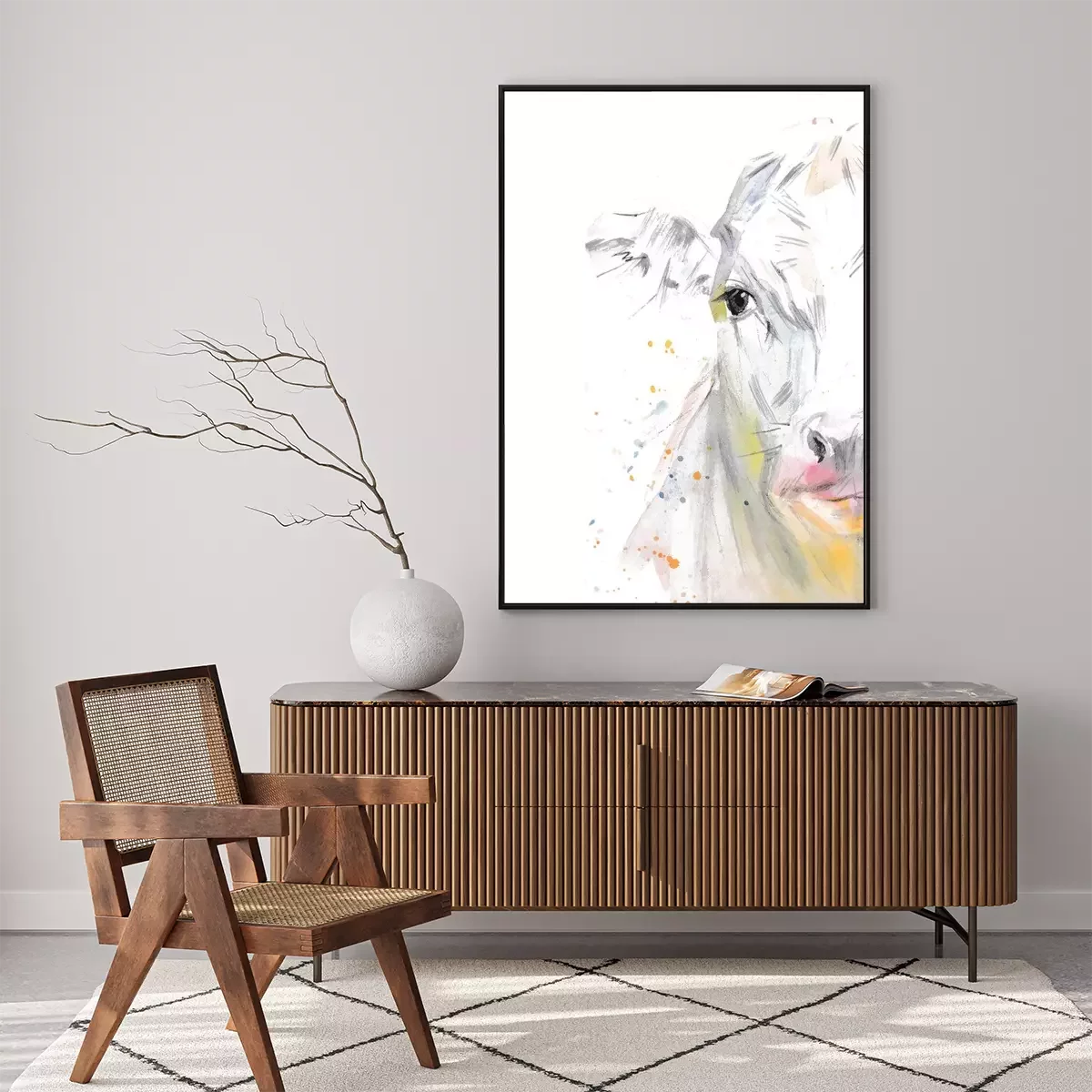 Poster: Aquarel koetje op witte achtergrond