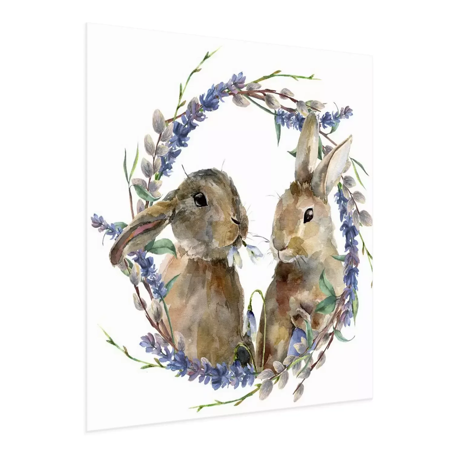 Poster: Aquarel konijnen tussen lavendel en wilgentakken