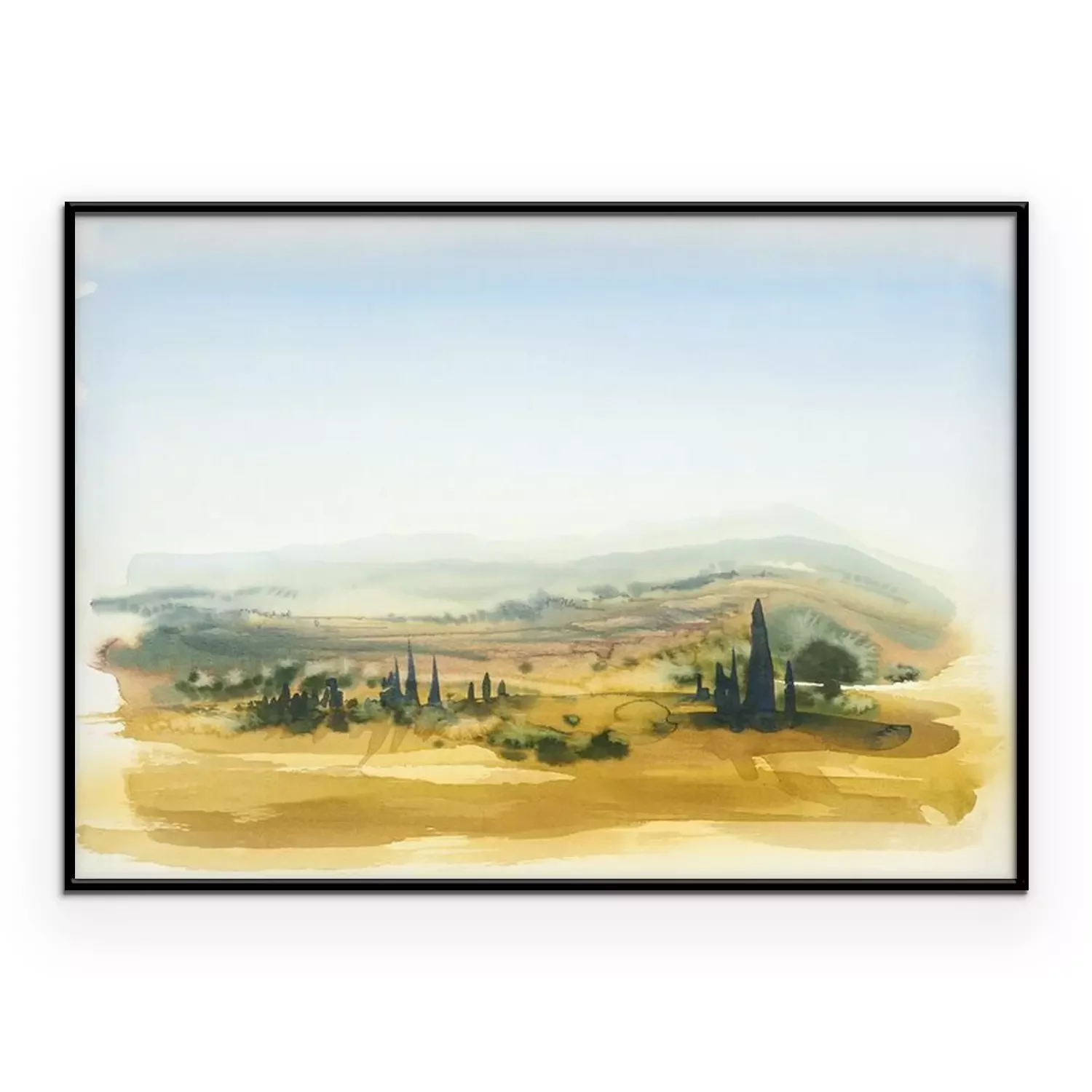 Originele aquarel schilderij van San Gimignano in Toscane, Italië.