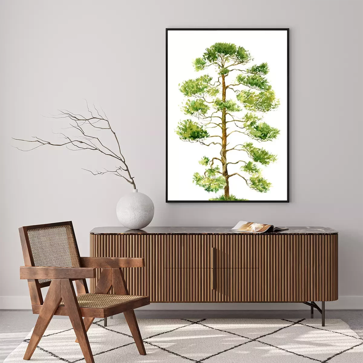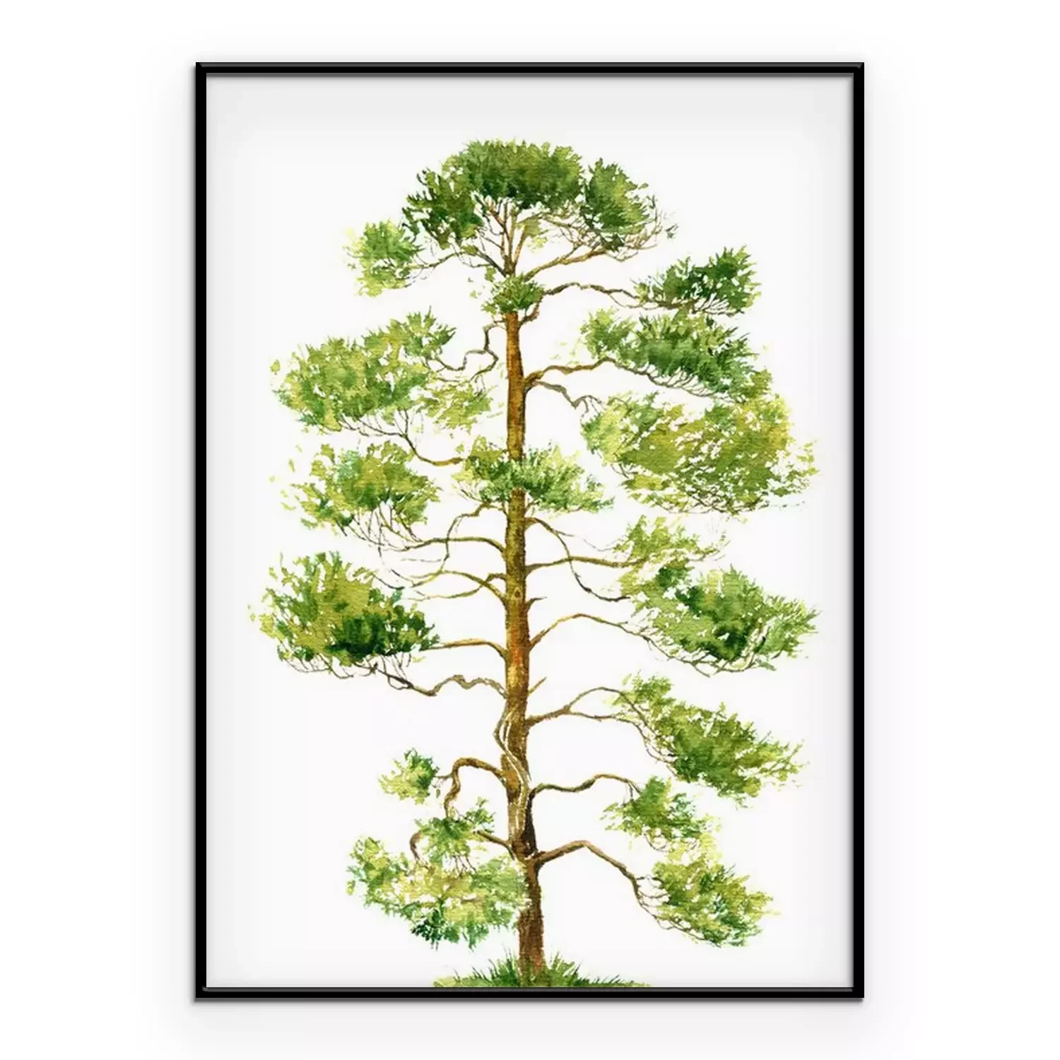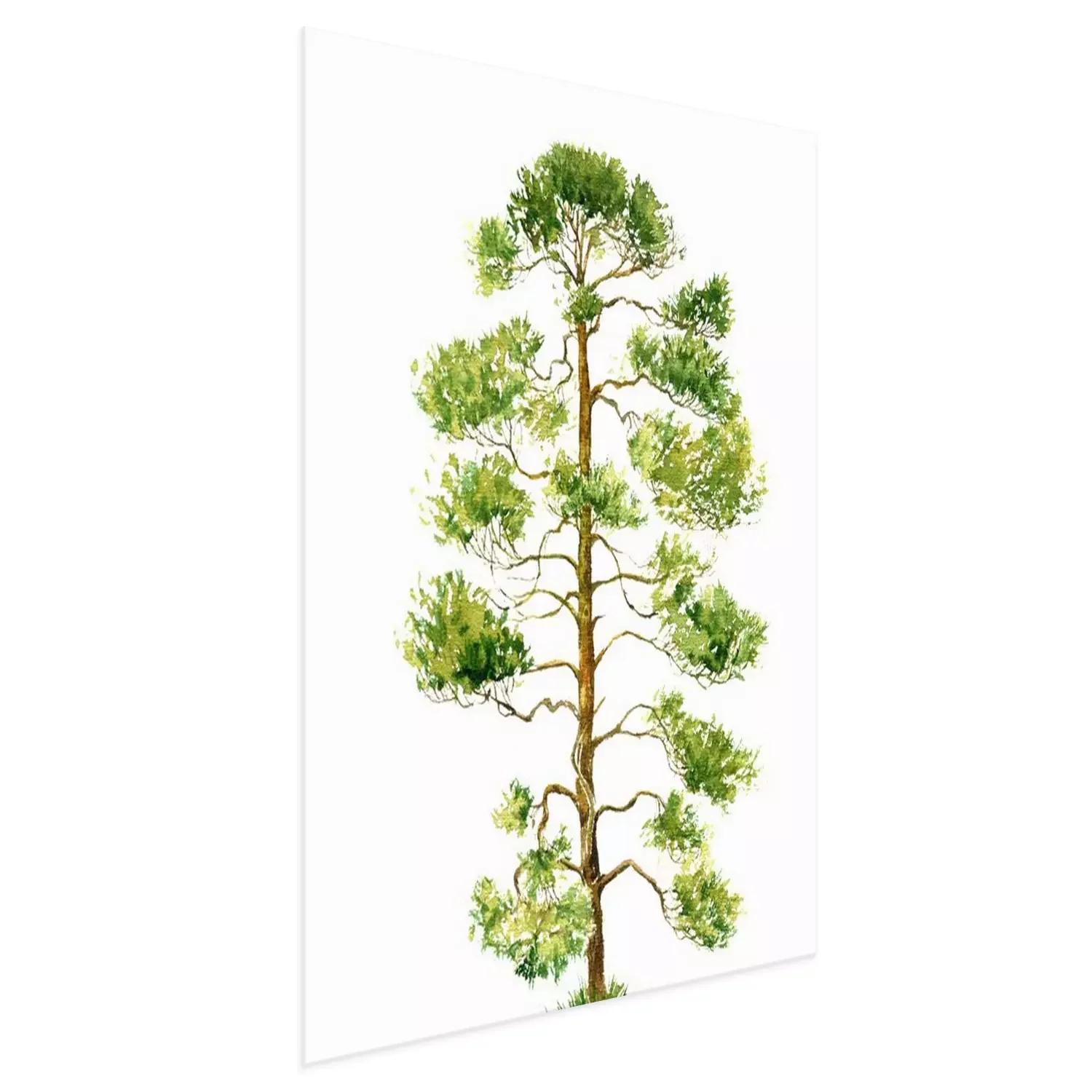 Poster: Aquarel schilderij van een dennenboom op een witte achtergrond