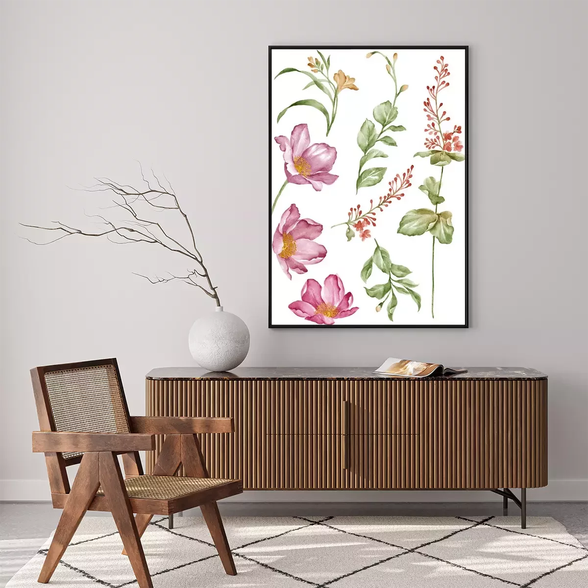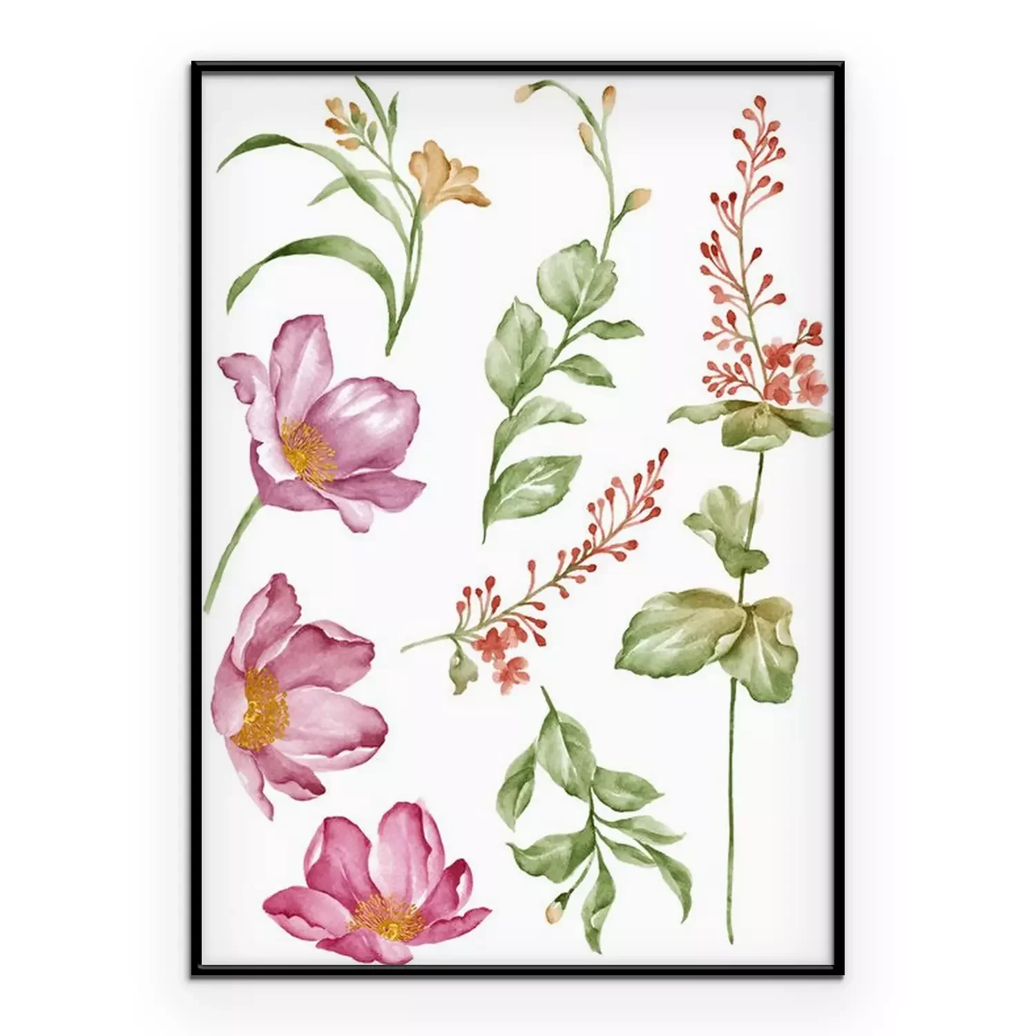 Poster: Aquarel schilderij van een plant in pastelkleuren