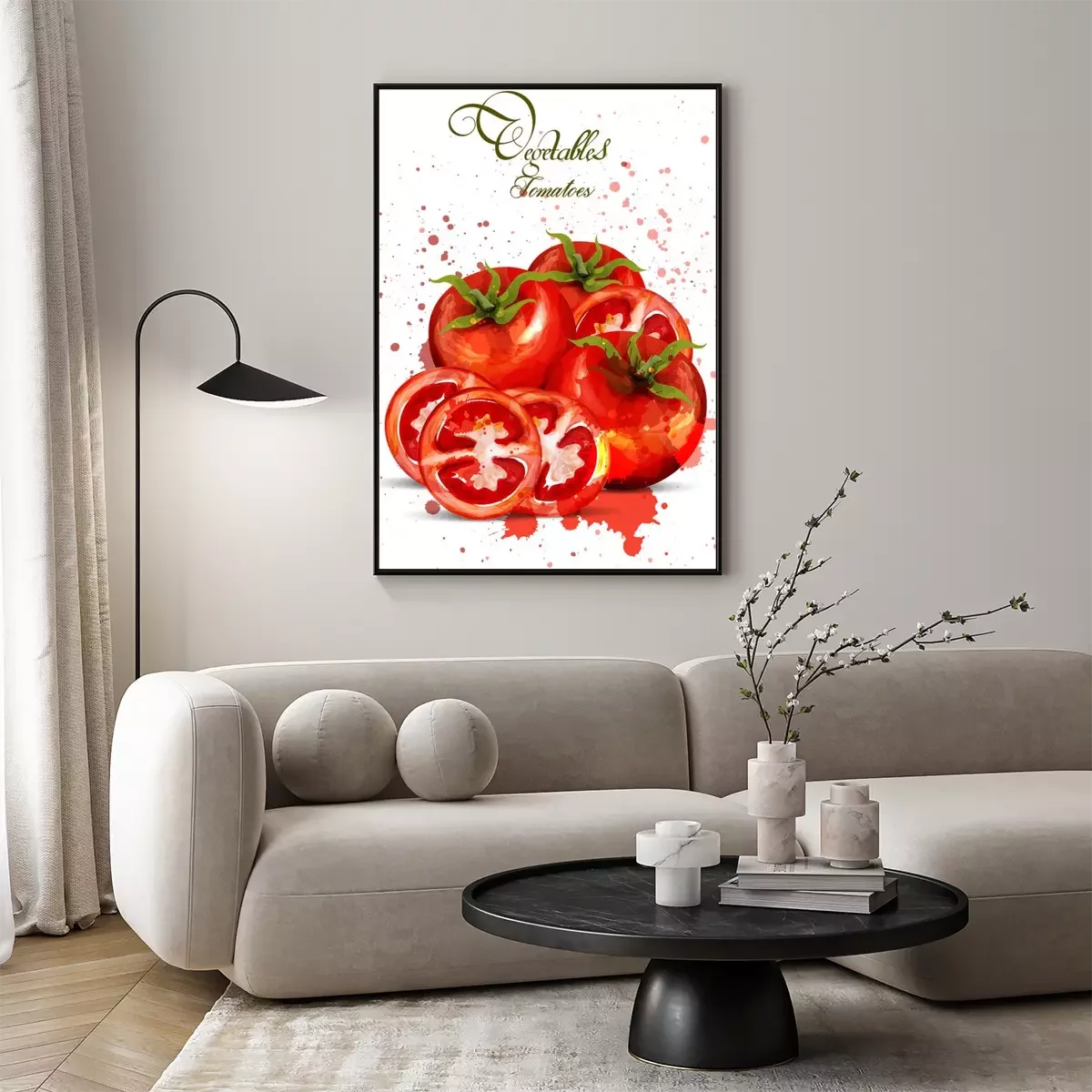 Poster Aquarel tomaten Vector. Heerlijk ontwerp met kleurrijke vlekken handgemaakt