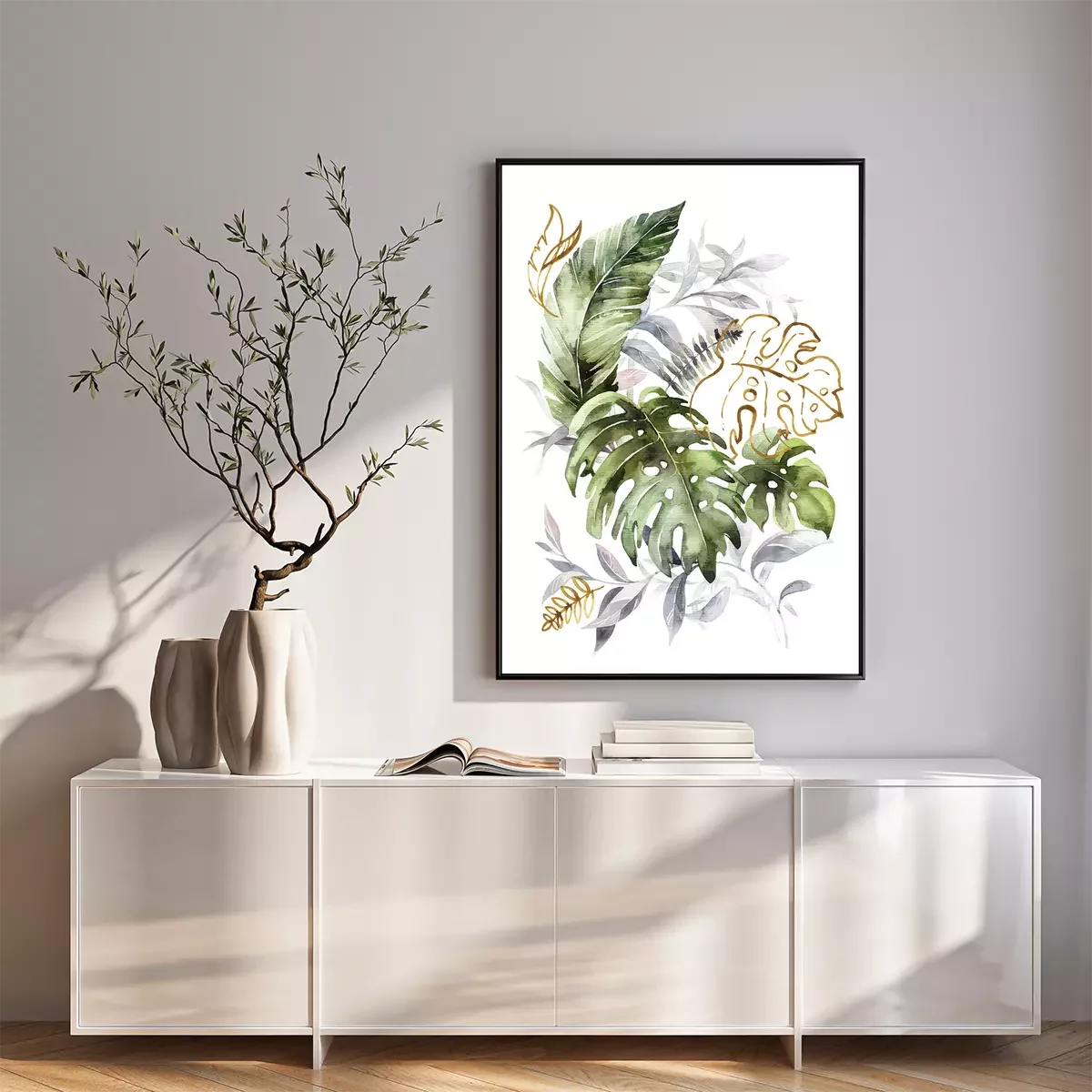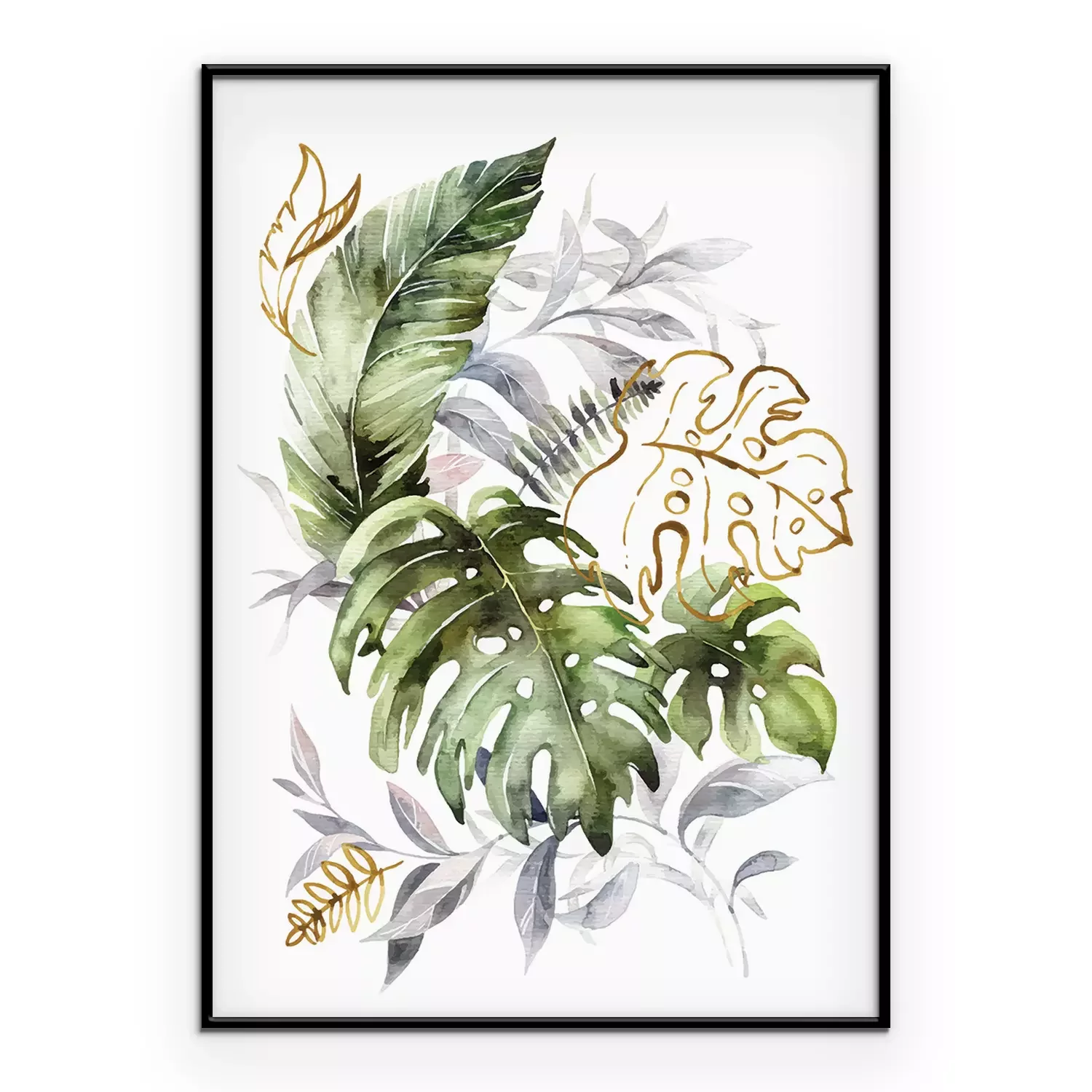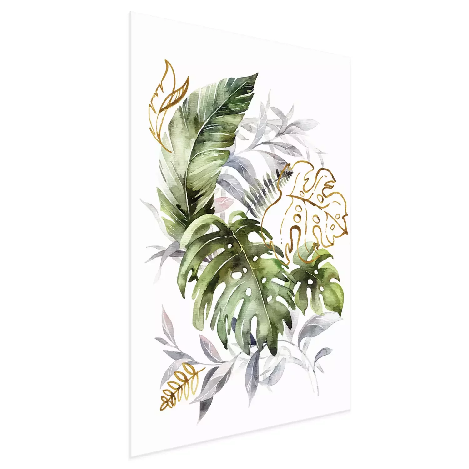 Poster: Aquarel tropische bladeren op een witte achtergrond
