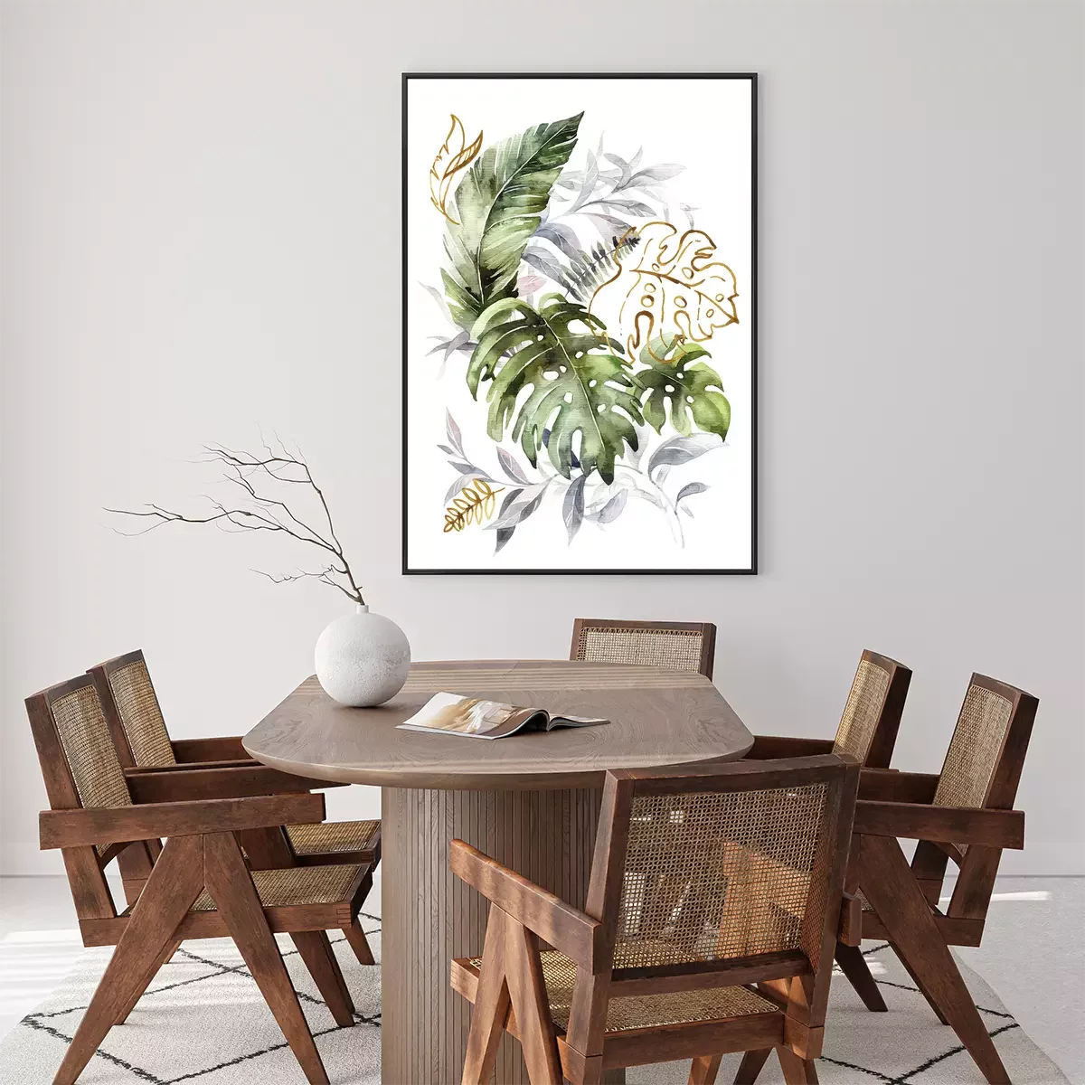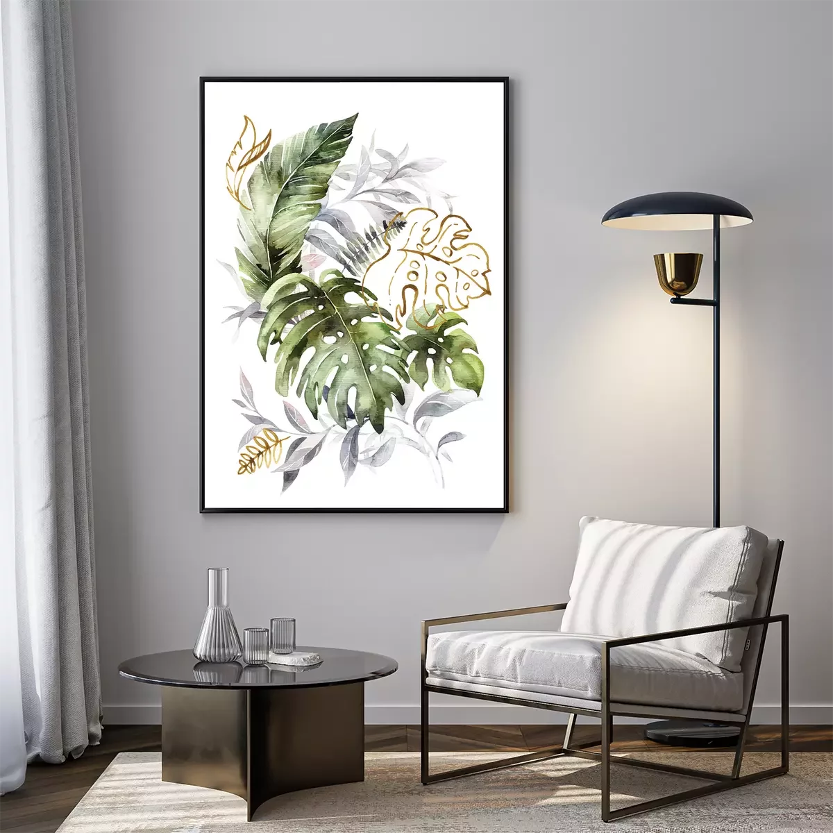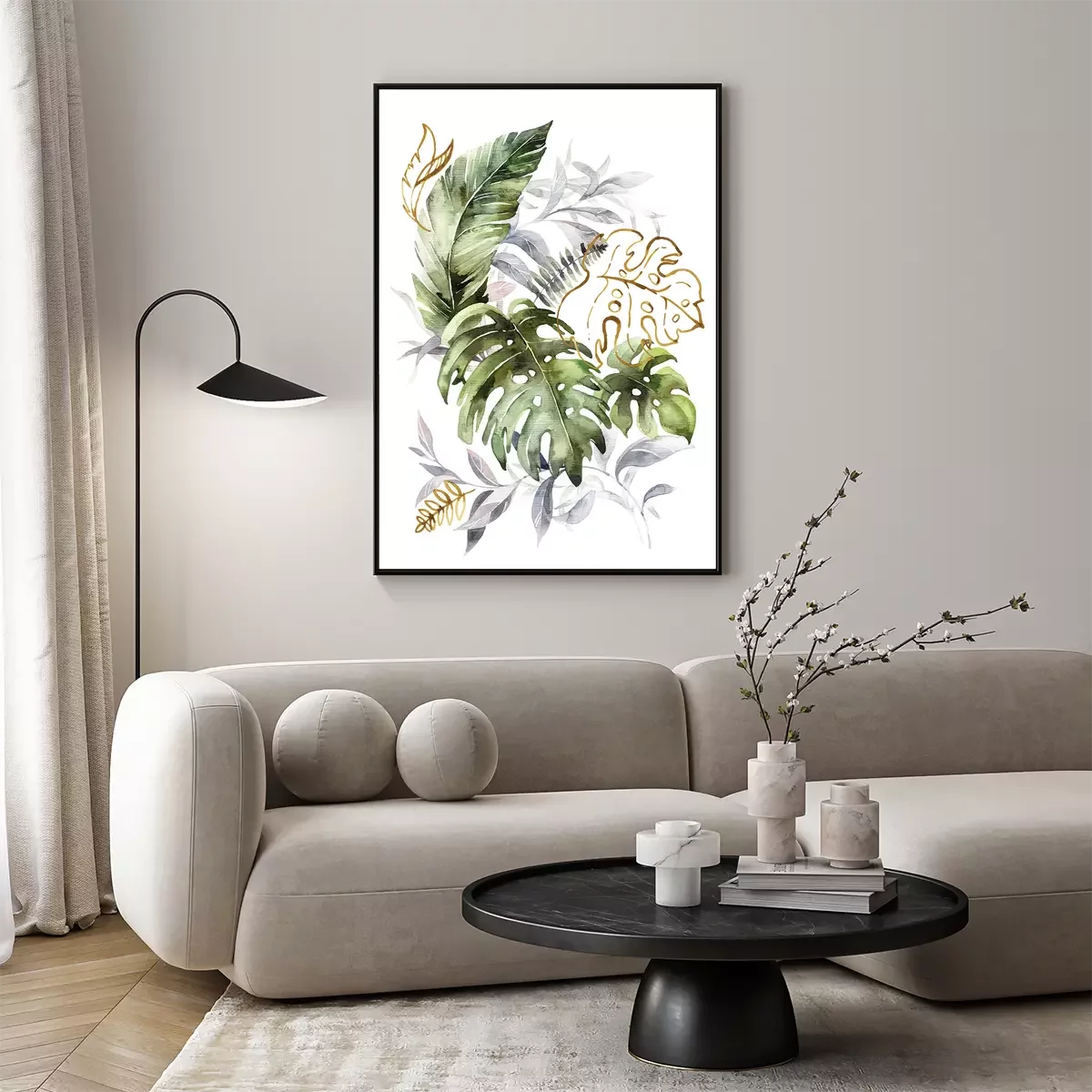 Poster: Aquarel tropische bladeren op een witte achtergrond
