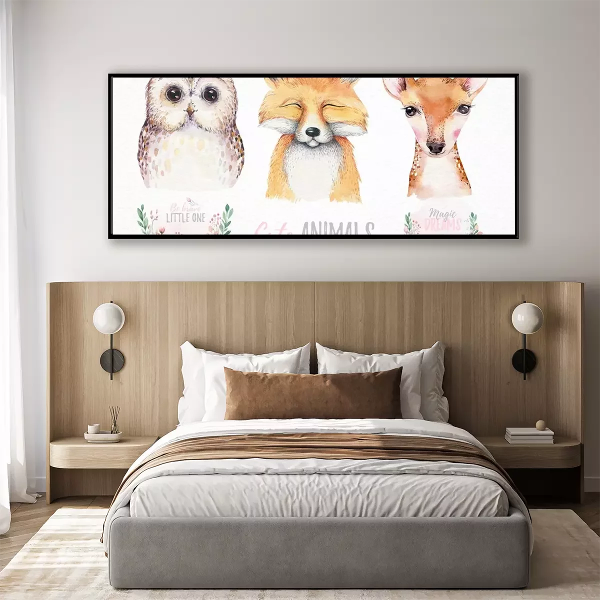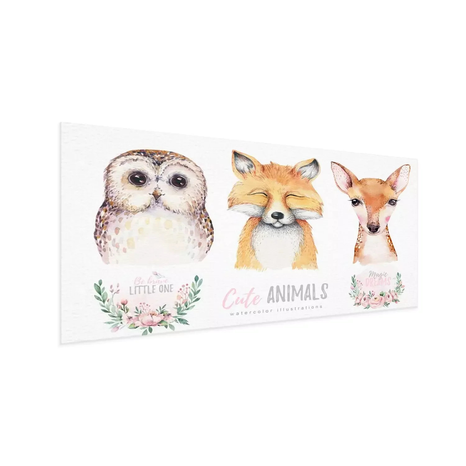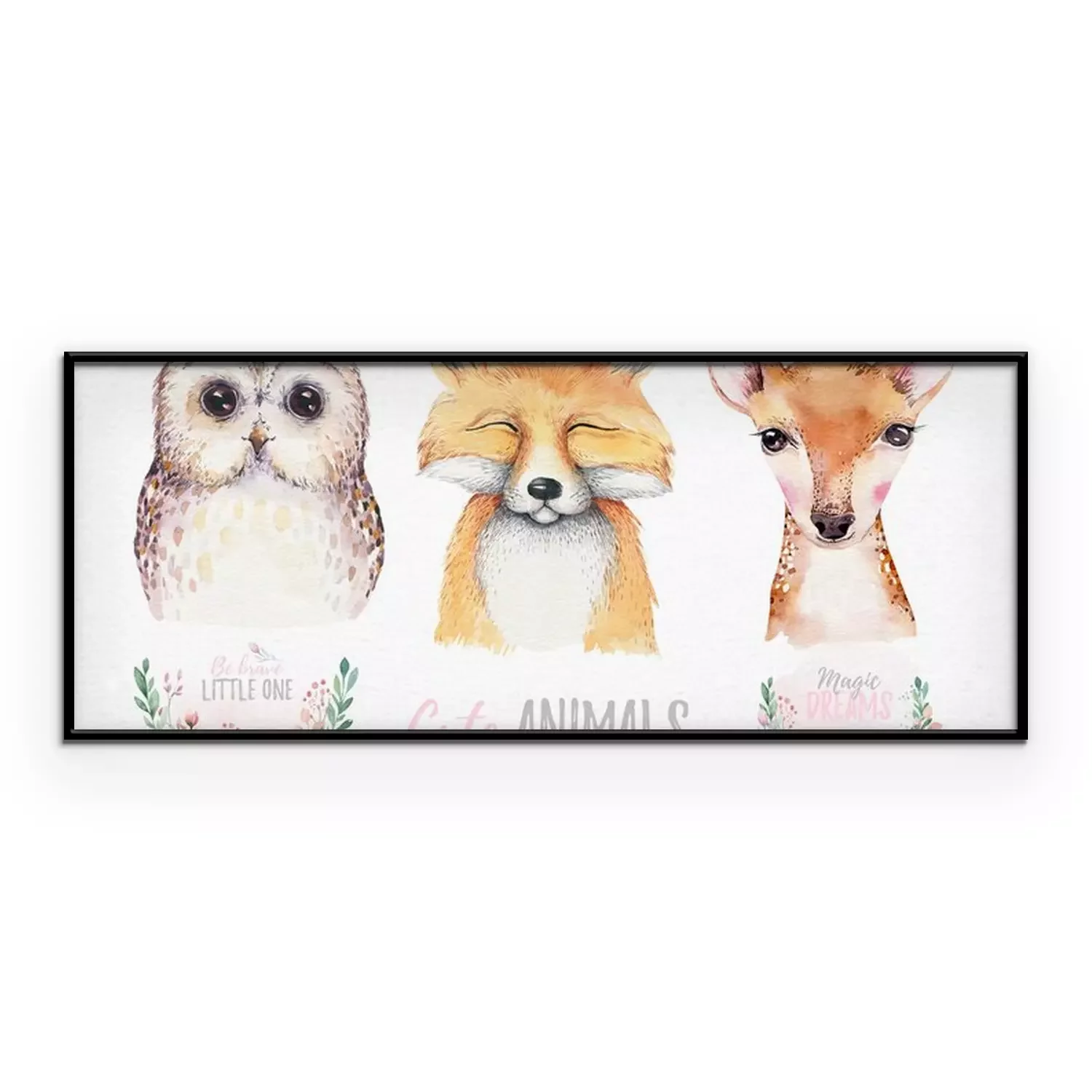 Poster: Aquarel uil vos en herten en bloemen