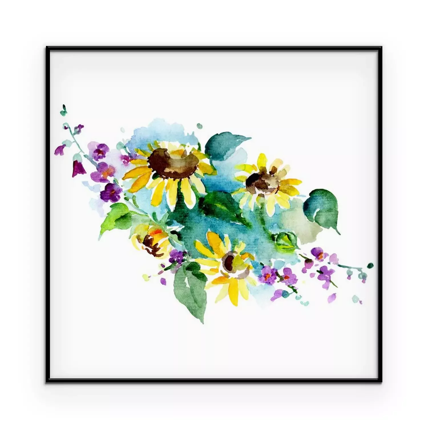 Poster: Aquarel zonnebloemen in een romantisch boeket