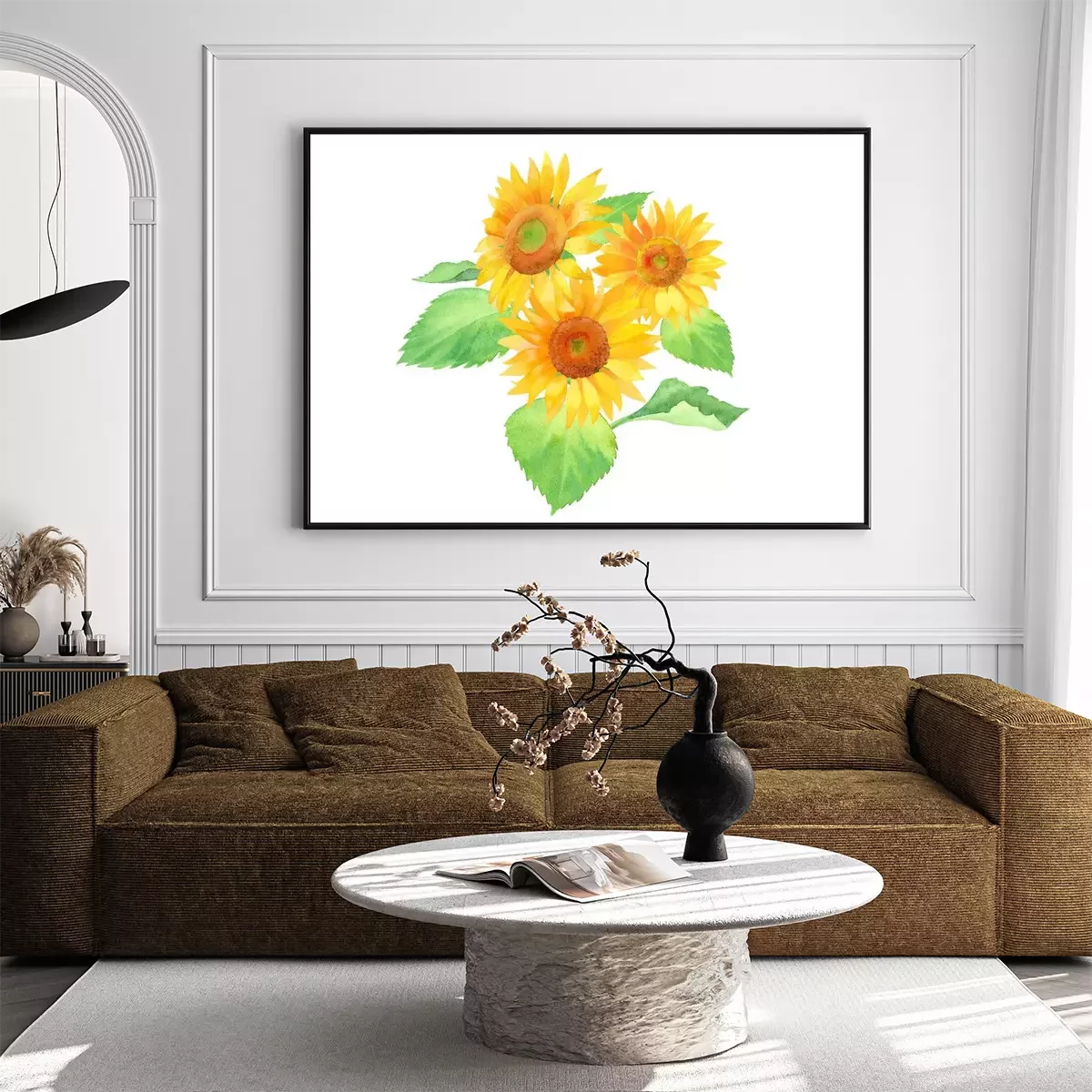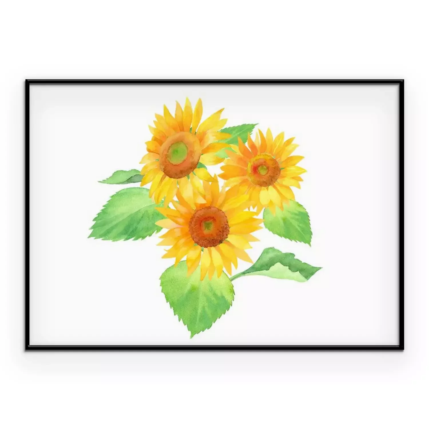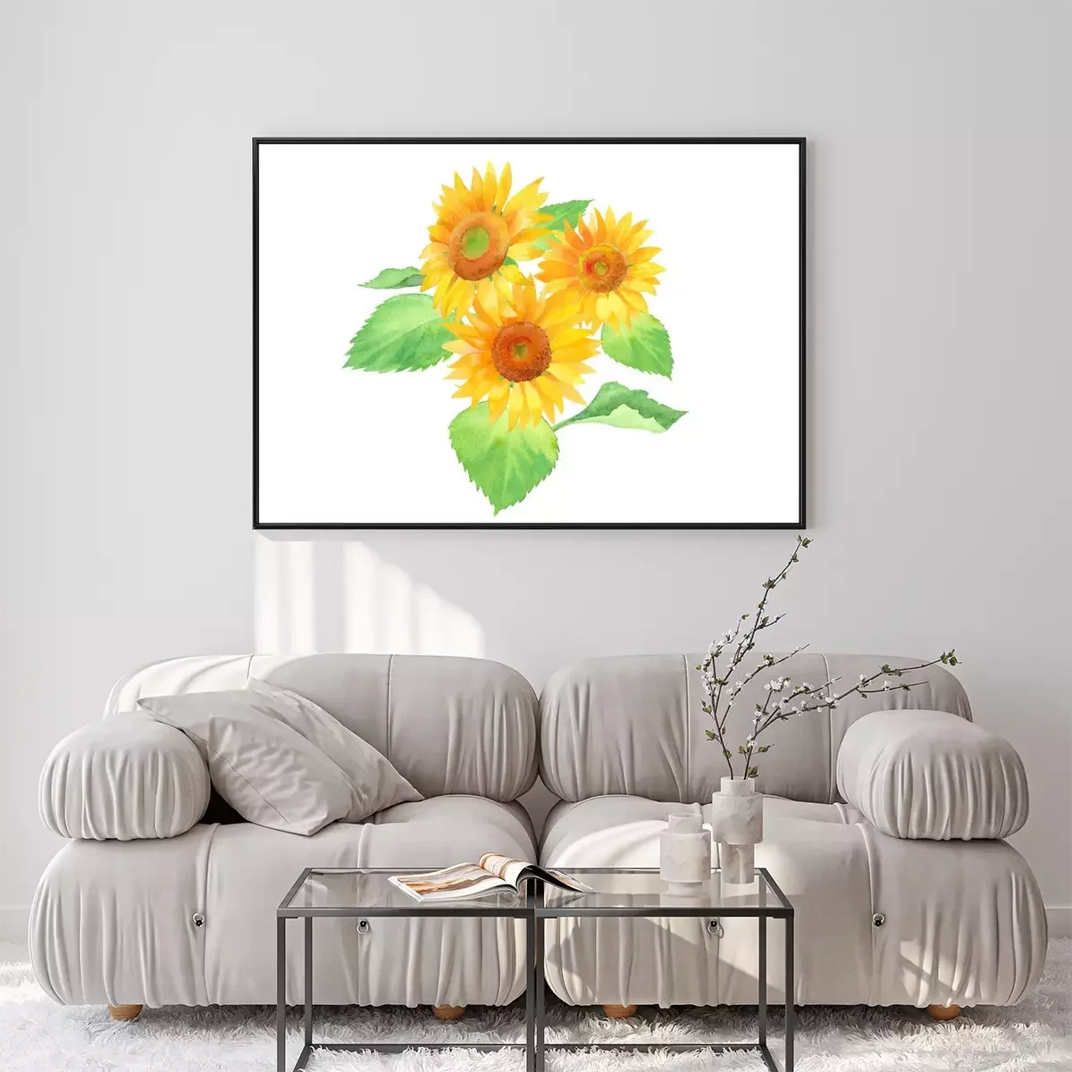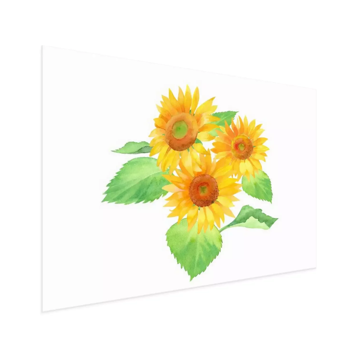 Poster: Aquarel zonnebloemen omringd door groene bladeren