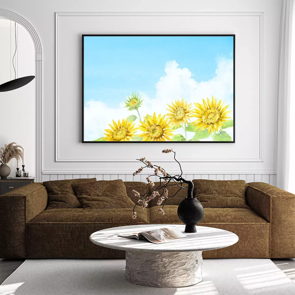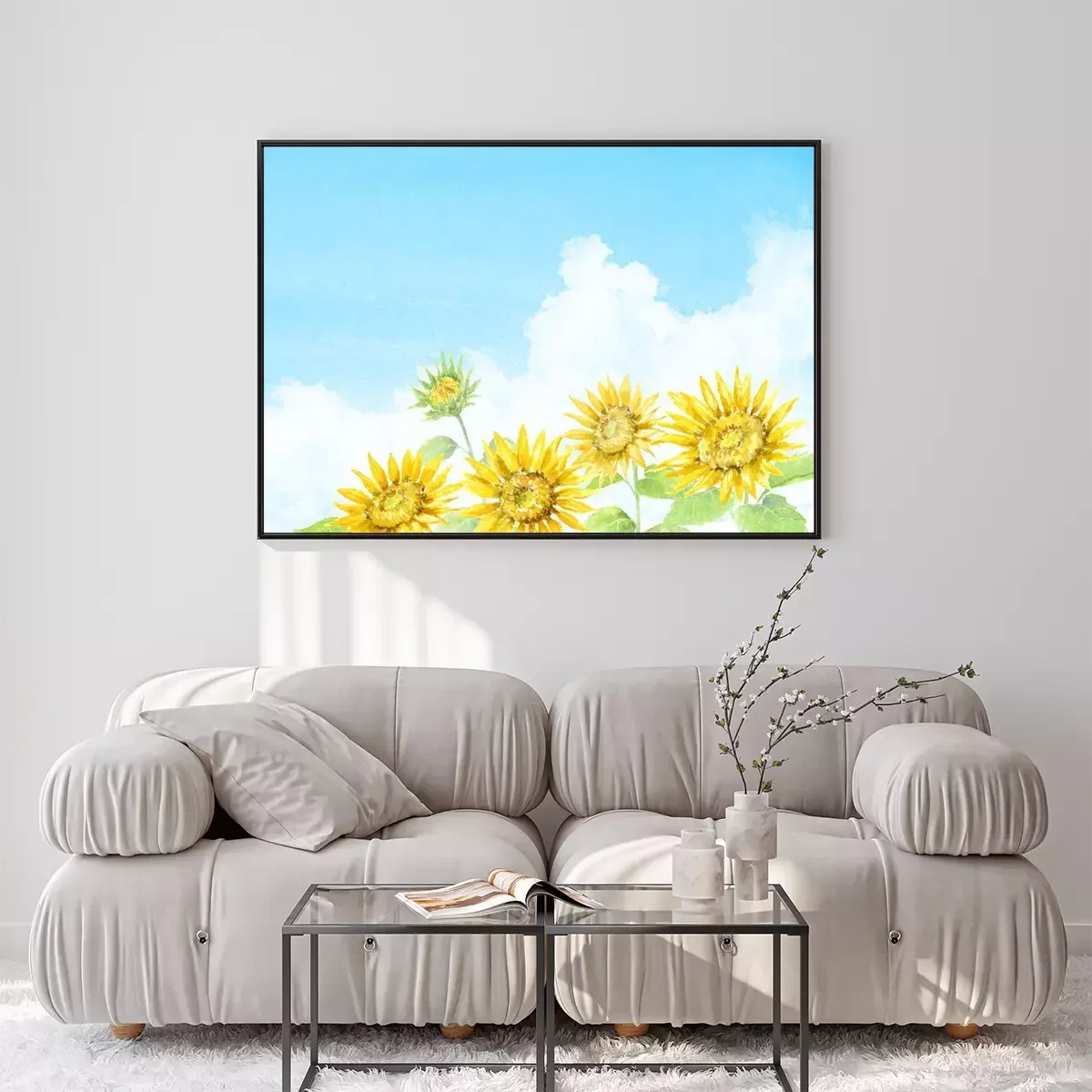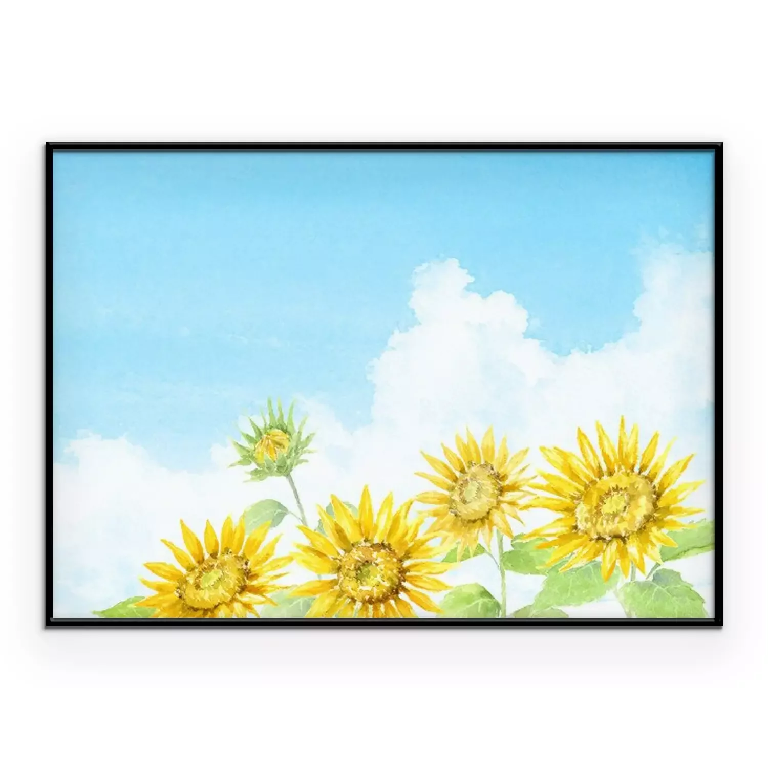 Poster: Aquarel zonnebloemen tijdens een zomerse dag
