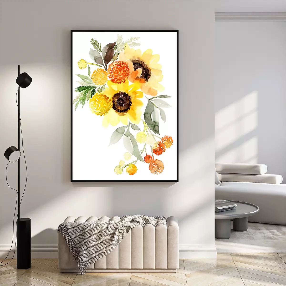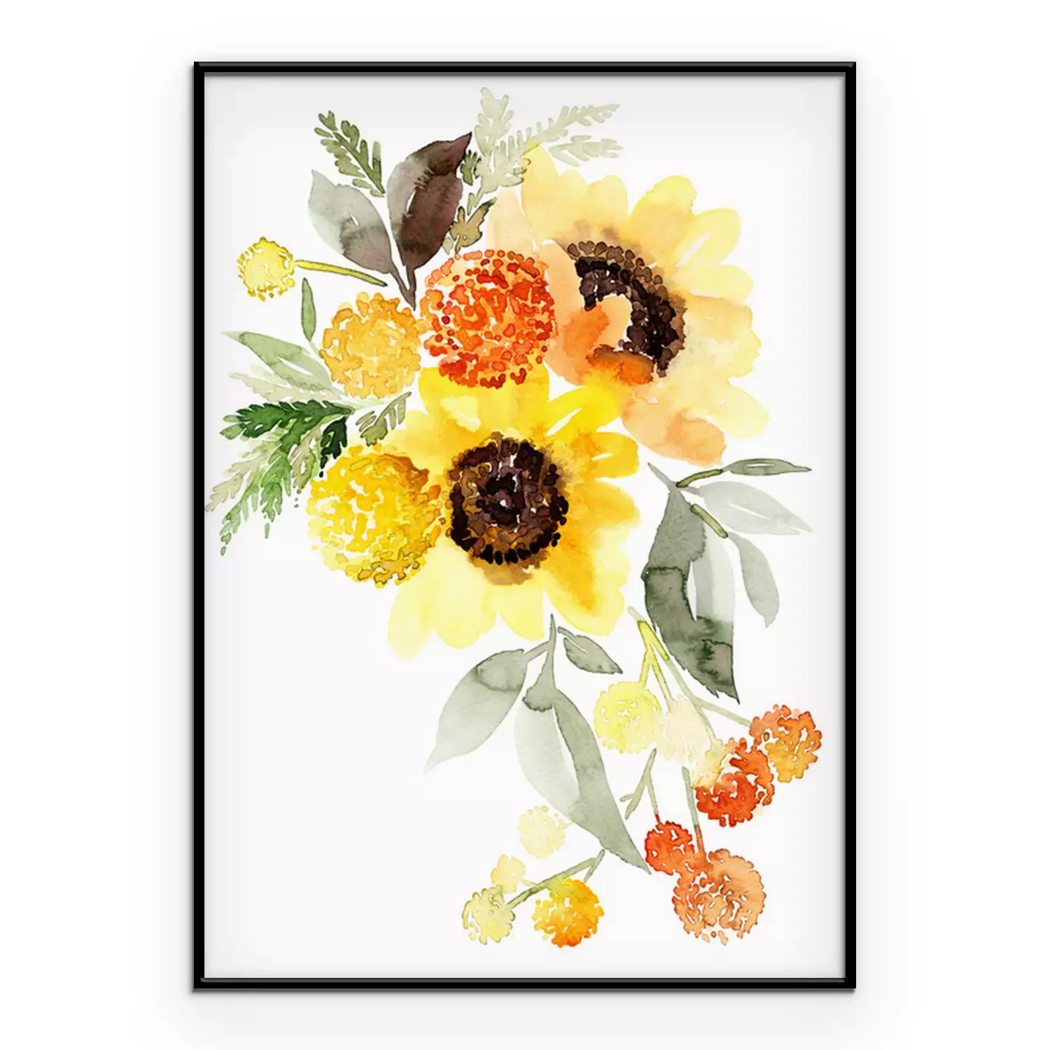 Poster: Aquarel zonnebloemen van herfstkleuren