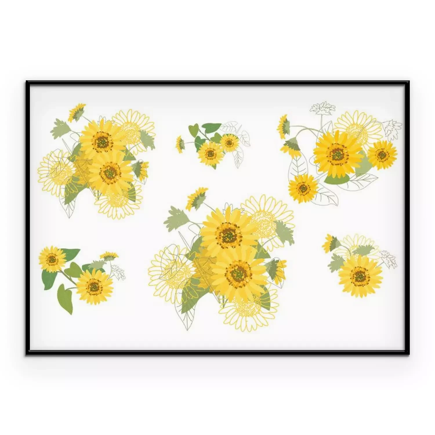 Poster: Aquarel zonnebloemen zonder stengels