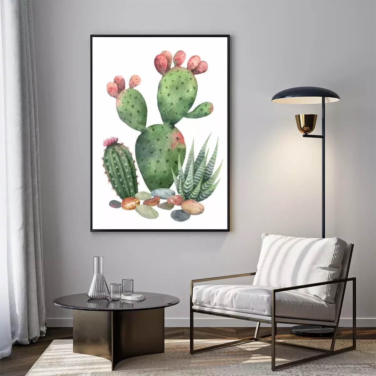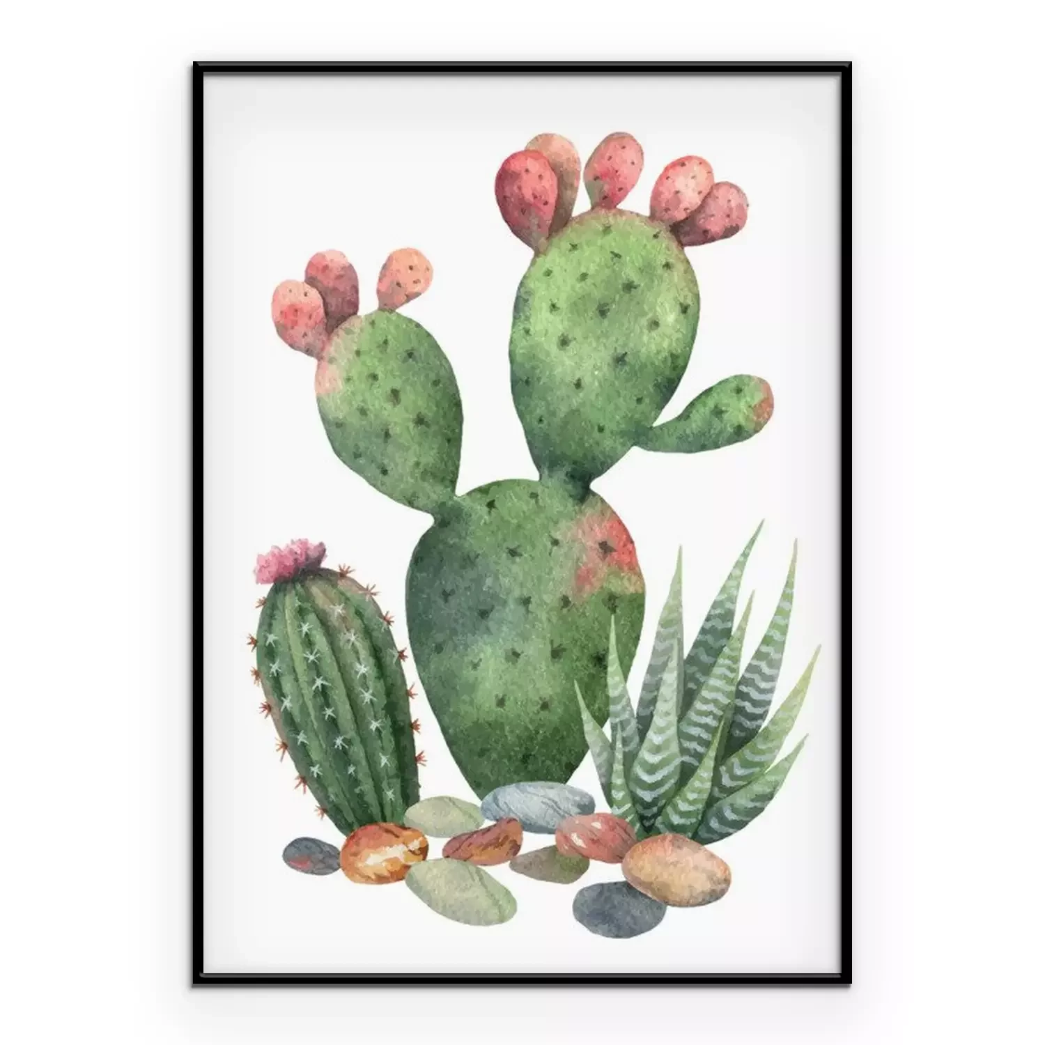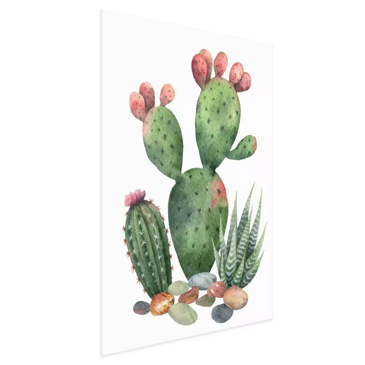 Poster: Aquarelcactus met roze uiteinden