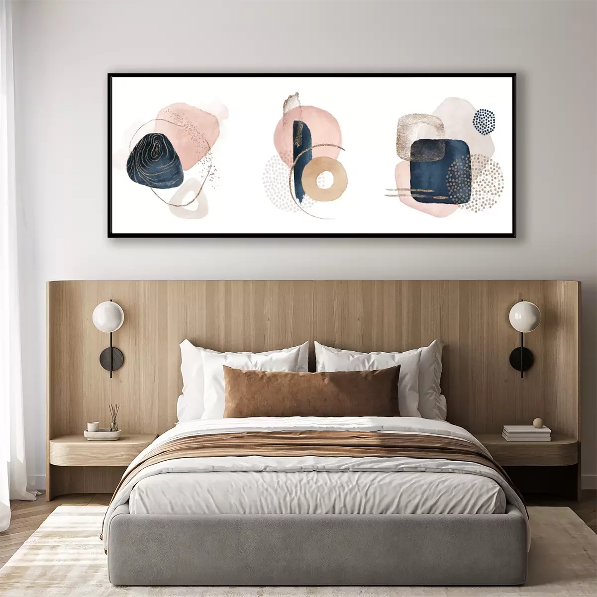 Poster Arrangements. Navy blue, blush, pink, ivory, beige watercolor Illustration and gold elements, on white background. Abstract modern print set. Logo. Wall art. Poster. Business card.