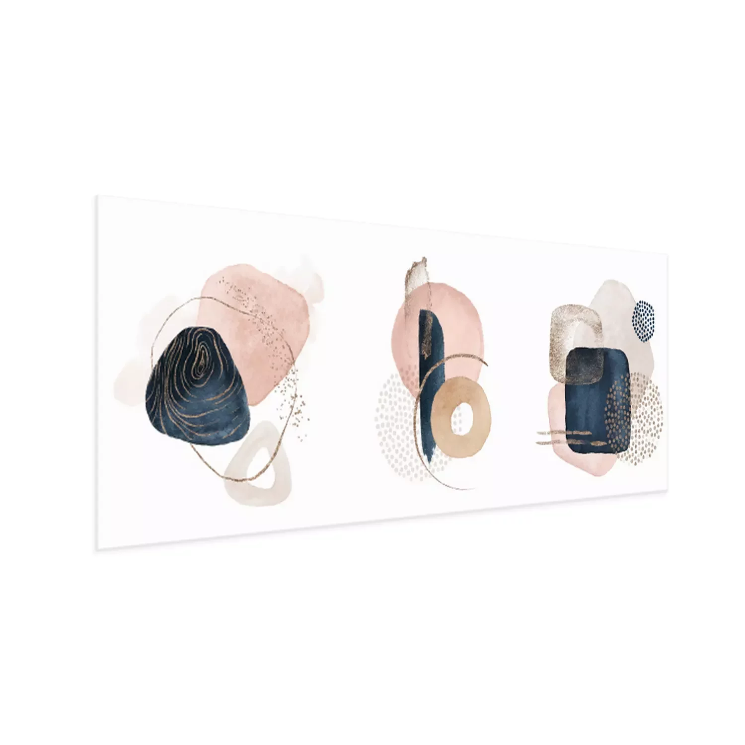 Poster: Arrangements. Navy blue, blush, pink, ivory, beige watercolor Illustration and gold elements, on white background. Abstract modern print set. Logo. Wall art. Poster. Business card.