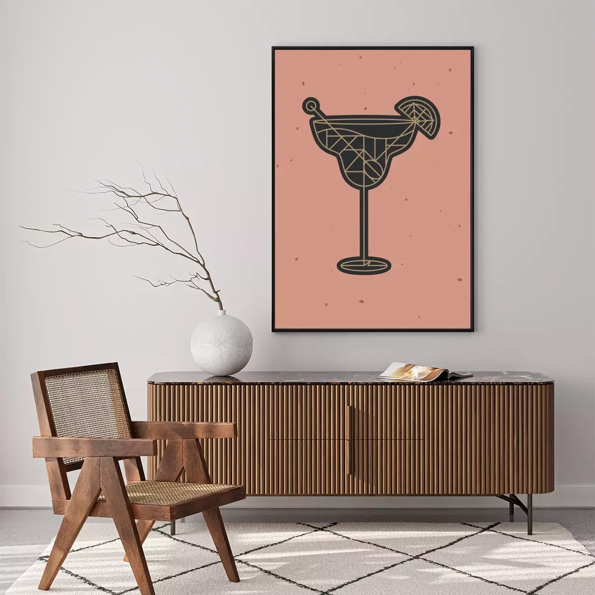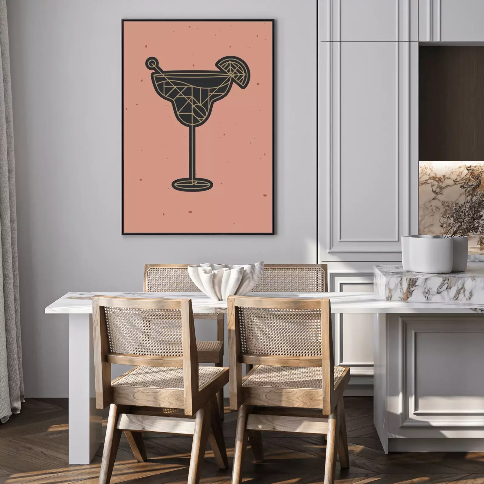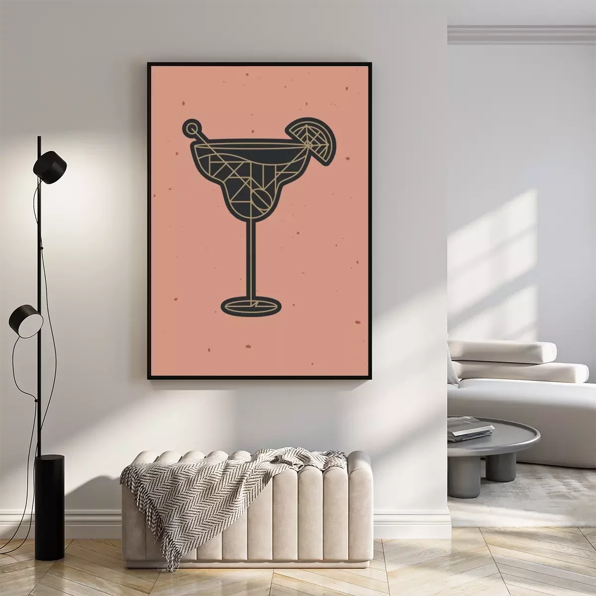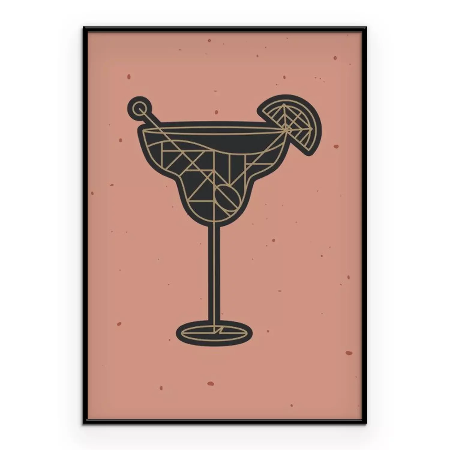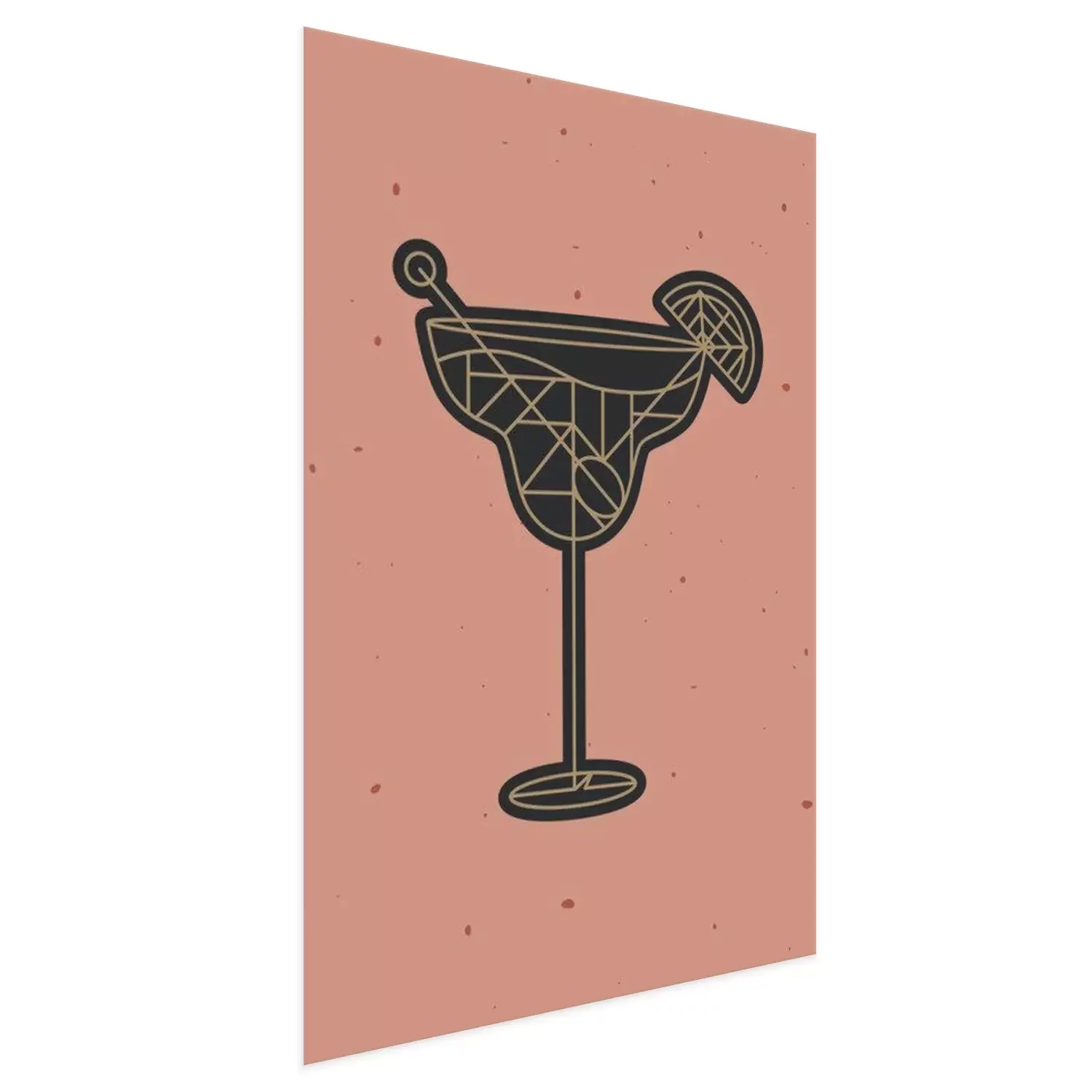 Poster: Art deco margarita cocktail op koraalkleurige achtergrond