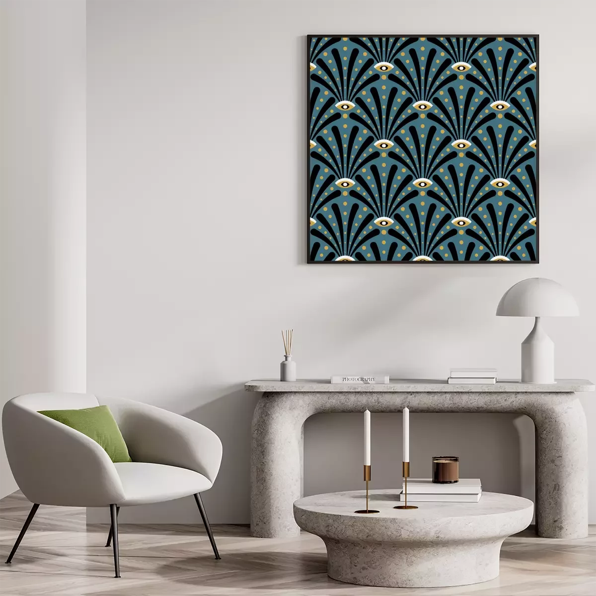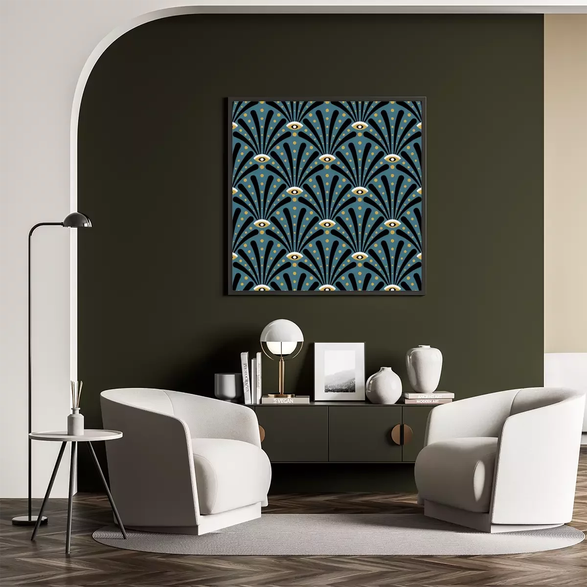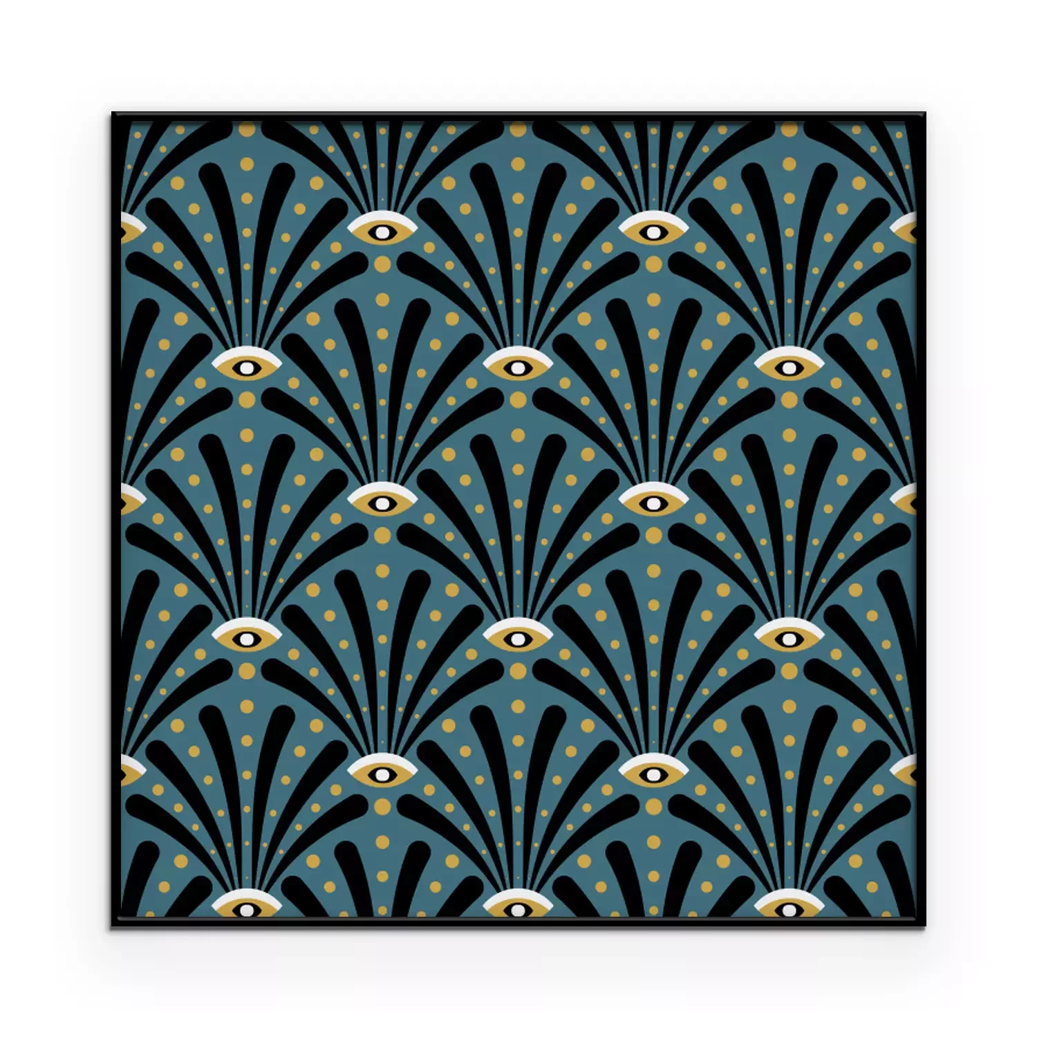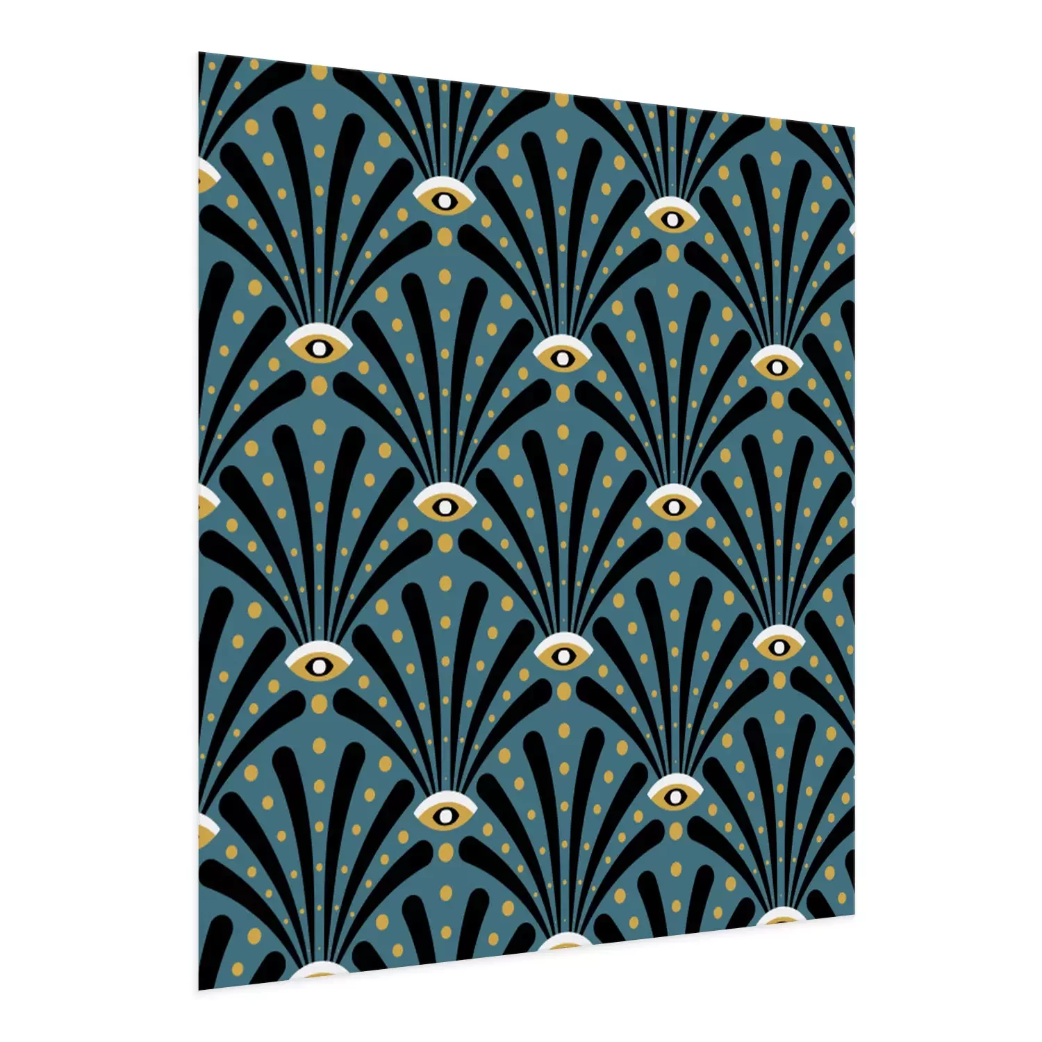 Poster: Art nouveau art deco patroon op blauwe achtergrond