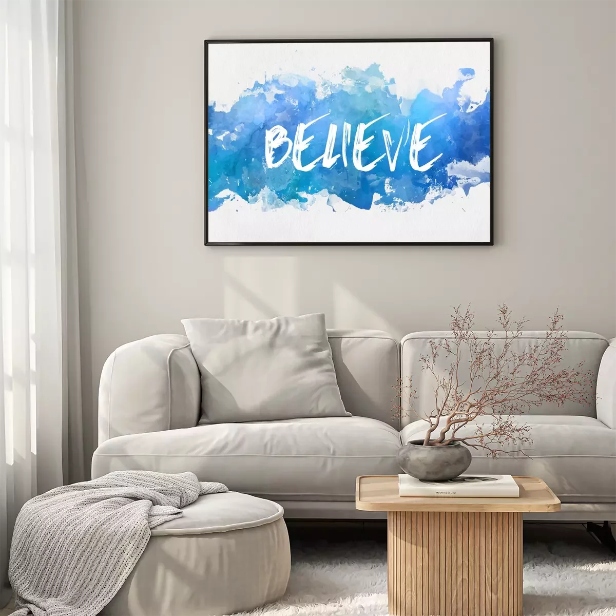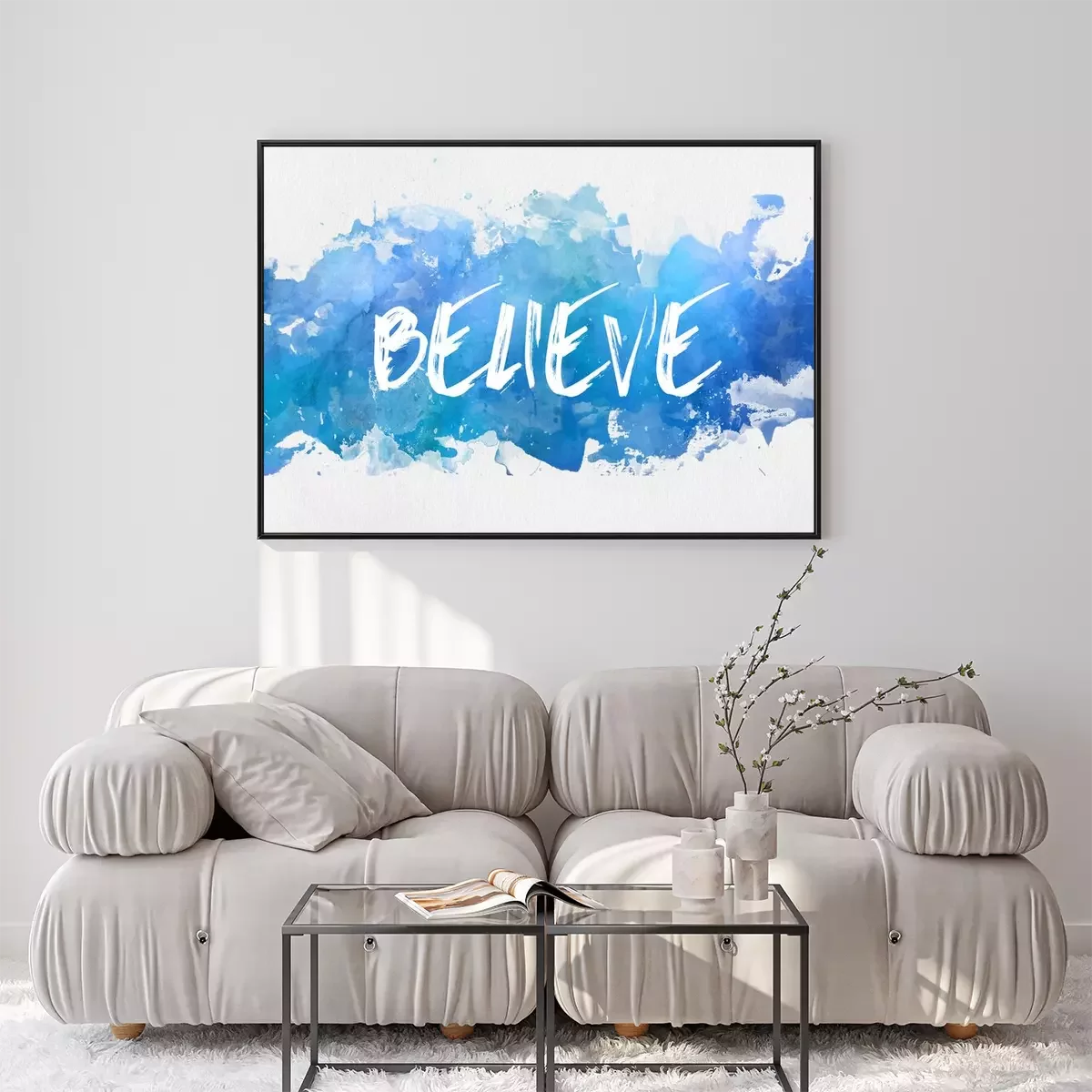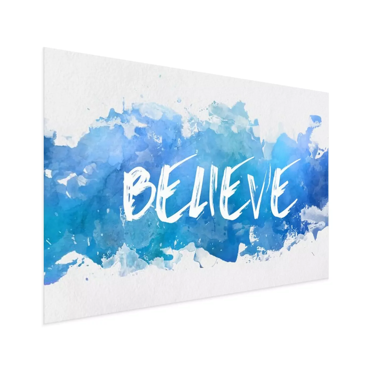 Poster: Artistieke inscriptie geloof op een blauwe achtergrond