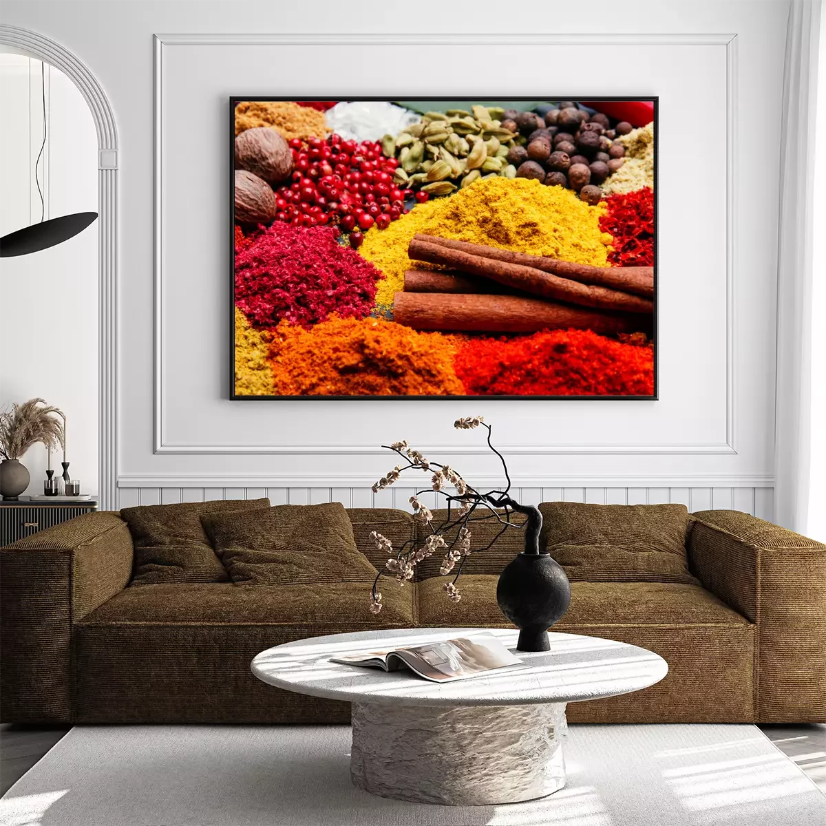 Poster: assortiment van kruiden kruiden op een zwarte steen