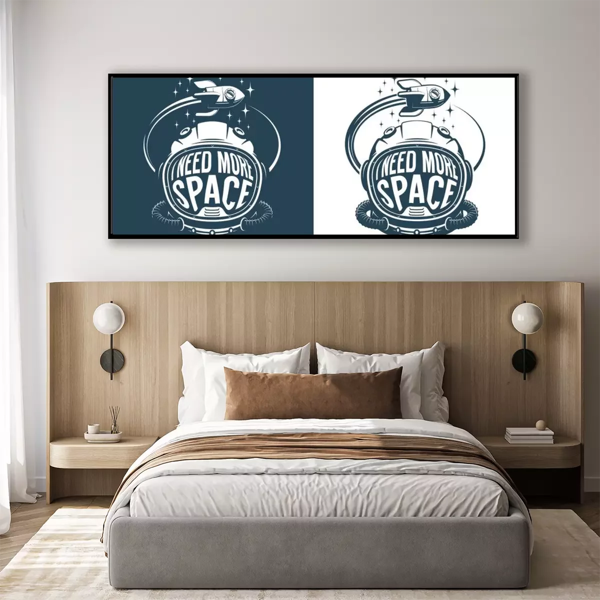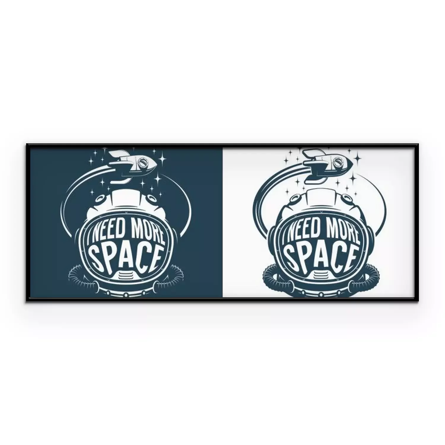 Poster Astronaut helmet retro logo with text - i need more space - an flying rocket spaceship. Vector illustration.
