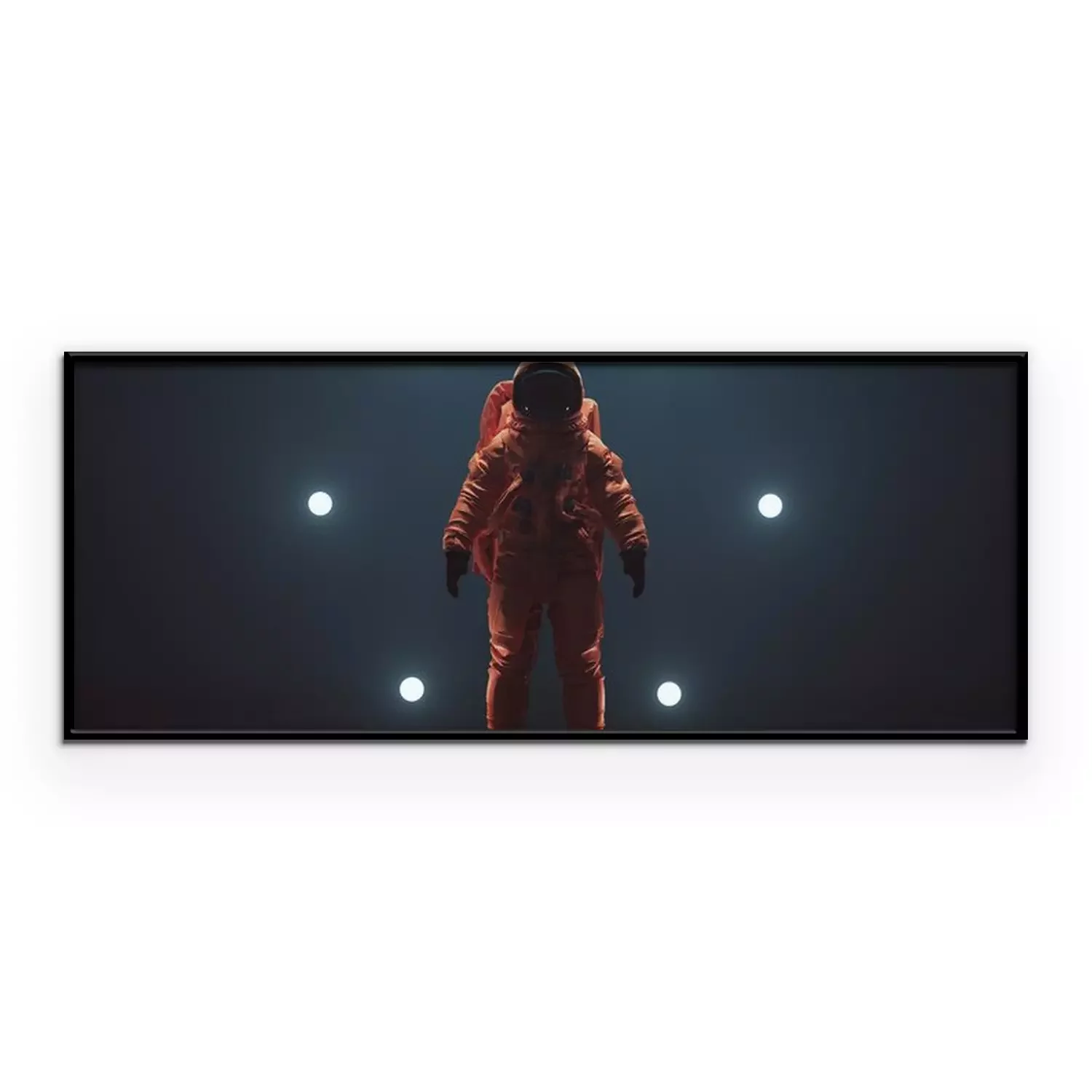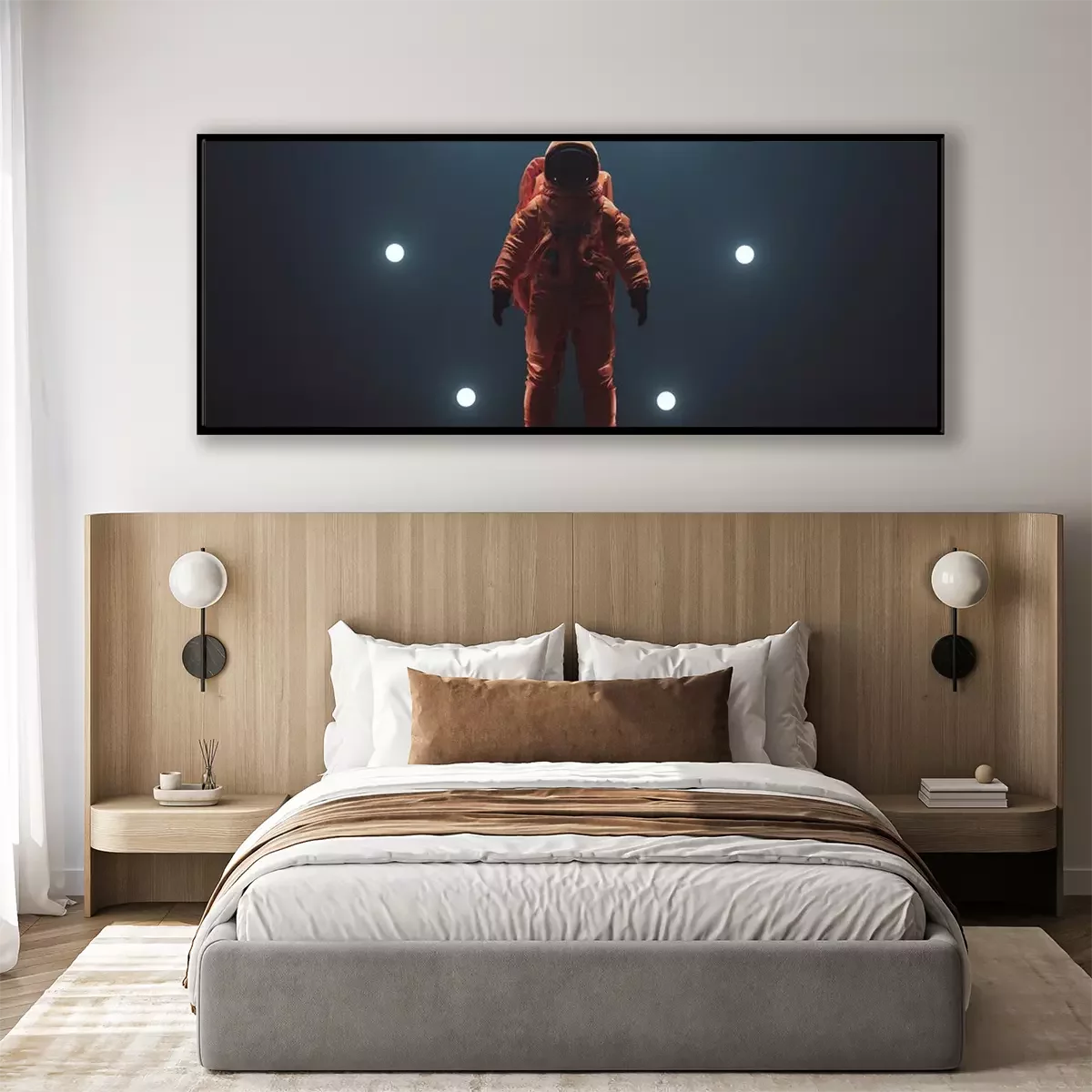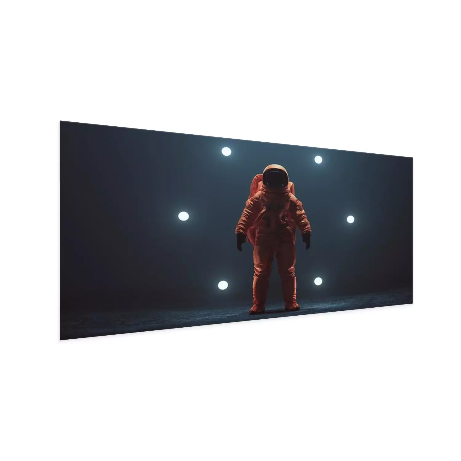 Poster: Astronaut in an Orange Space Suit with Black Visor Standing in a Alien Void 3d illustration 3d render