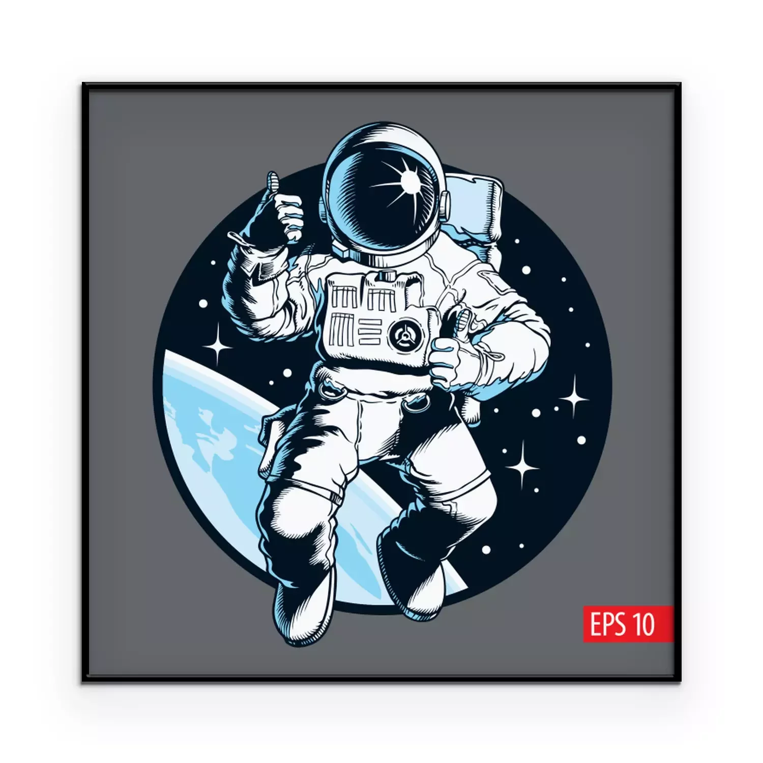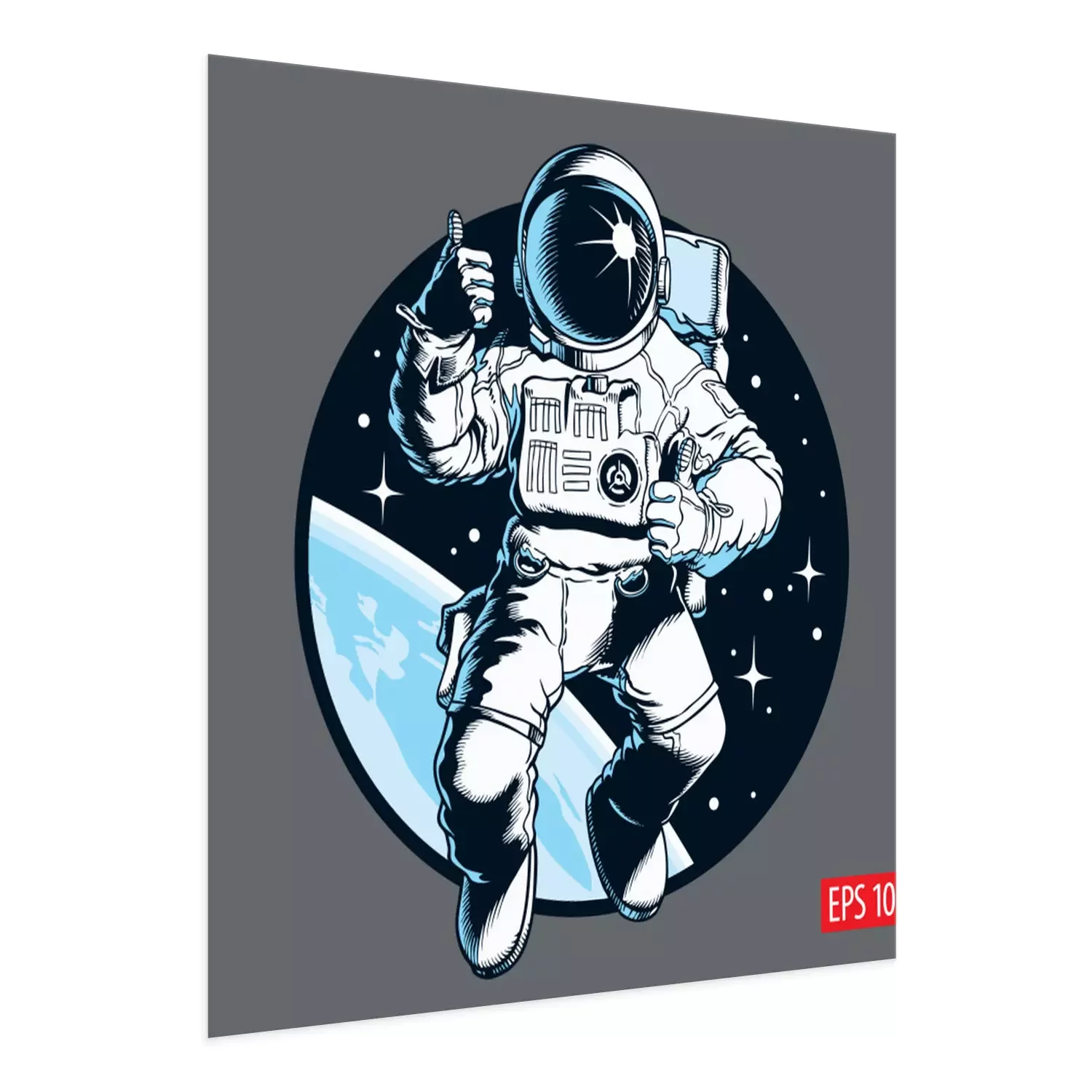 Poster Astronaut in space. Thumb up. Space tourist. Vector illustration.