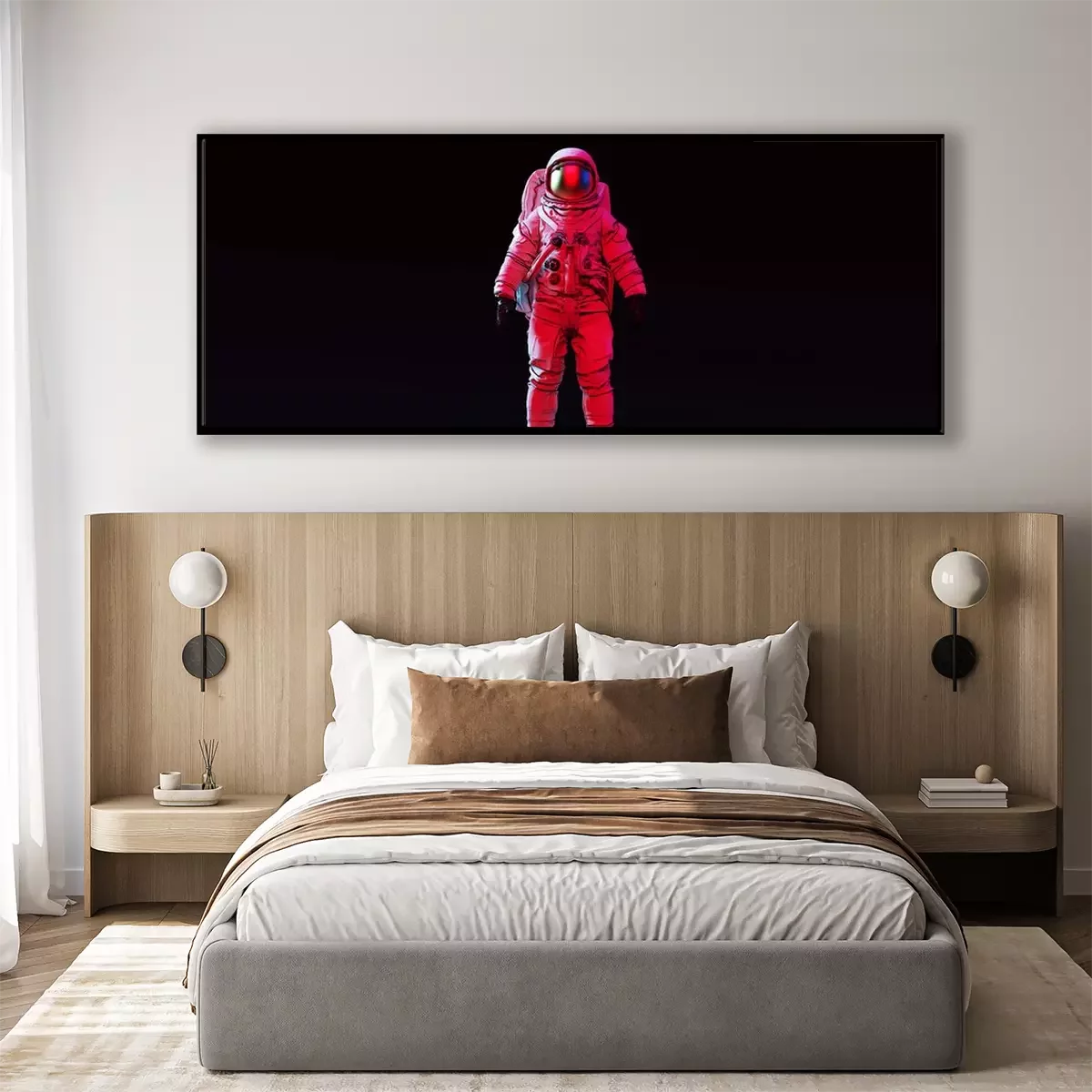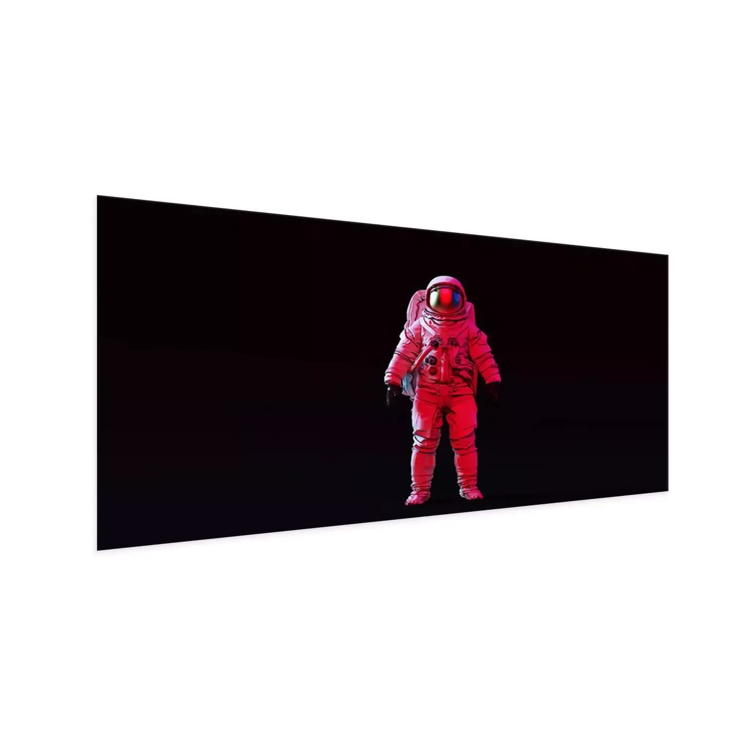 Poster Astronaut with Gold Visor and White Spacesuit with Pink and Blue Moody 80s lighting Front 3d illustration 3d render