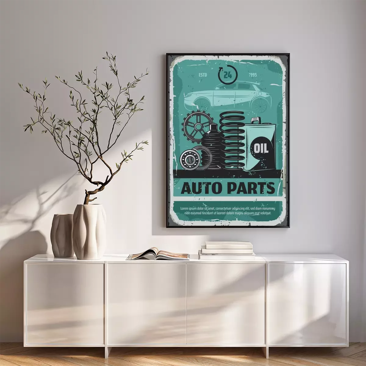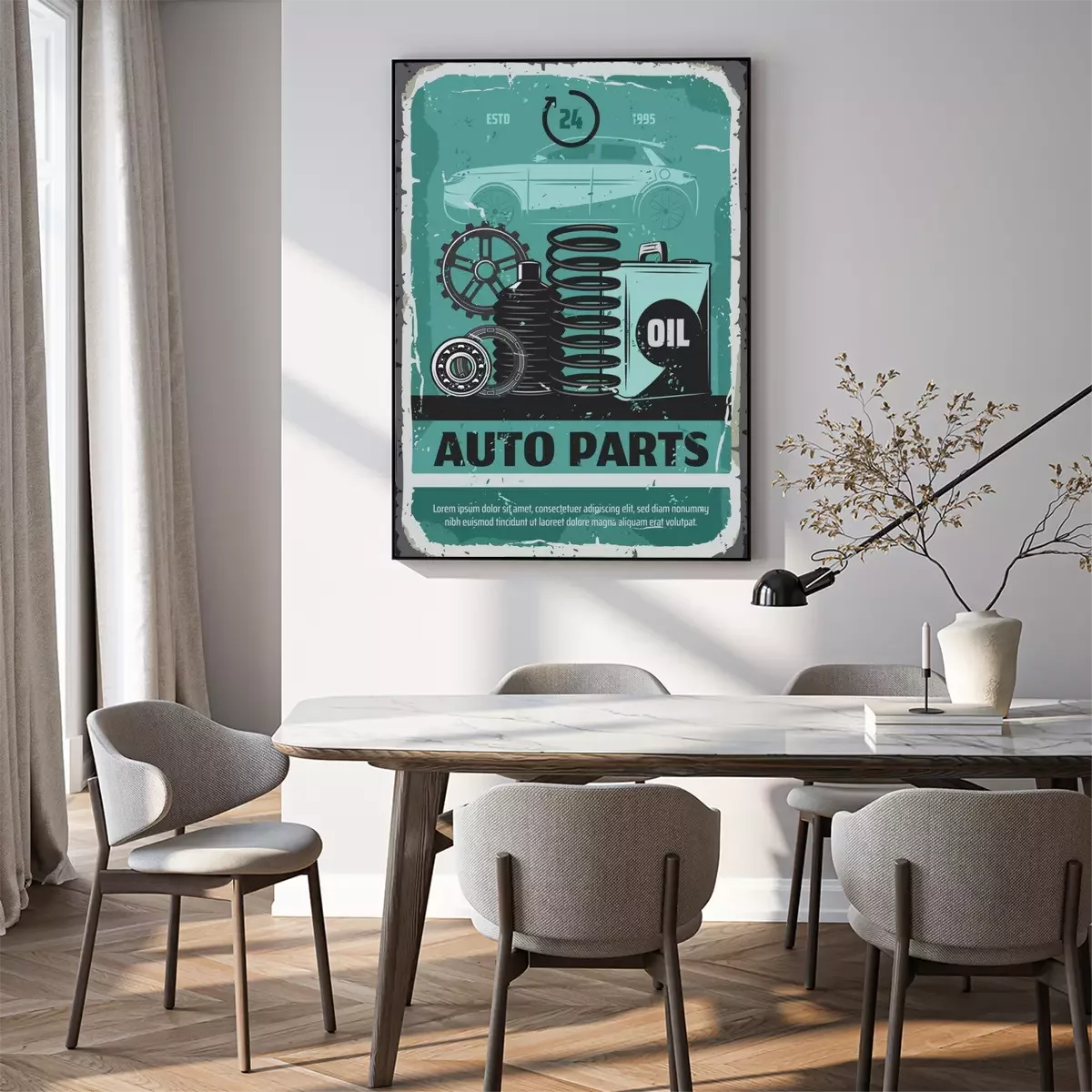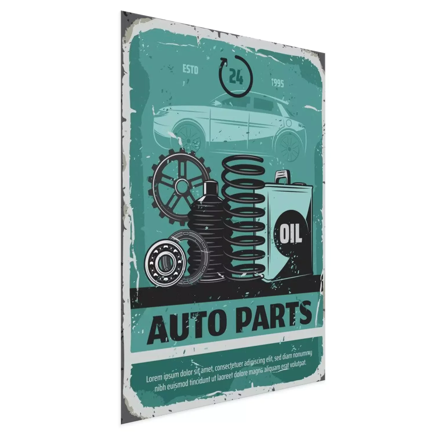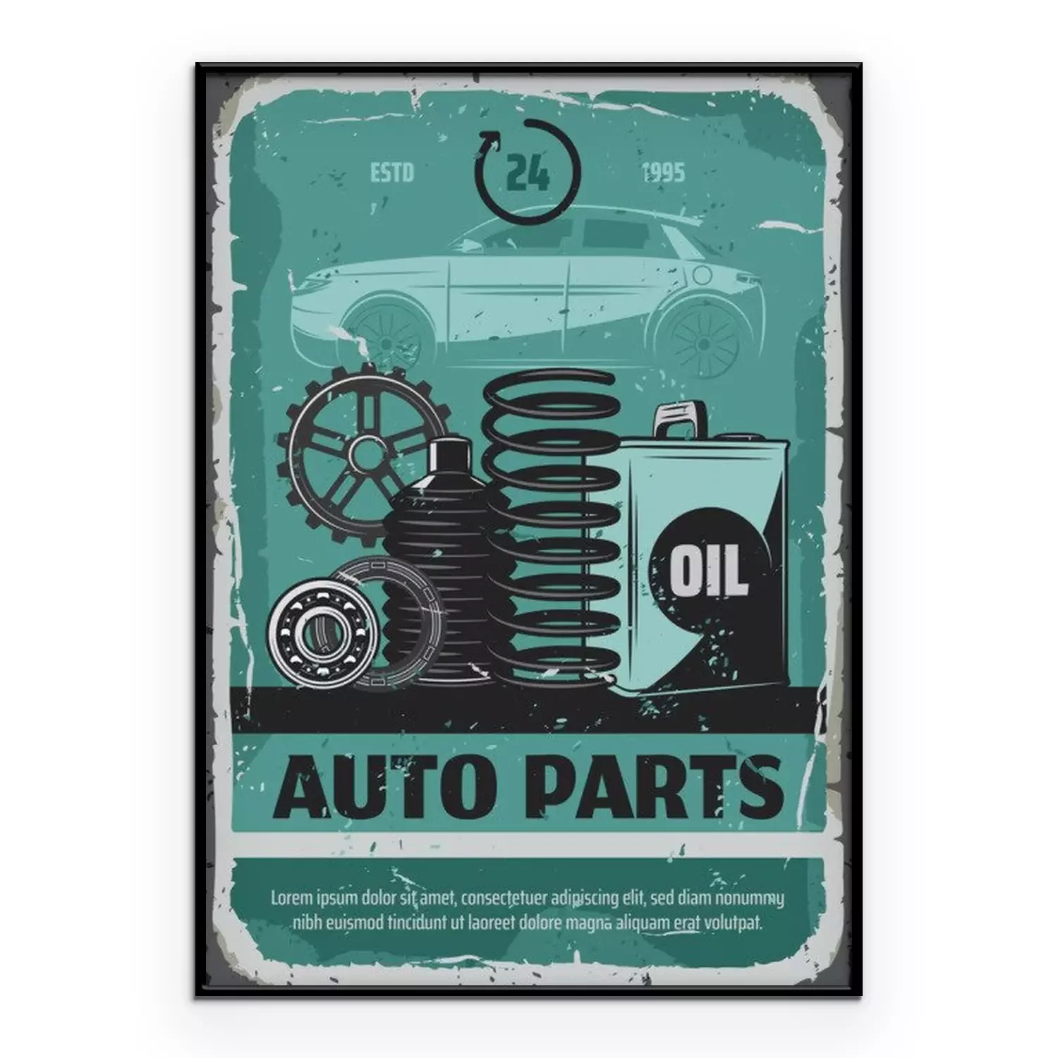 Poster Auto-onderdelen, oliën en tandwielen. Autoservice poster
