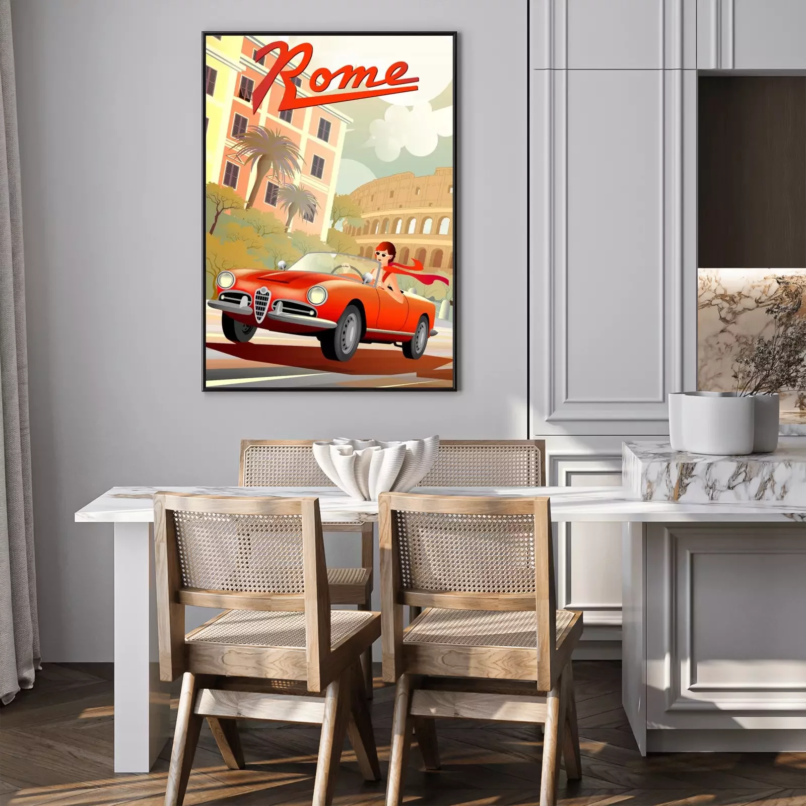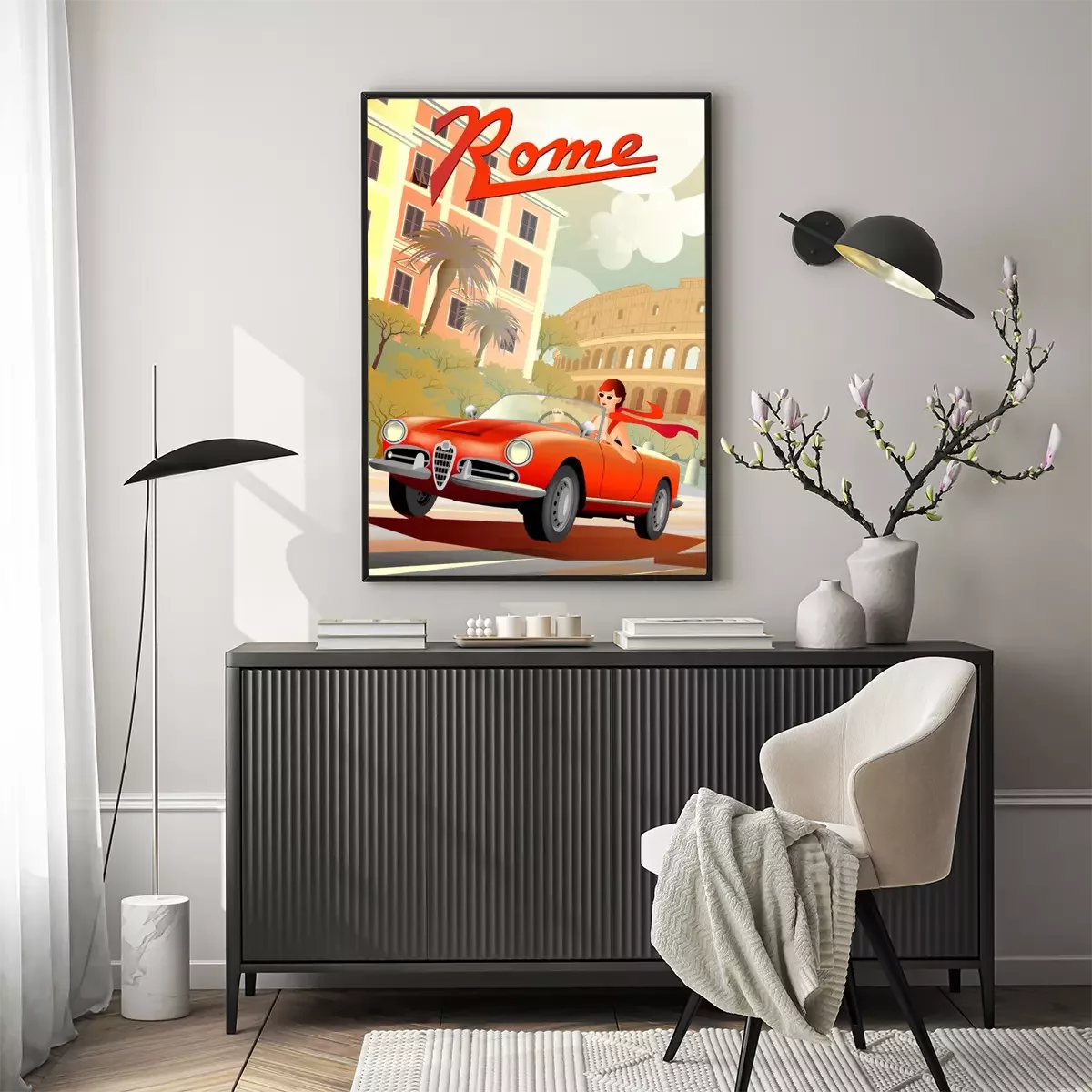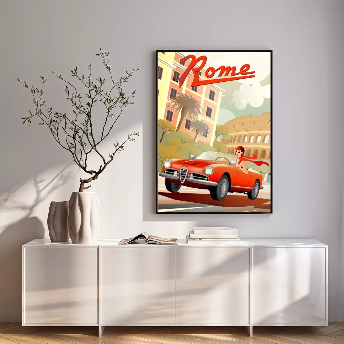 Poster: Autorijden in Italiaanse retrostijl
