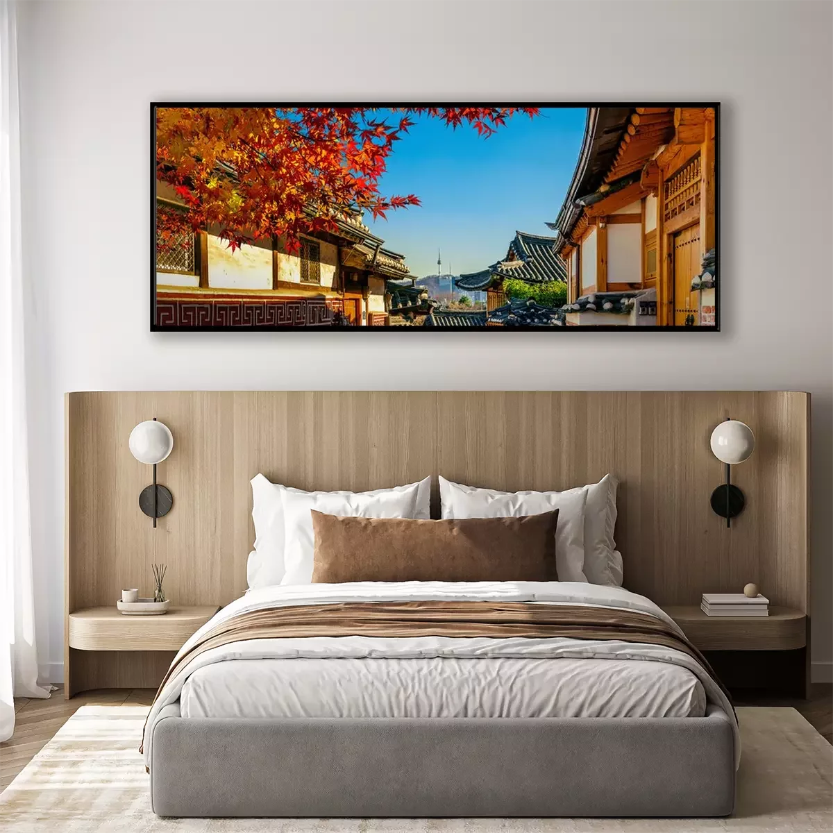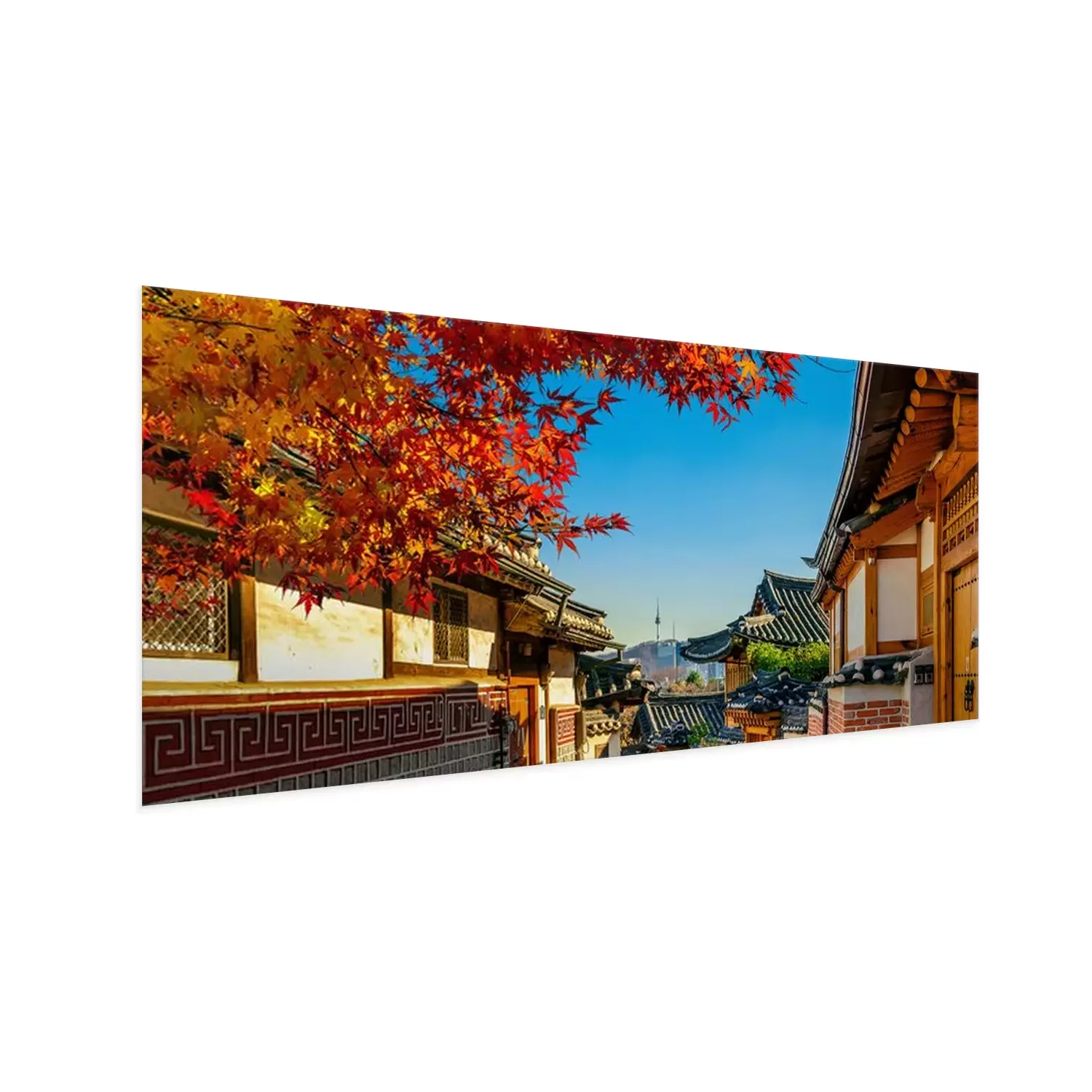 Poster Autumn seasons at Bukchon Hanok Village. Traditional Korean style architecture in Seoul,Korea.