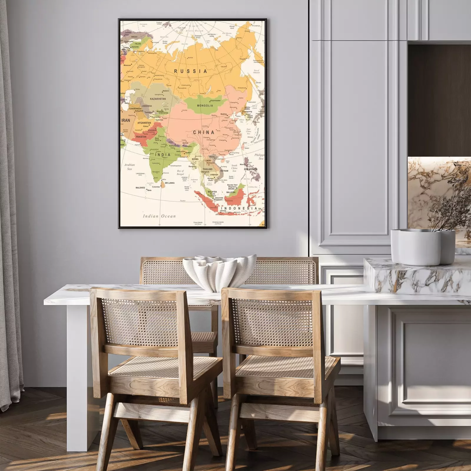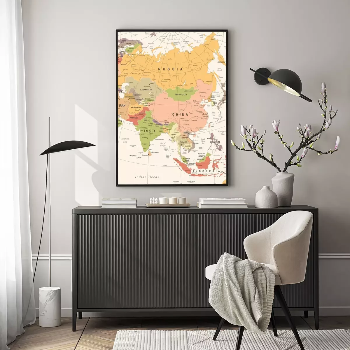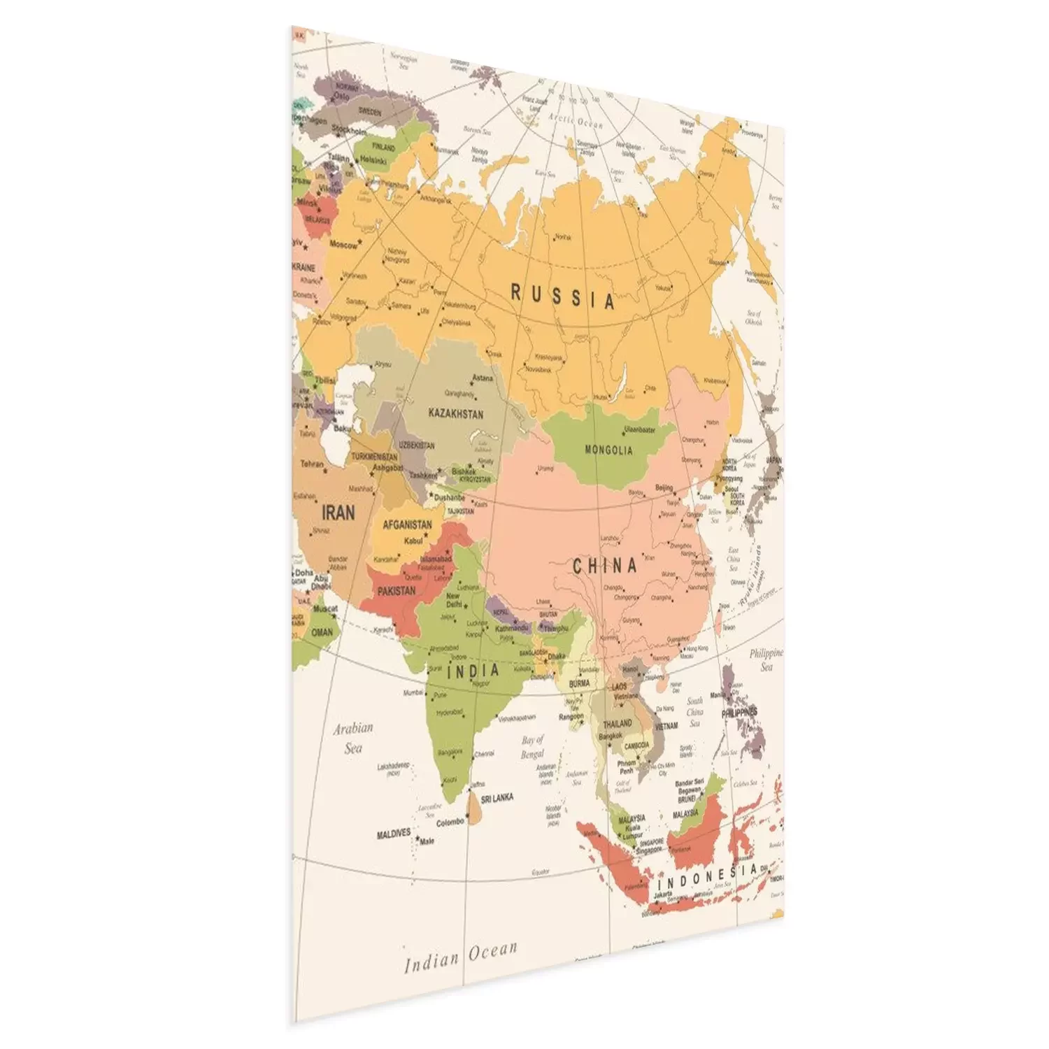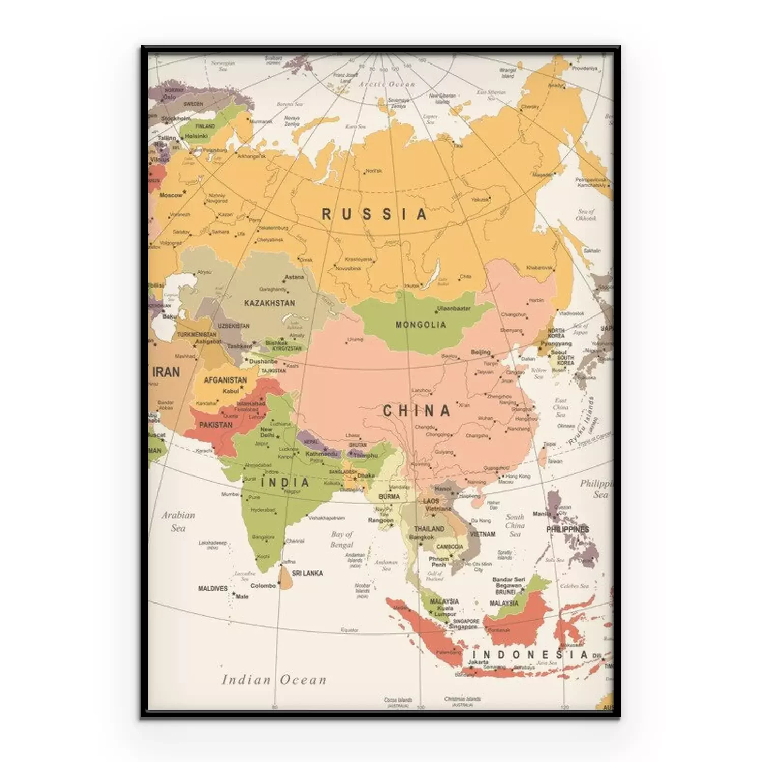 Poster: Azië Kaart - Vintage Vector Illustratie