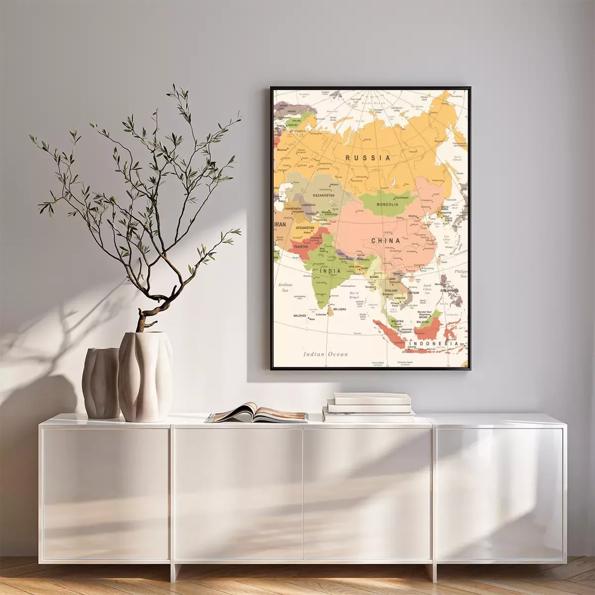 Poster Azië Kaart - Vintage Vector Illustratie