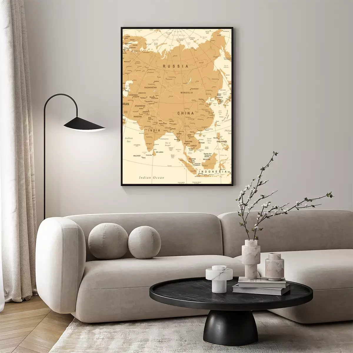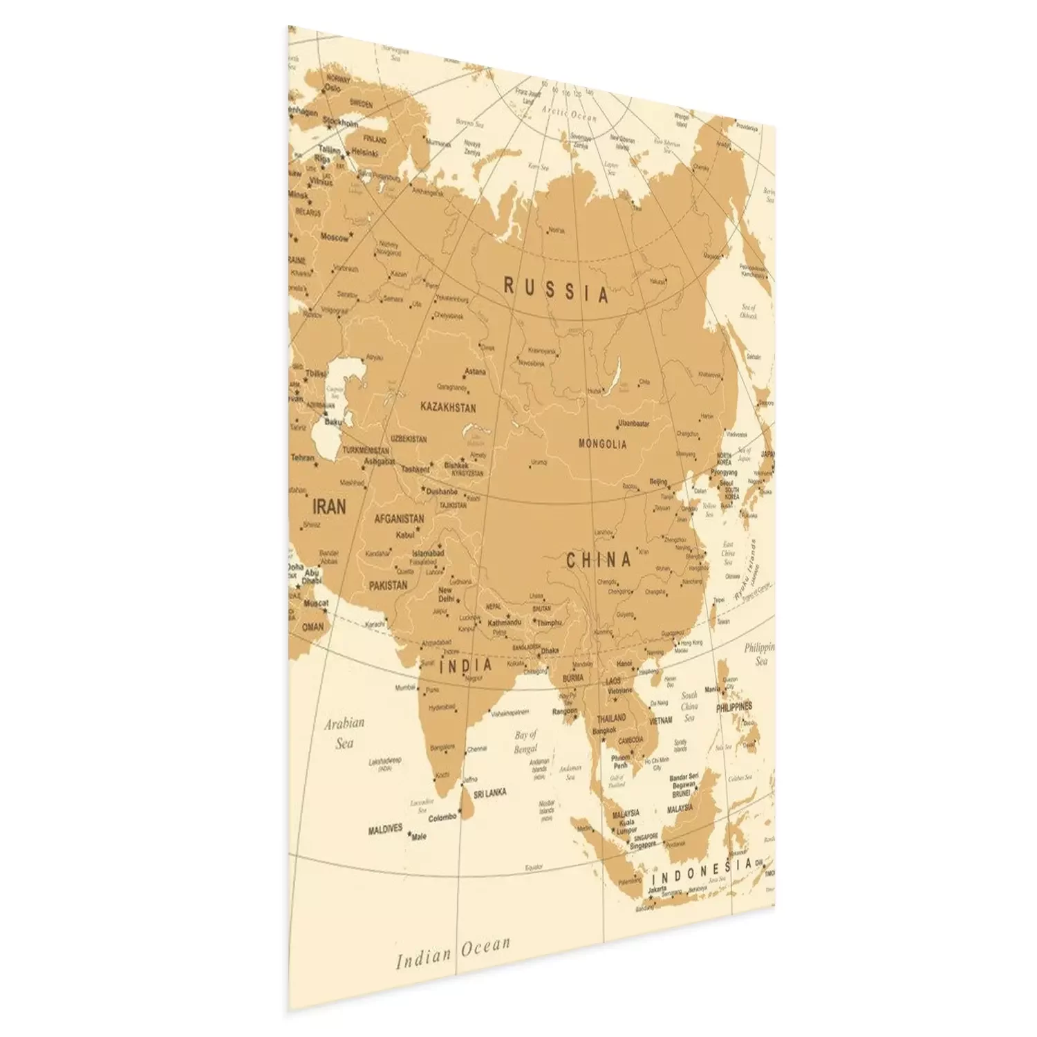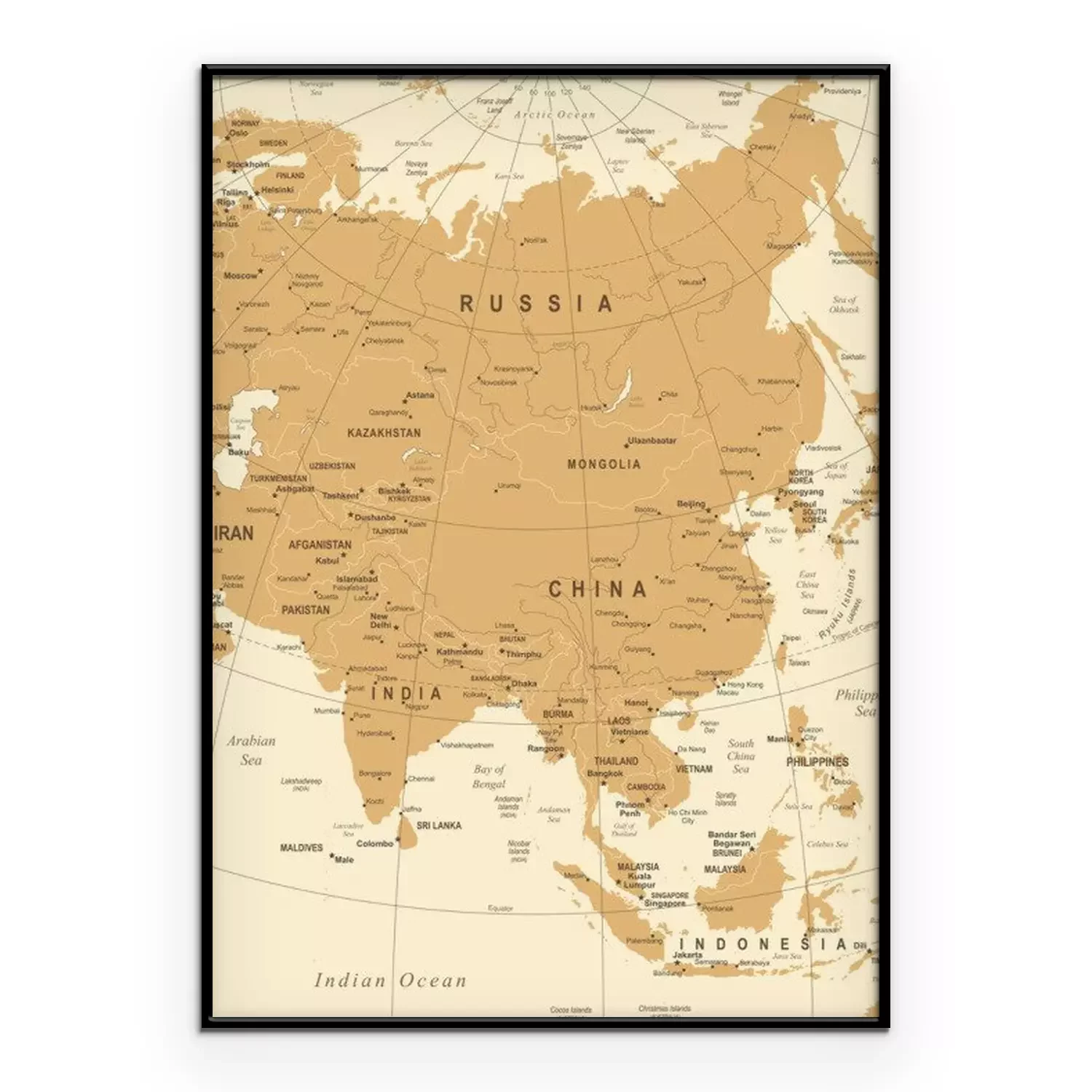 Poster: Azië Kaart - Vintage Vector Illustratie