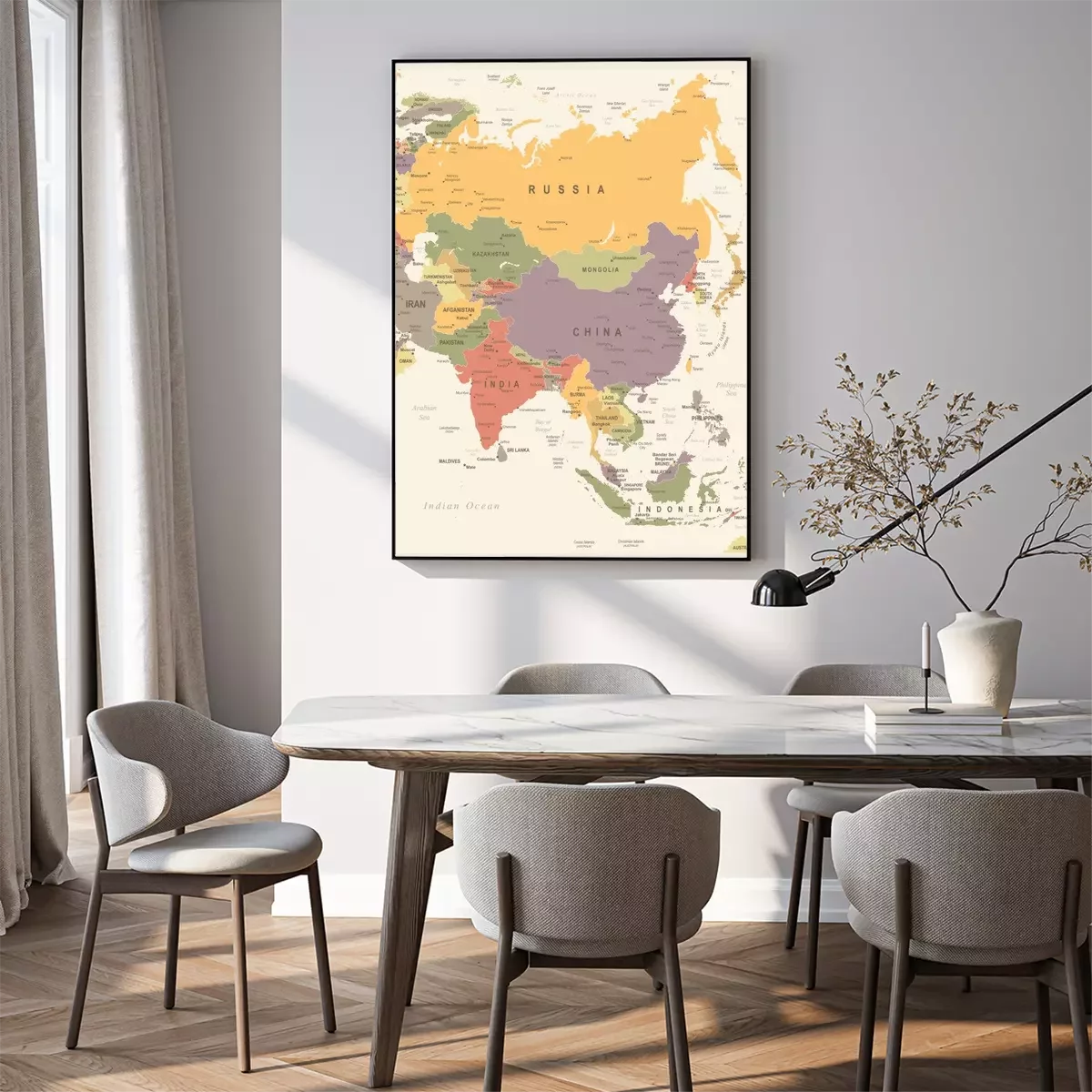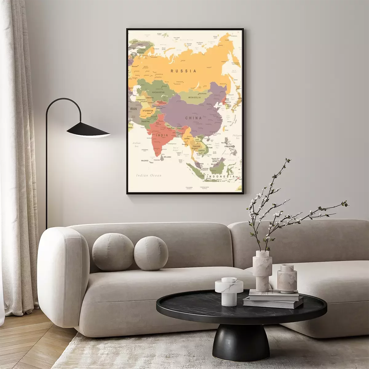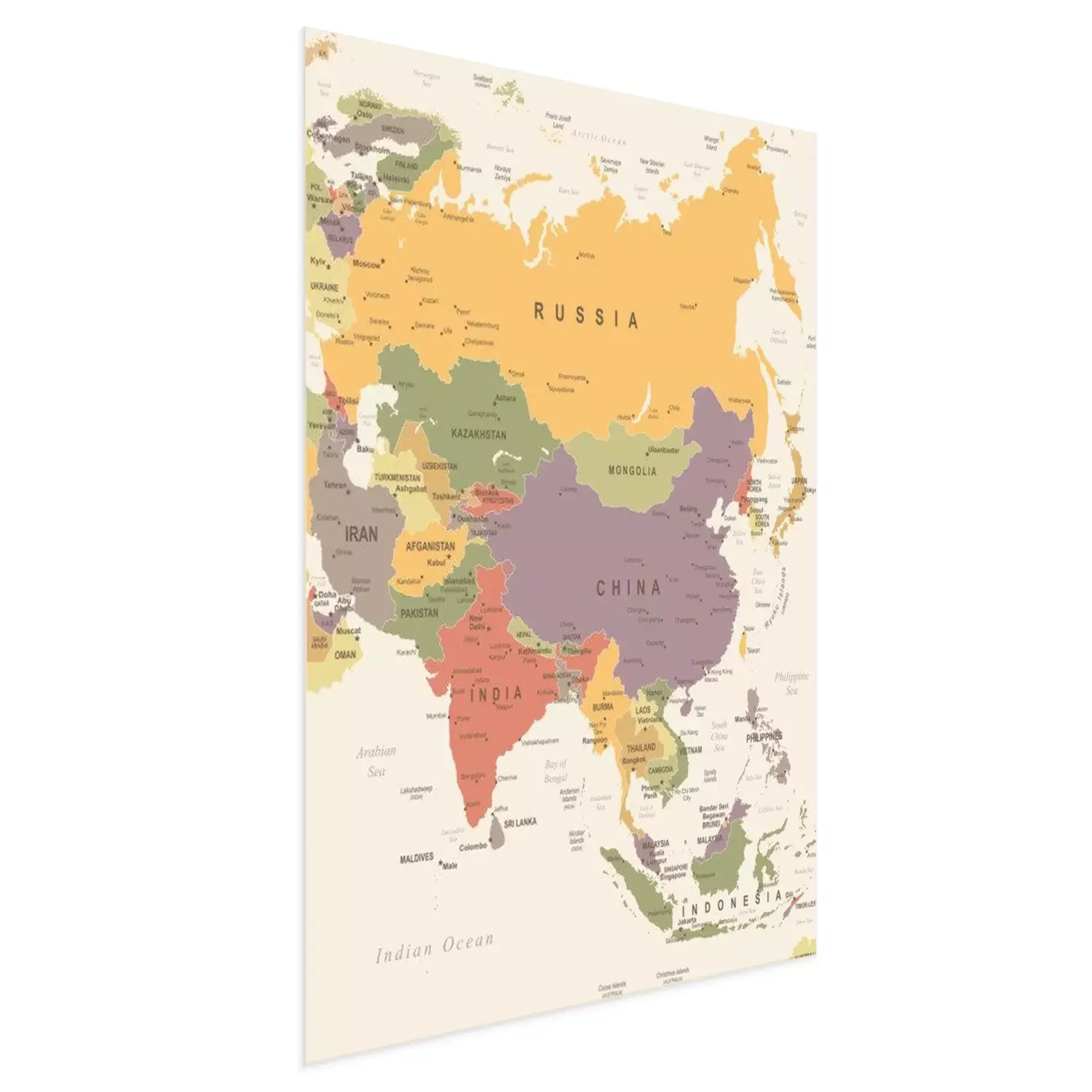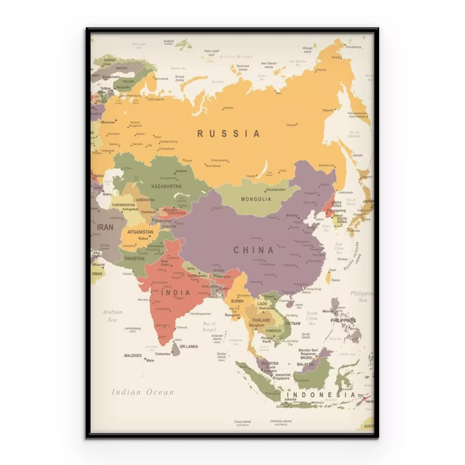 Poster: Azië Kaart - Vintage Vector Illustratie