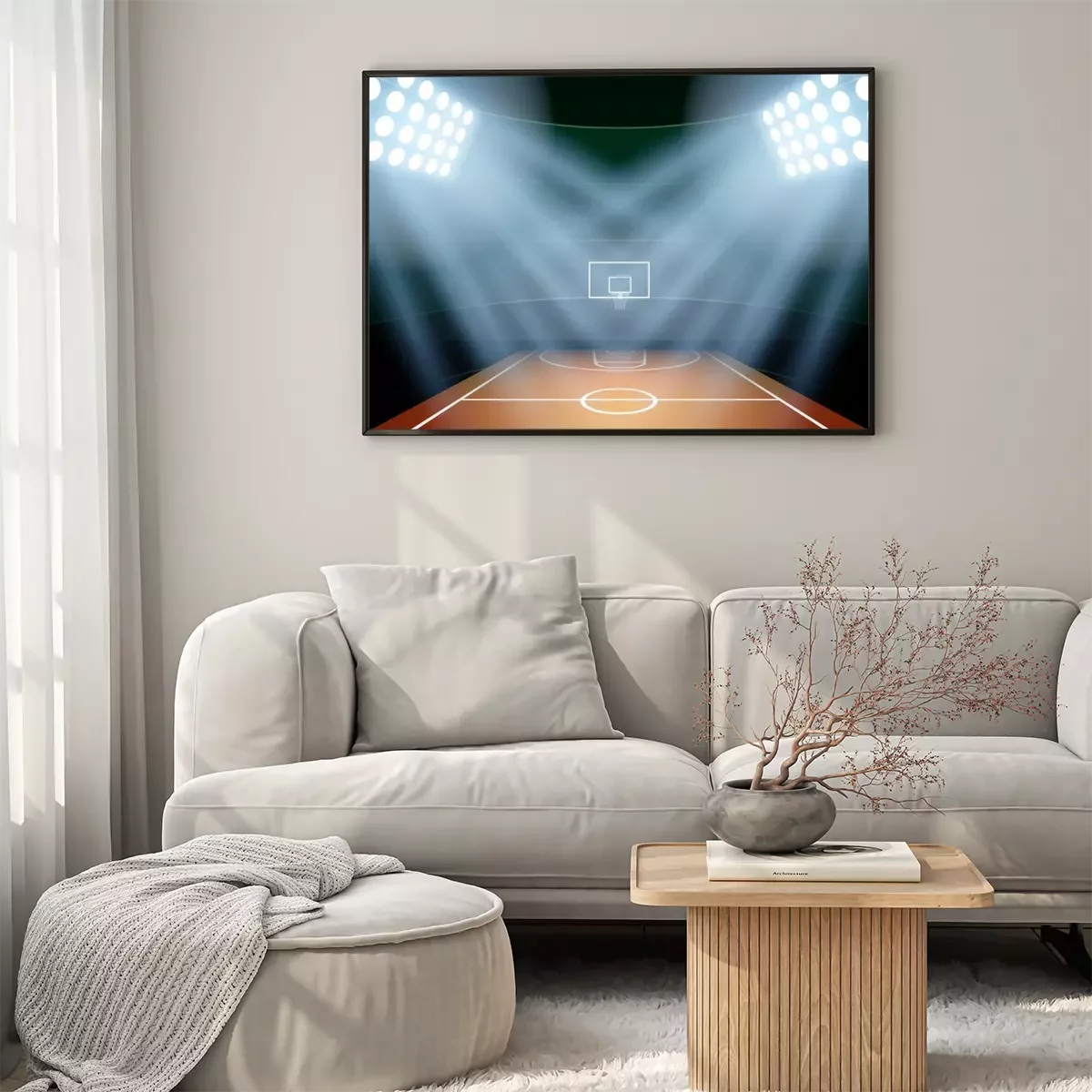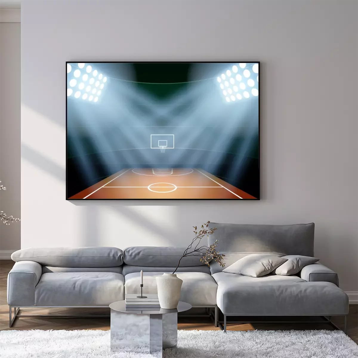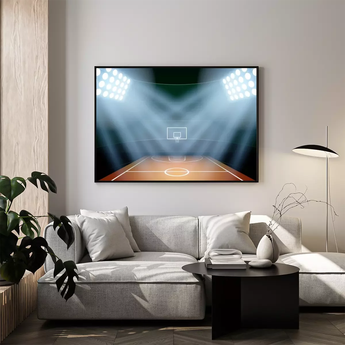 Poster: Background for posters night basketball stadium in the spotlight