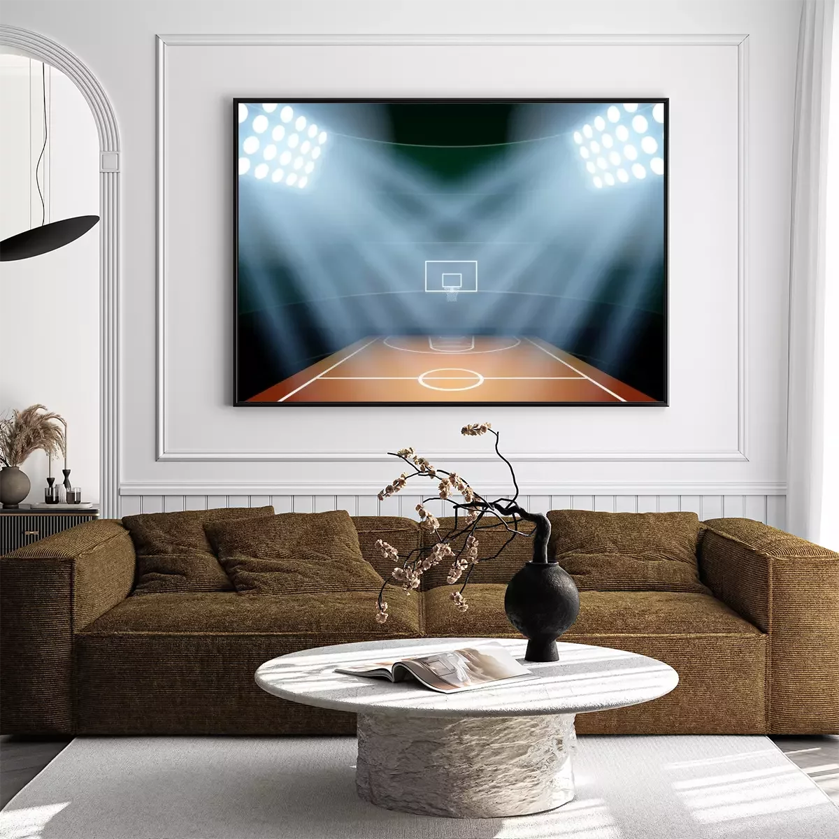 Poster Background for posters night basketball stadium in the spotlight