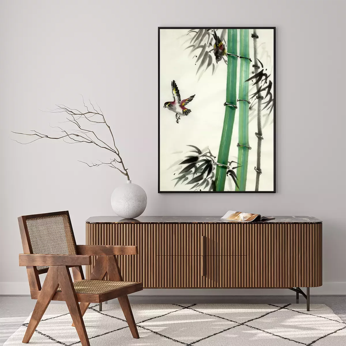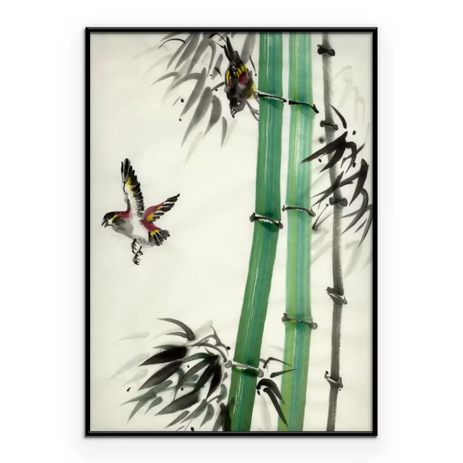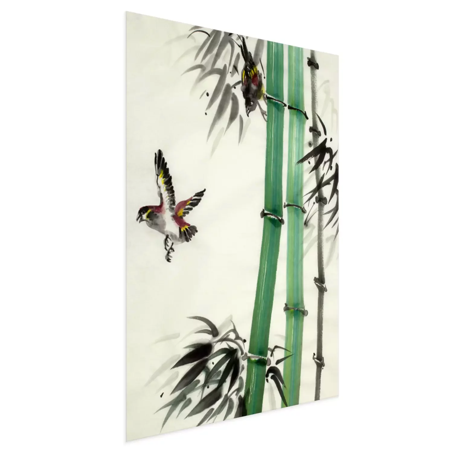 Poster: Bamboe en beschilderde vogels