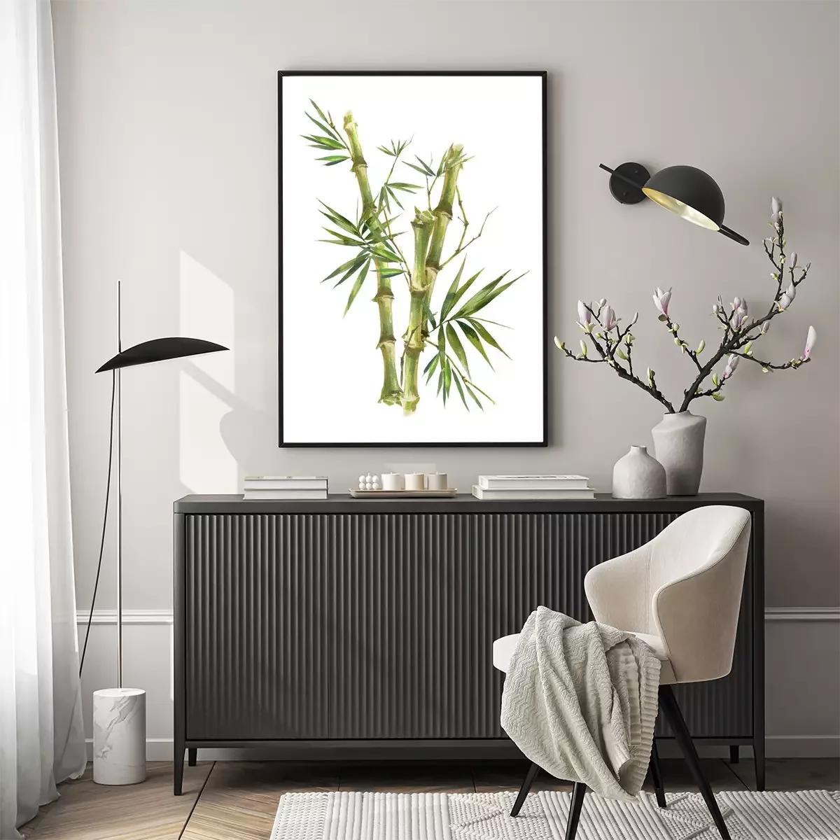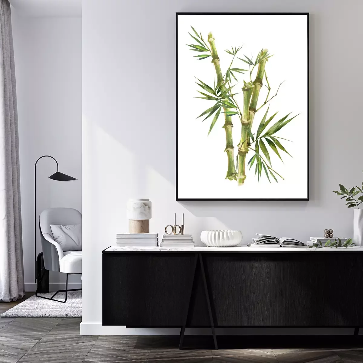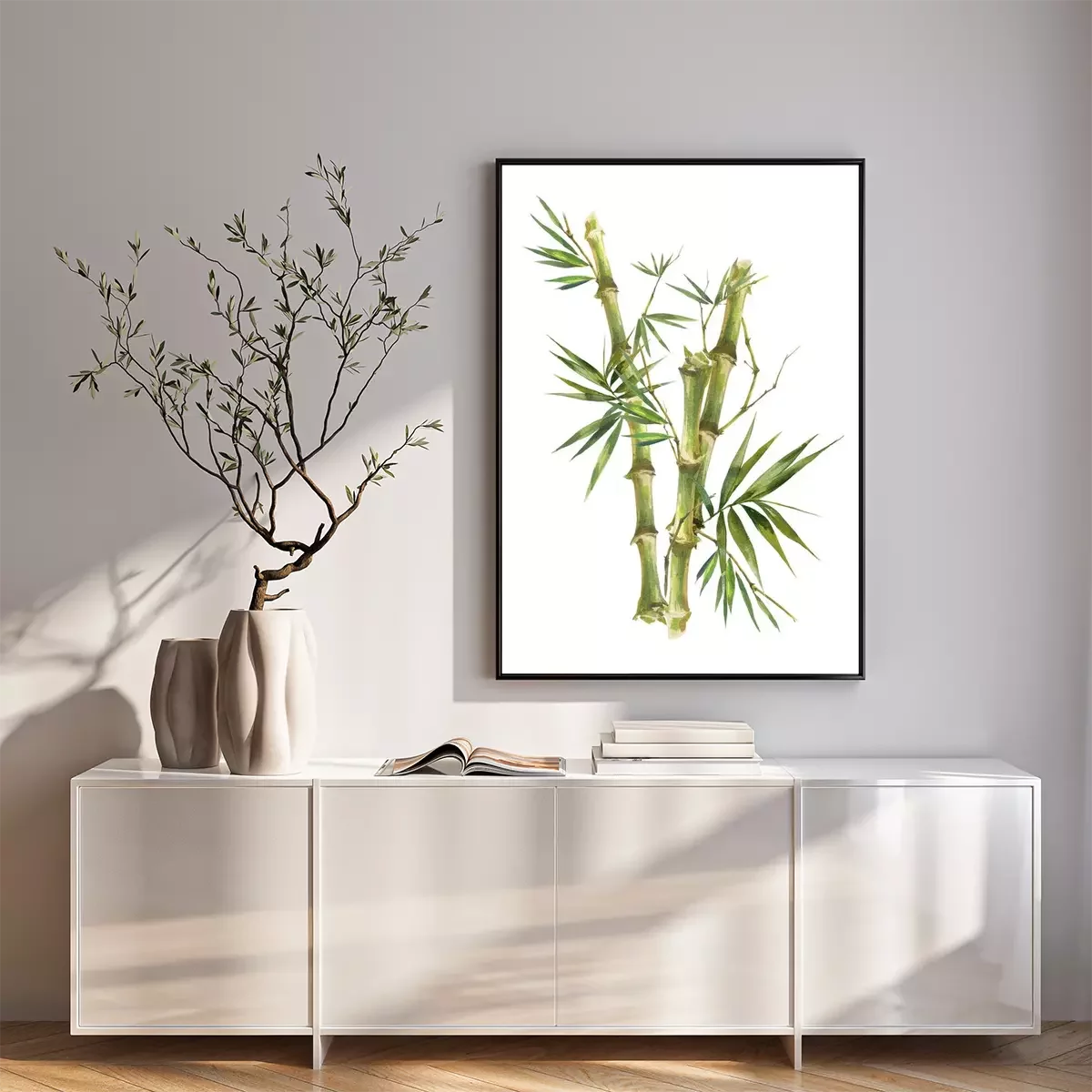 Poster: Bamboe stengels met bladeren in illustratie