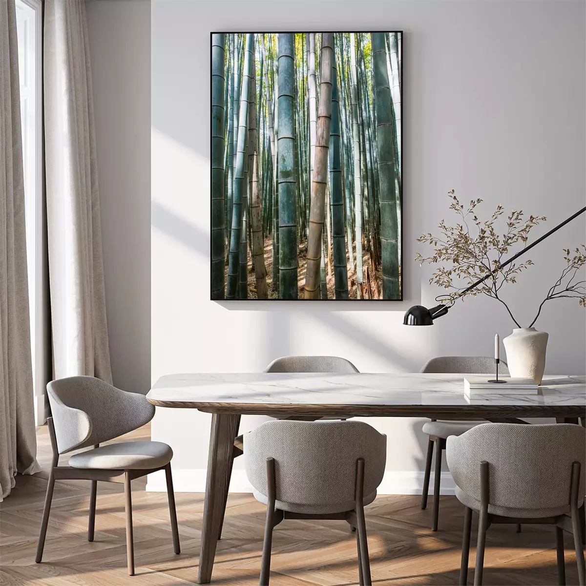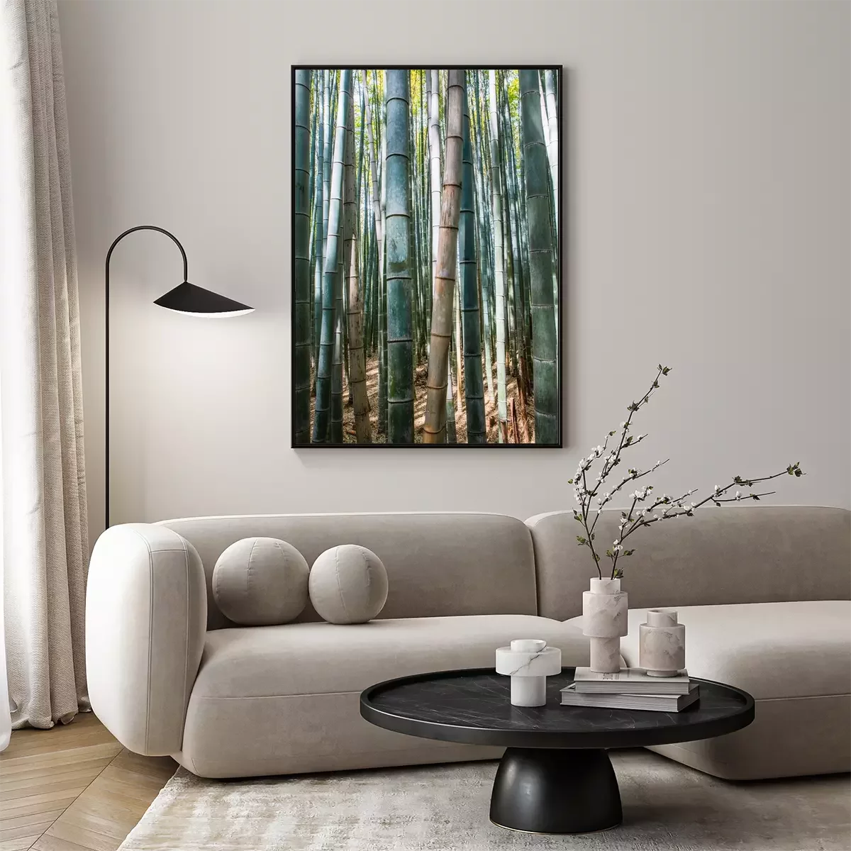 Poster: Bamboebos met groene bladeren op de achtergrond