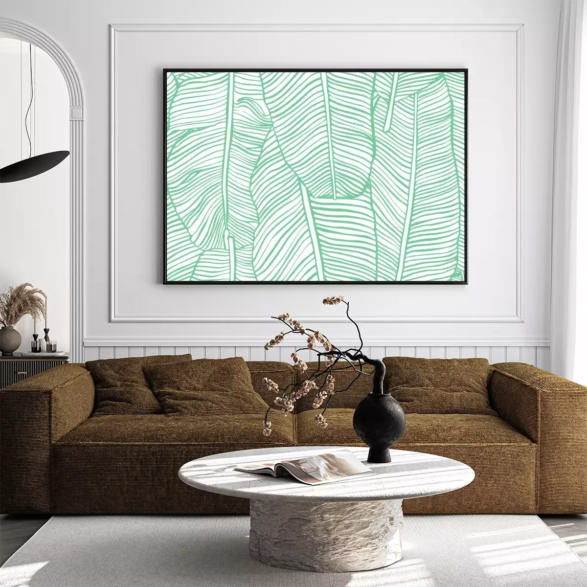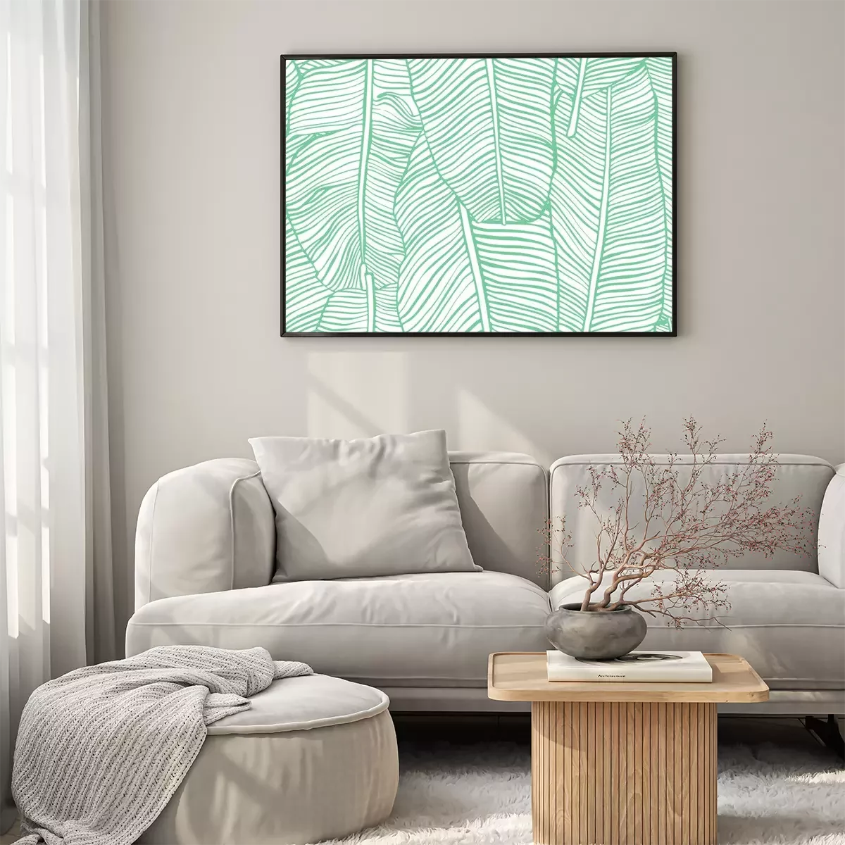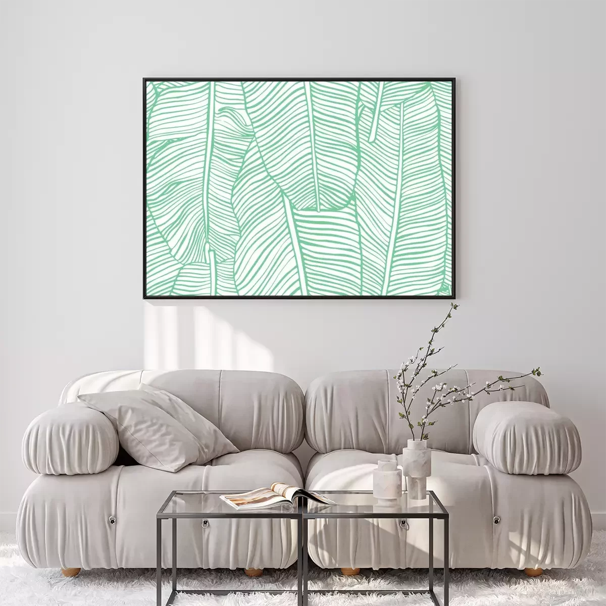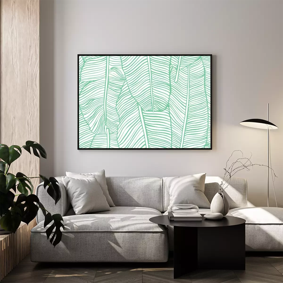 Poster: Bananenbladeren geschetst met een groene lijn